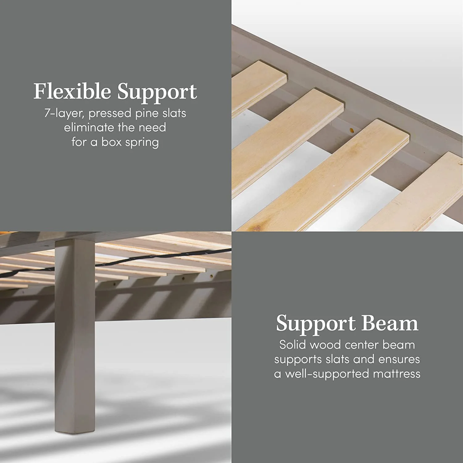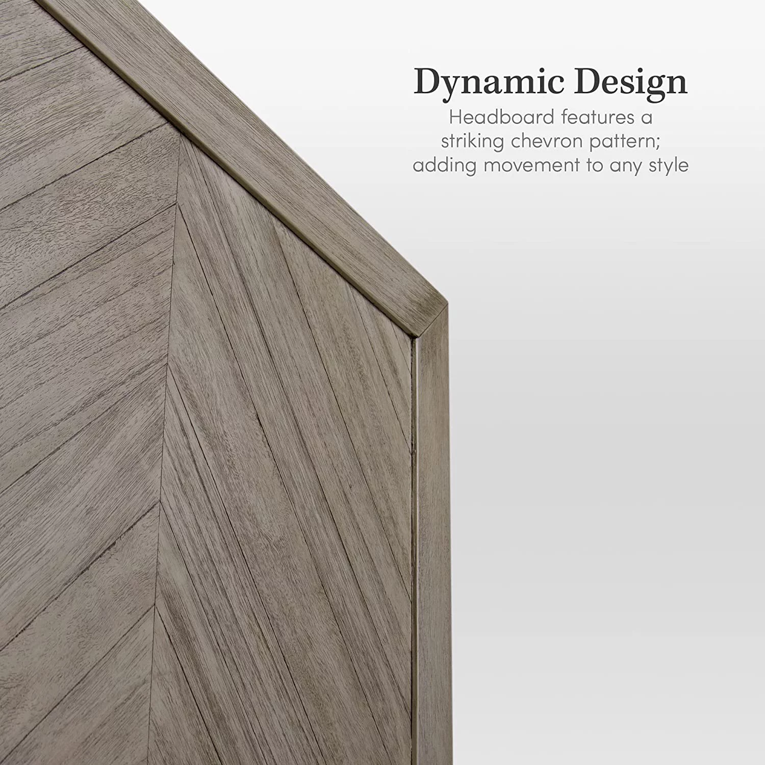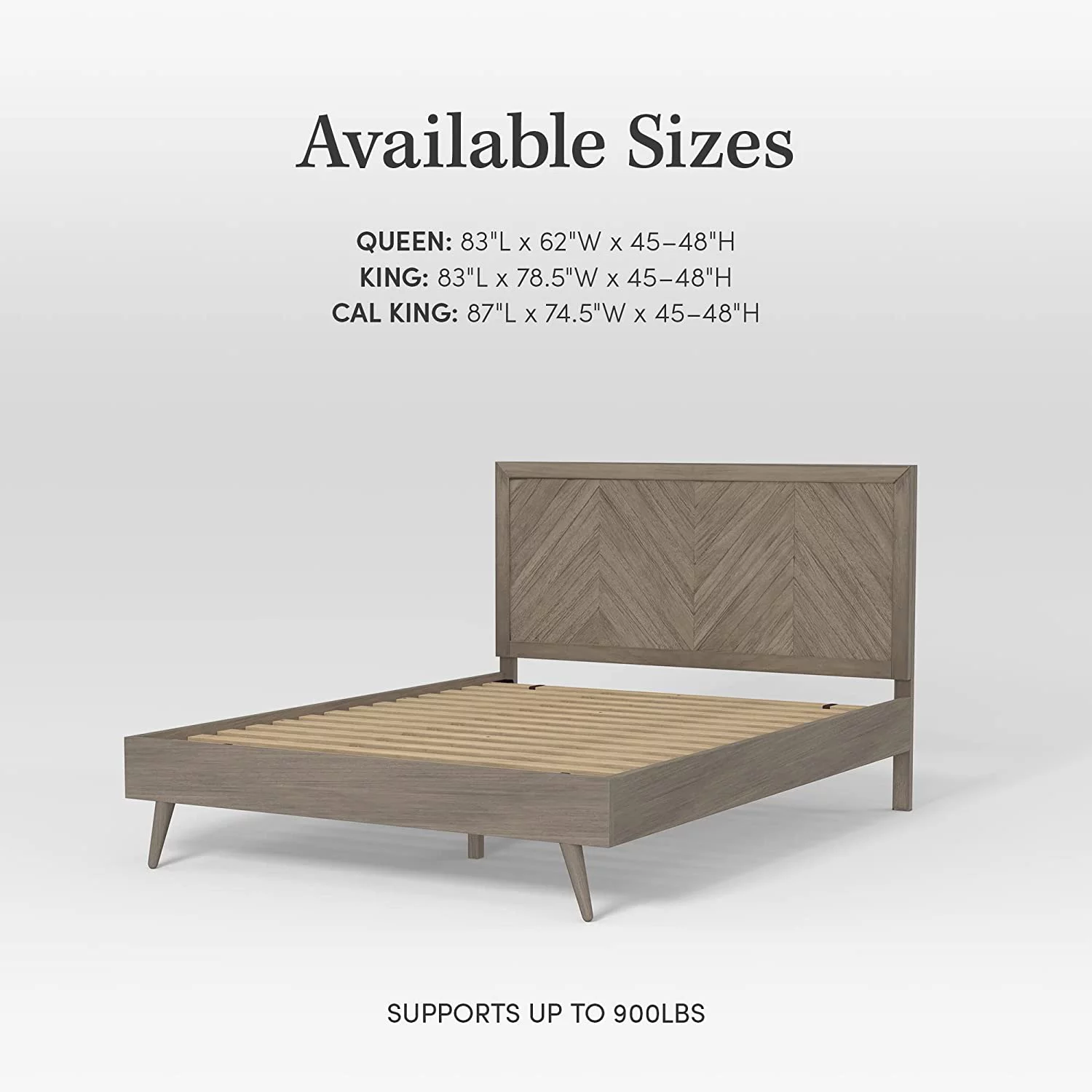 Chevron Wood Bed Frame with Adjustable Headboard | Solid Mahogany Wood | Queen Grey | No Box Spring Needed | Easy Assembly