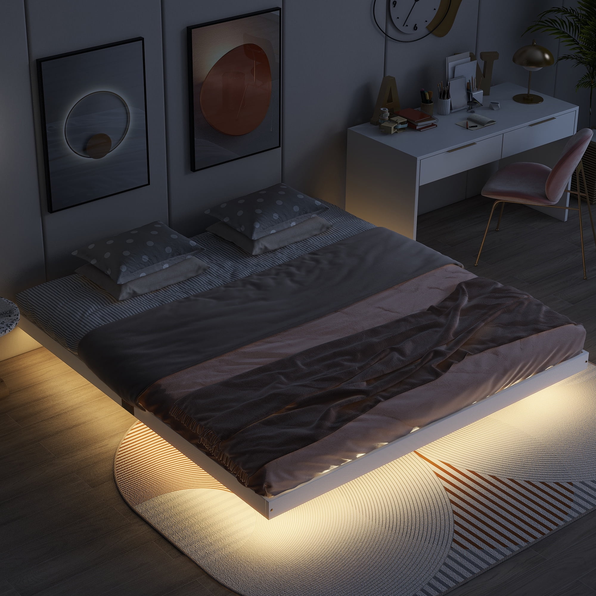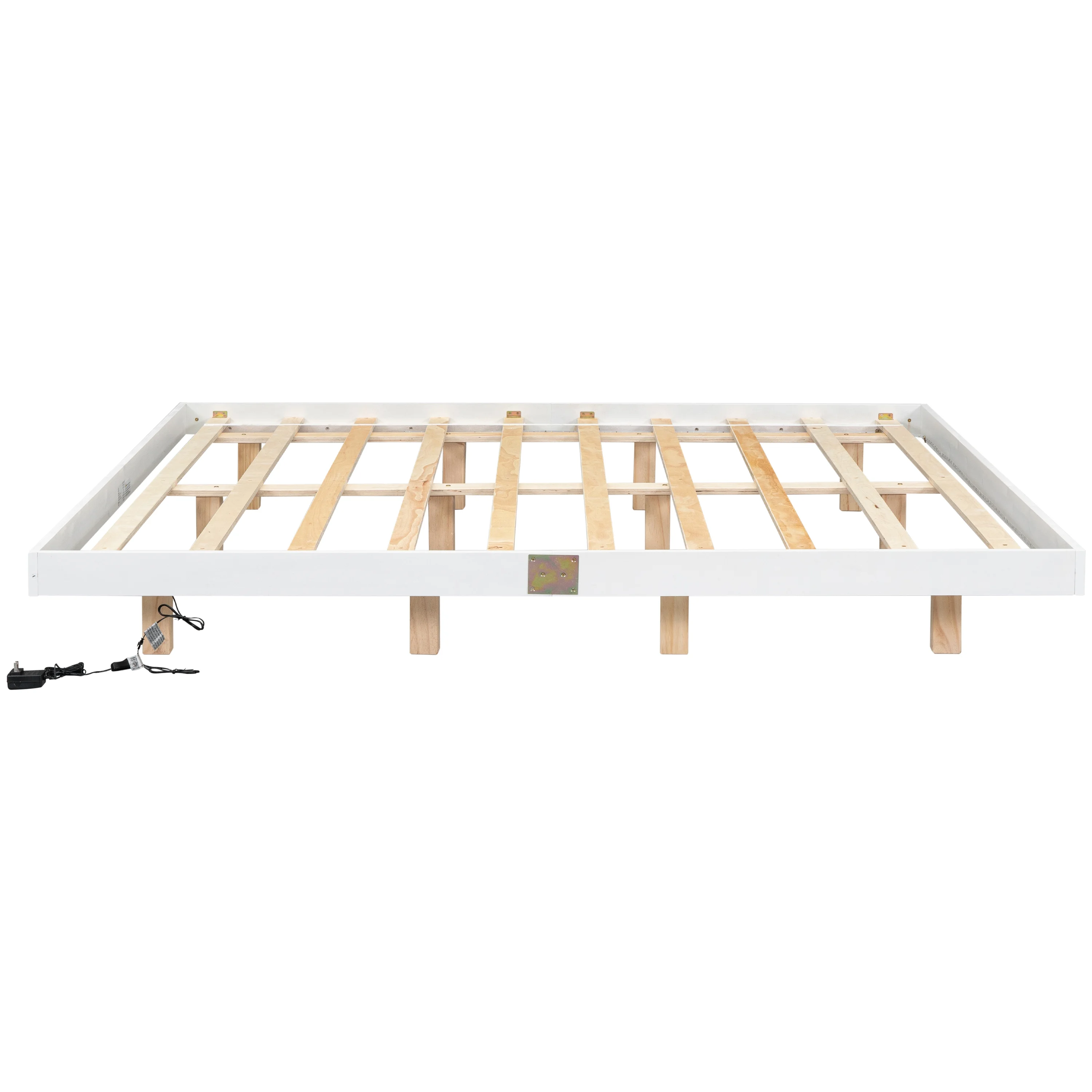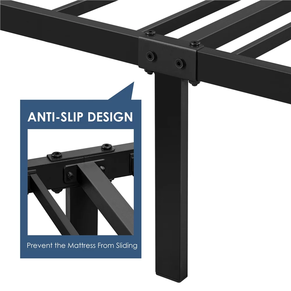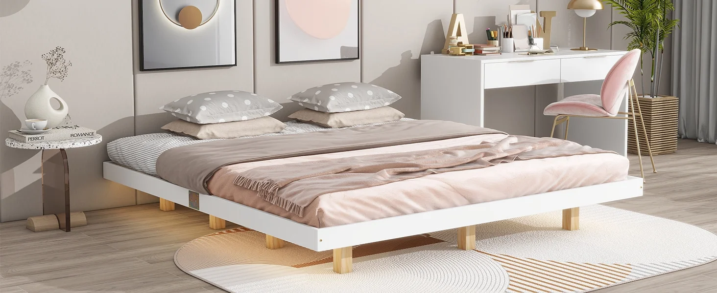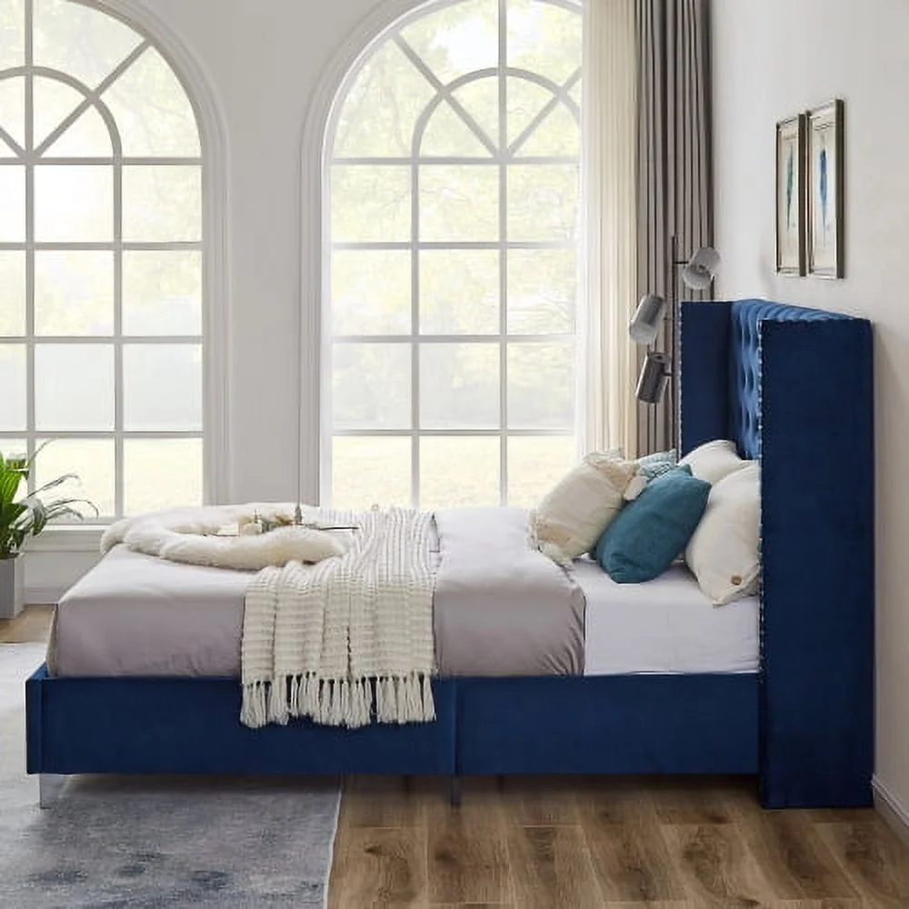 Queen Bed, Button Designed Headboard,Strong Wooden Slats + Metal Legs With Electroplate