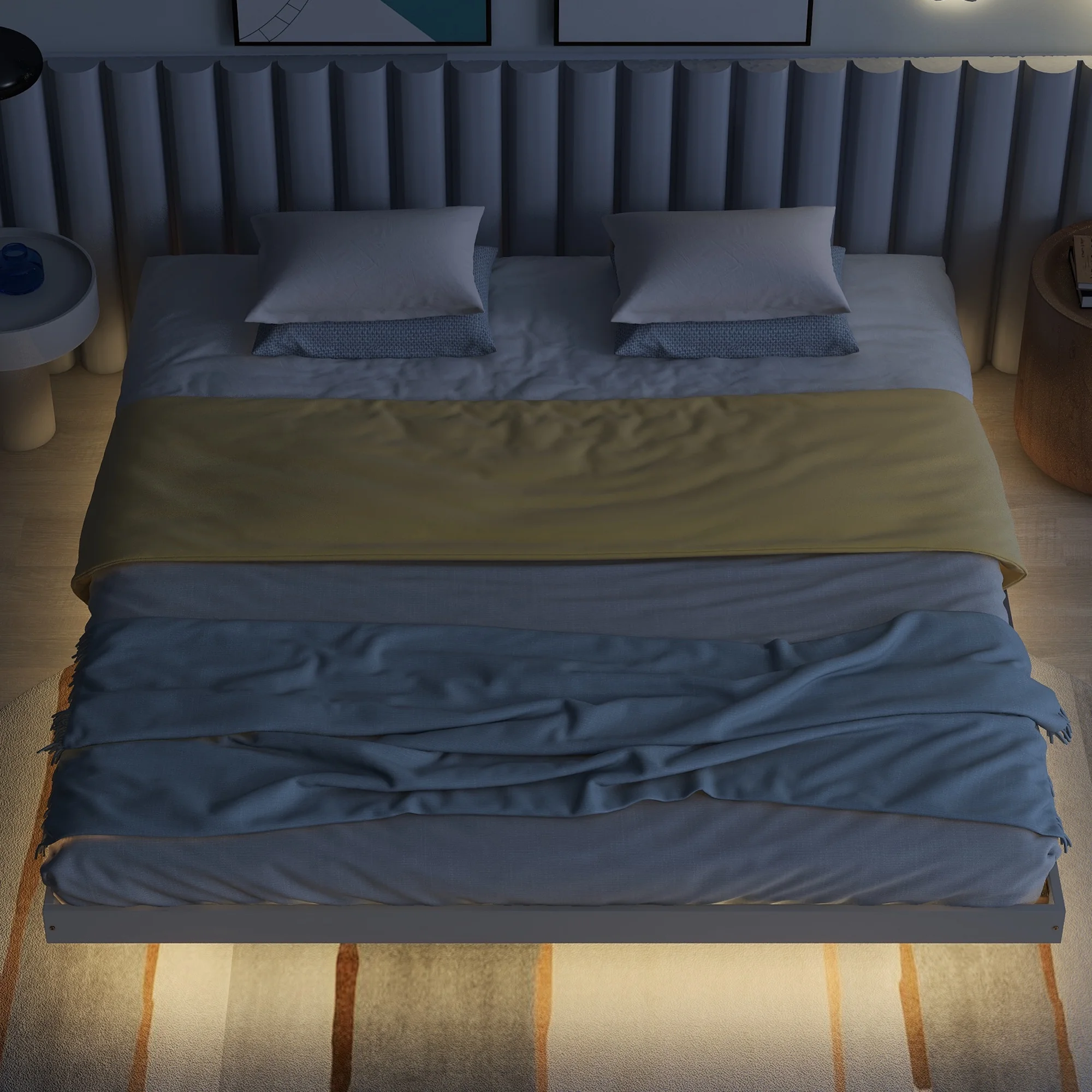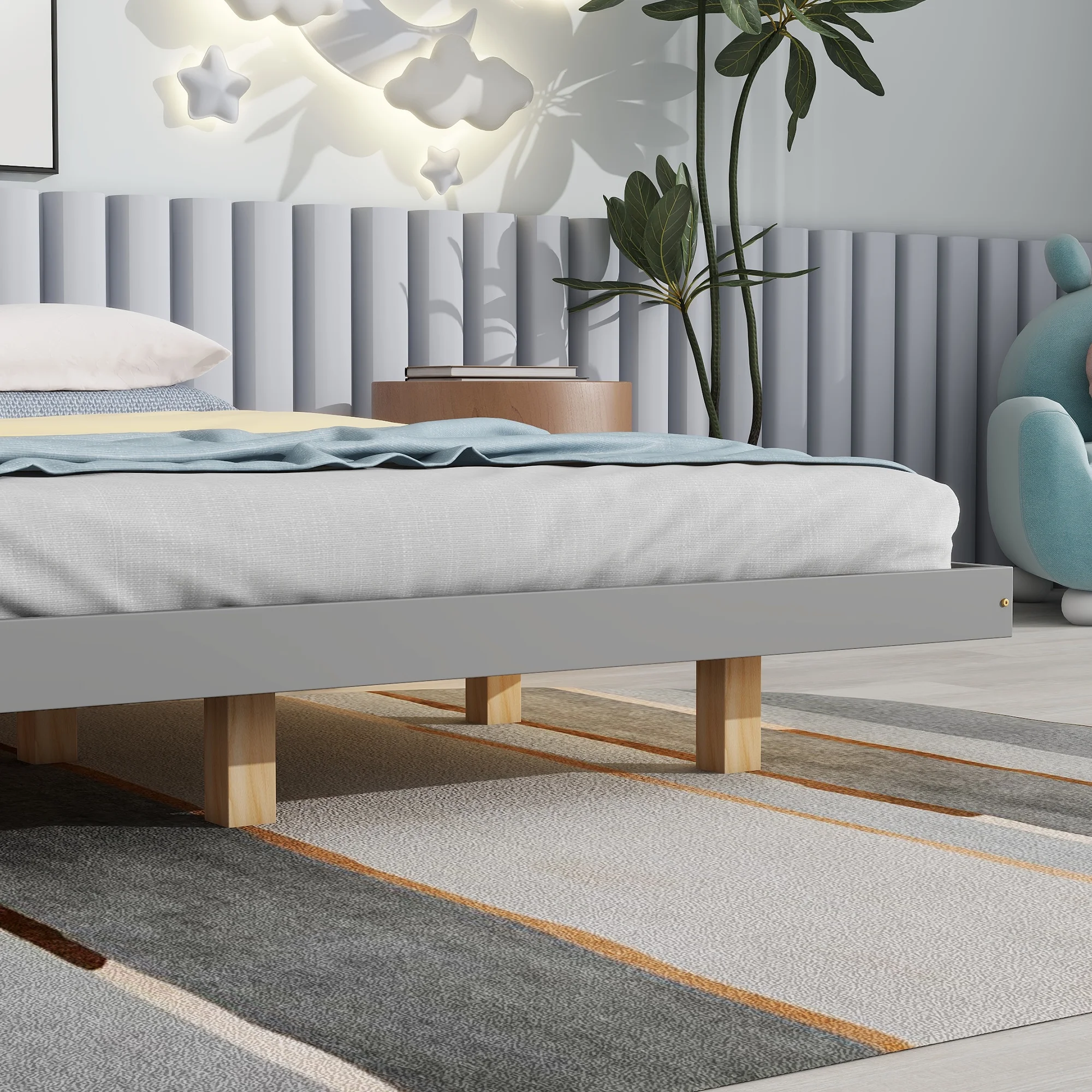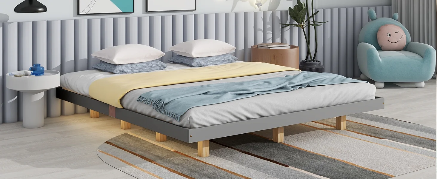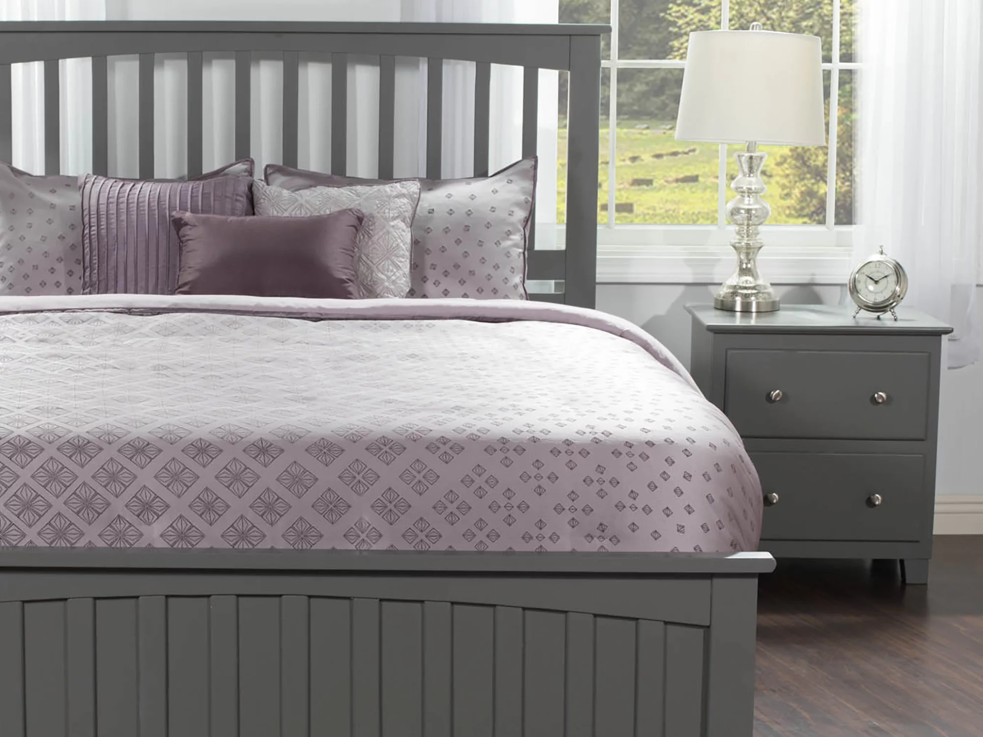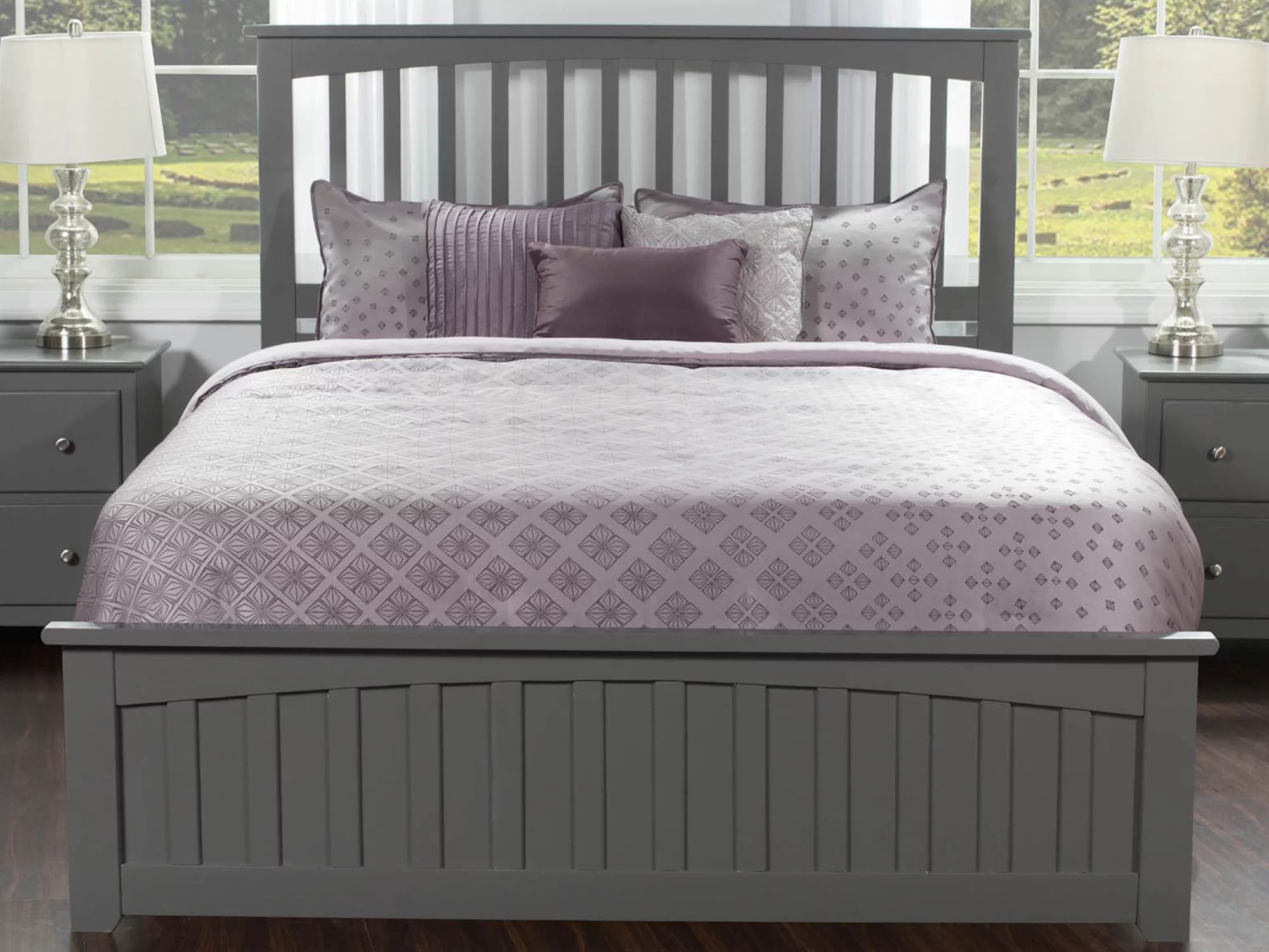 AFI Mission Queen Wood Platform Bed with Slatted Headboard and Footboard, Grey