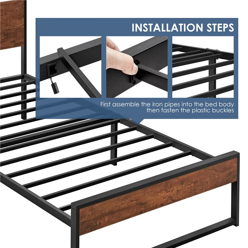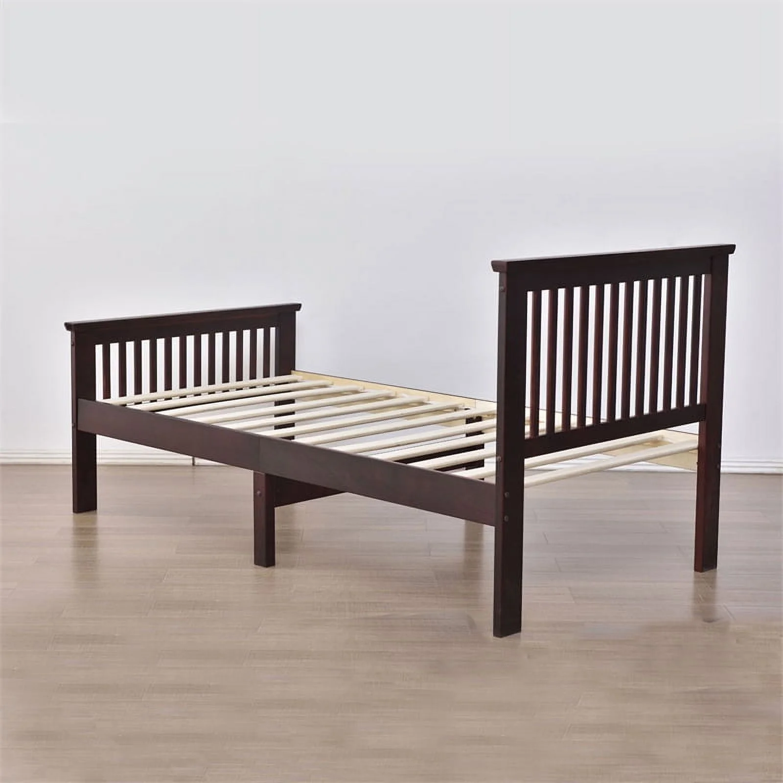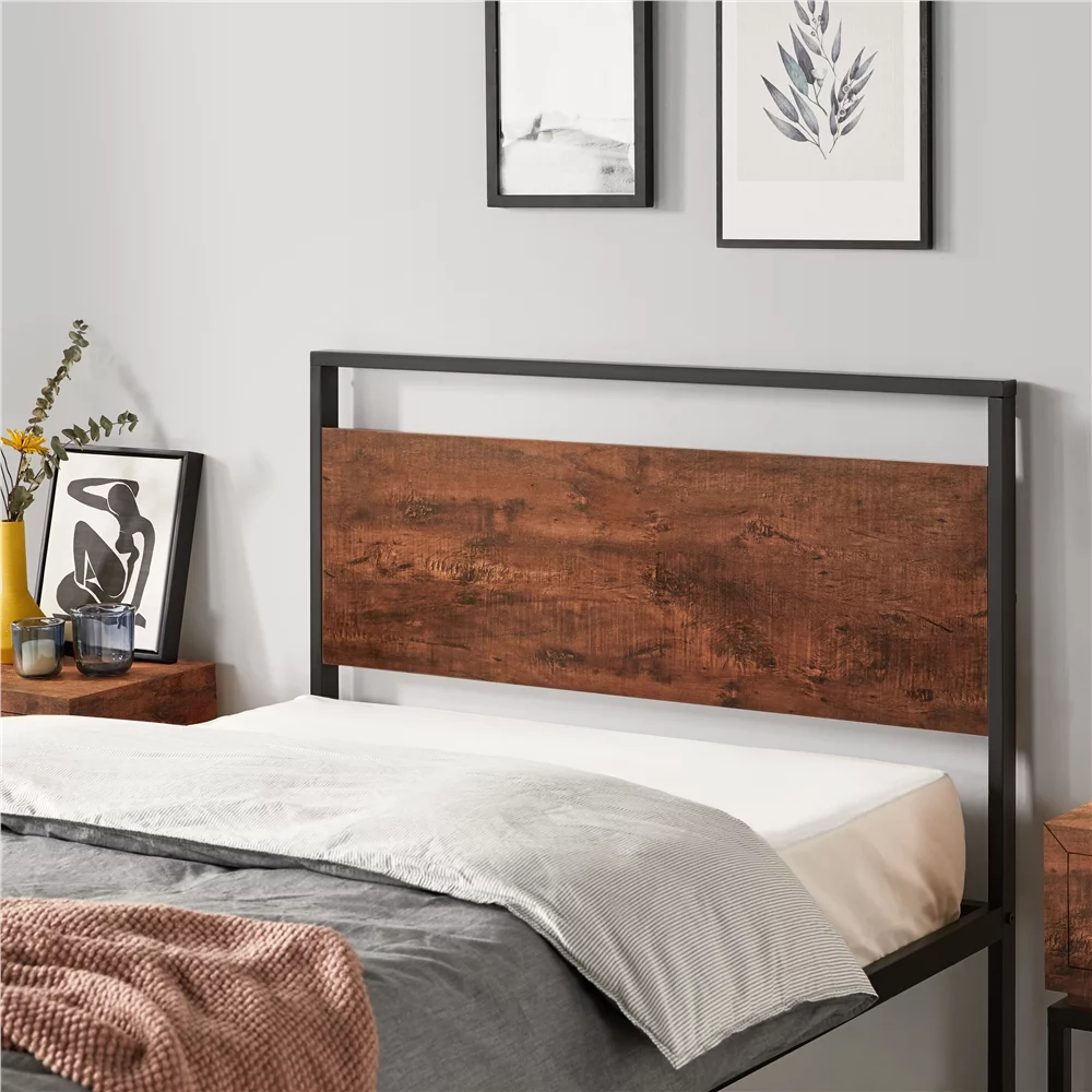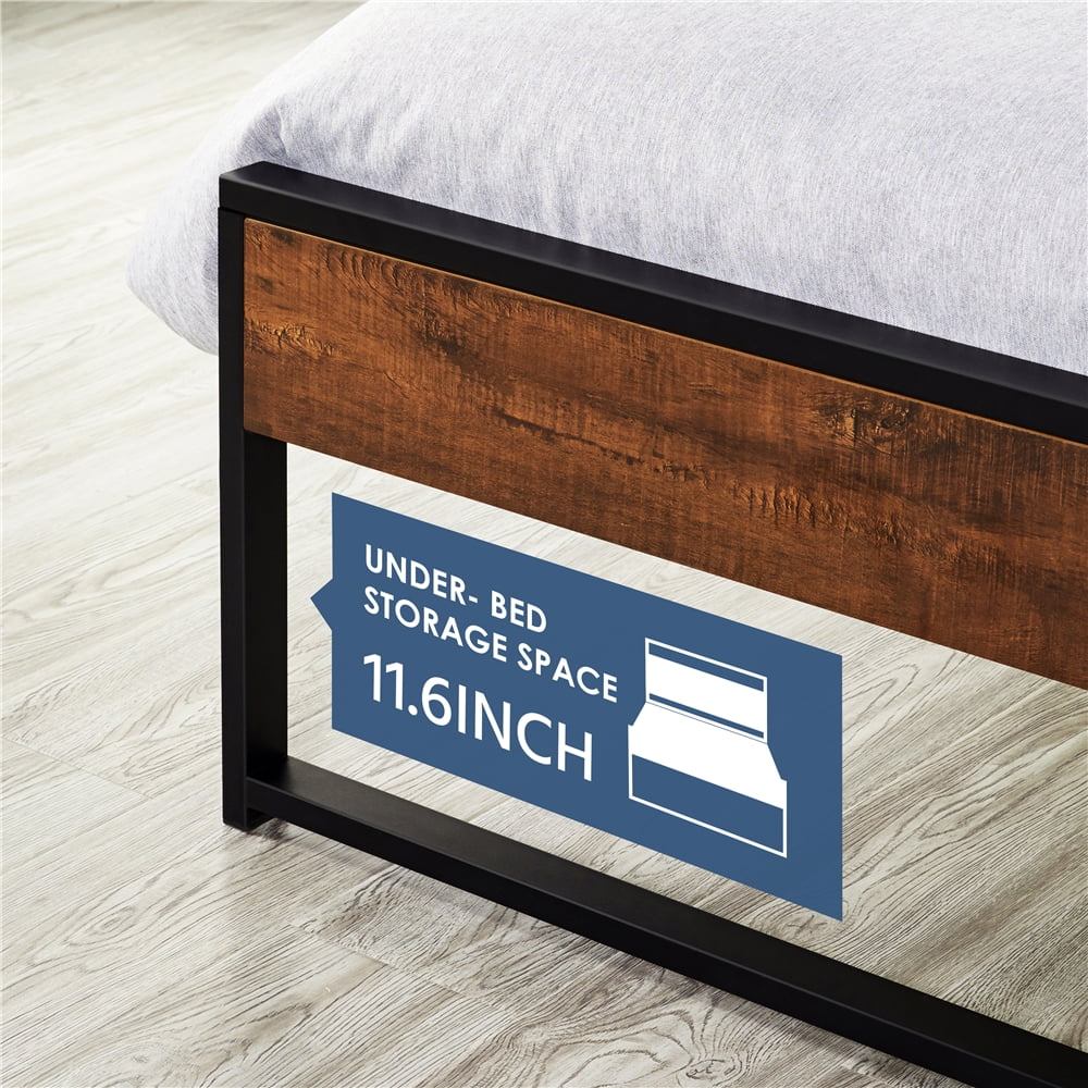 Yaheetech Rustic Platform Bed with Wooden Headboard and Footboard, Twin Size, Mahogany