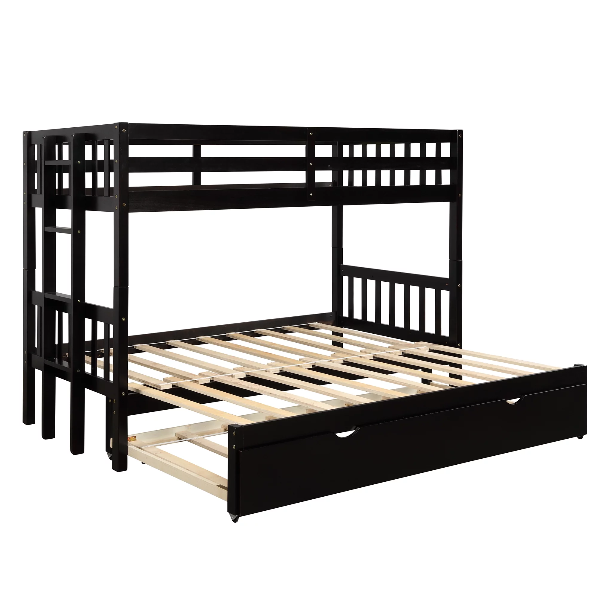 MERAX Twin over Twin/Full Bunk Bed, Pull-out Bunk Bed with Trundle Espresso
