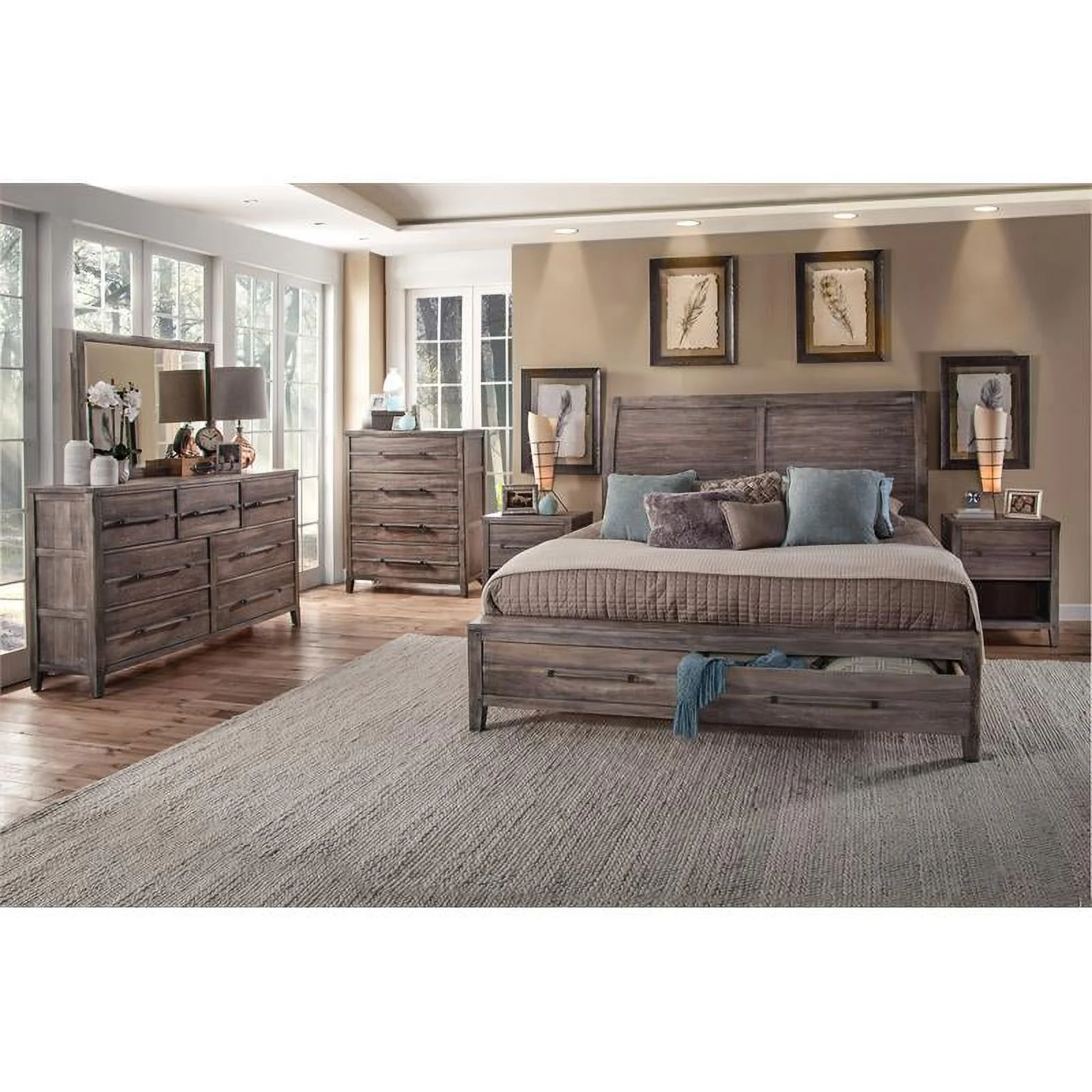 Bedroom Furniture Gray Color Solid wood Simple Transitional 6pcs Set Eastern King Size Bed Dresser Mirror Nightstands Chest