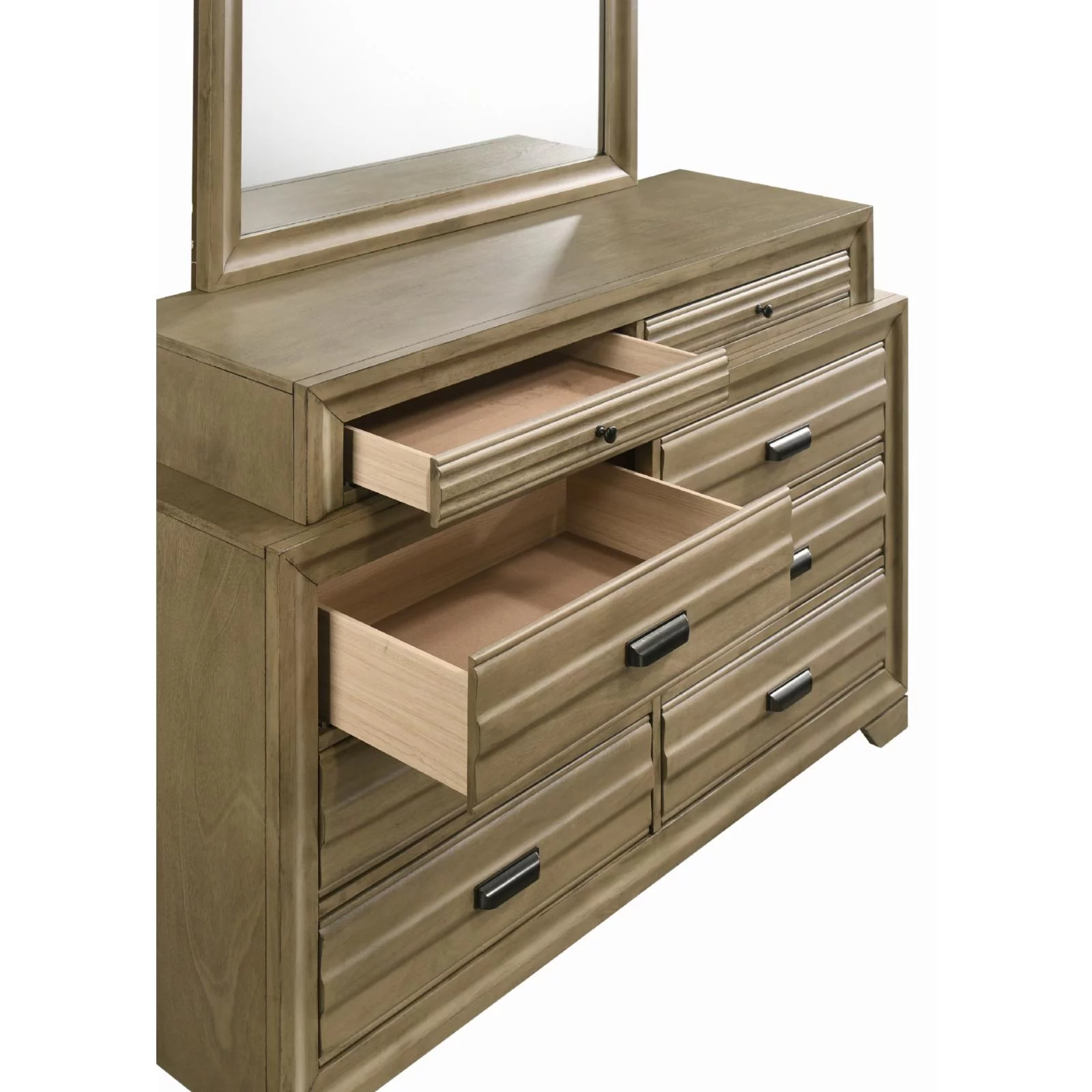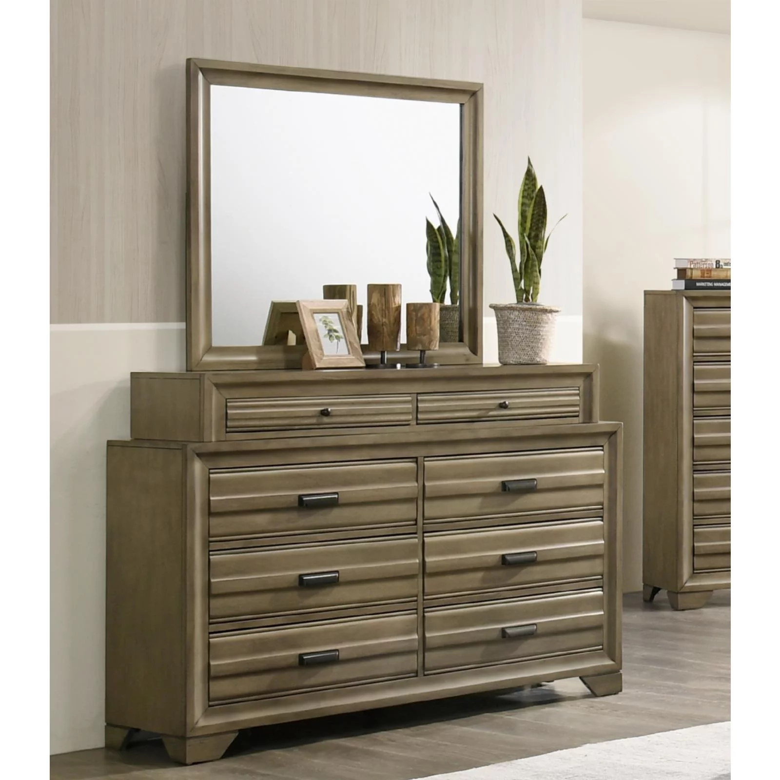 Bowery Hill 2-Piece Contemporary Wood Dresser and Mirror in Warm Gray