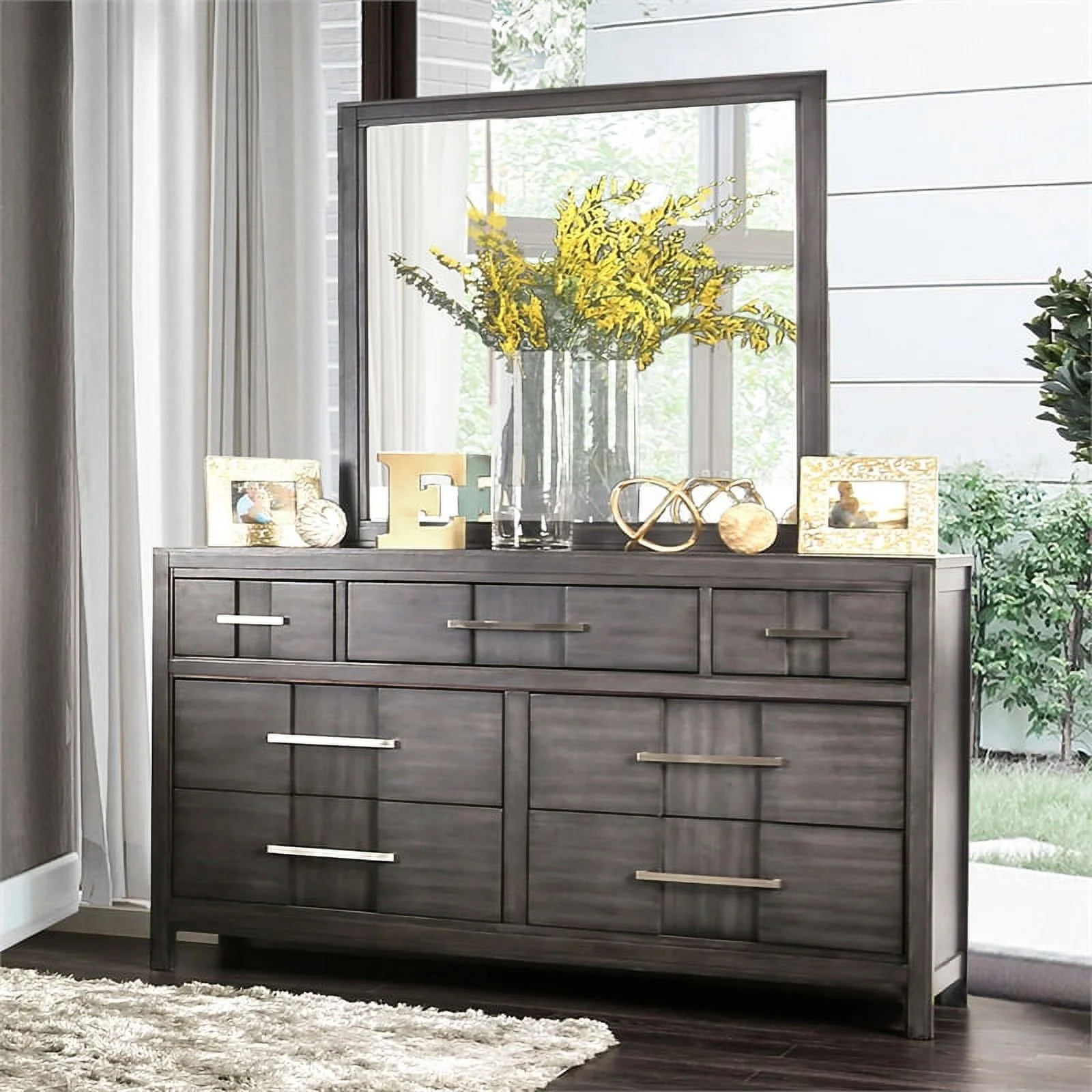 Furniture of America Ender Wood 7-Drawer Dresser with Mirror in Gray