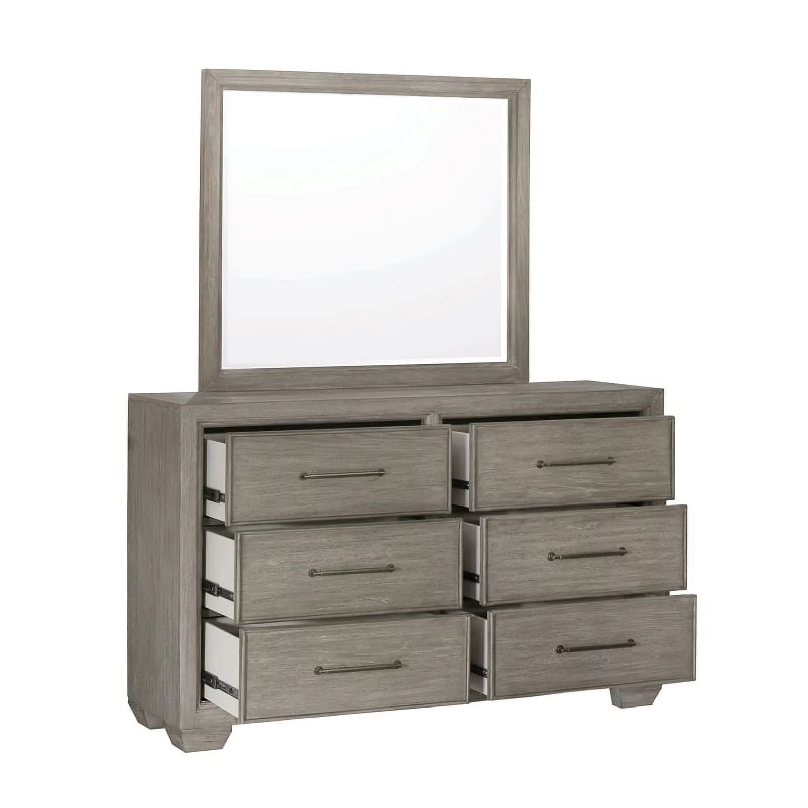 Andover Solid Wood 6 Drawer Dresser with Mirror in Dove Gray by Samuel Lawrence