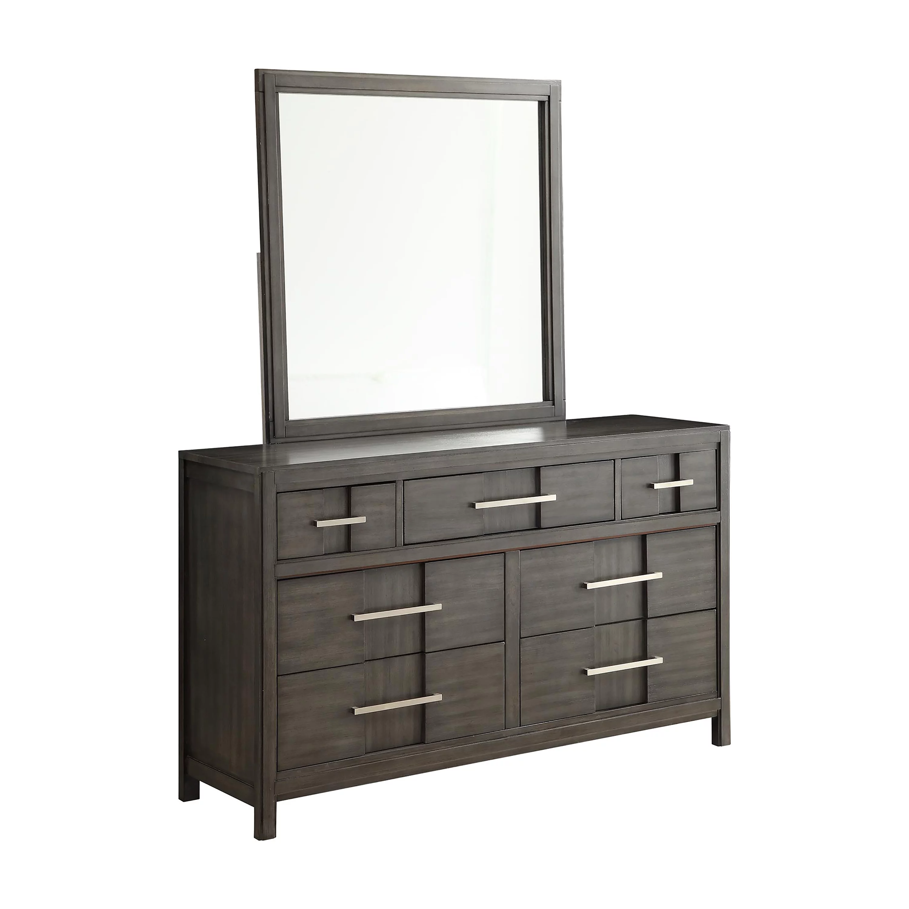 Furniture of America Parro Wood 7-Drawer Dresser with Mirror in Gray