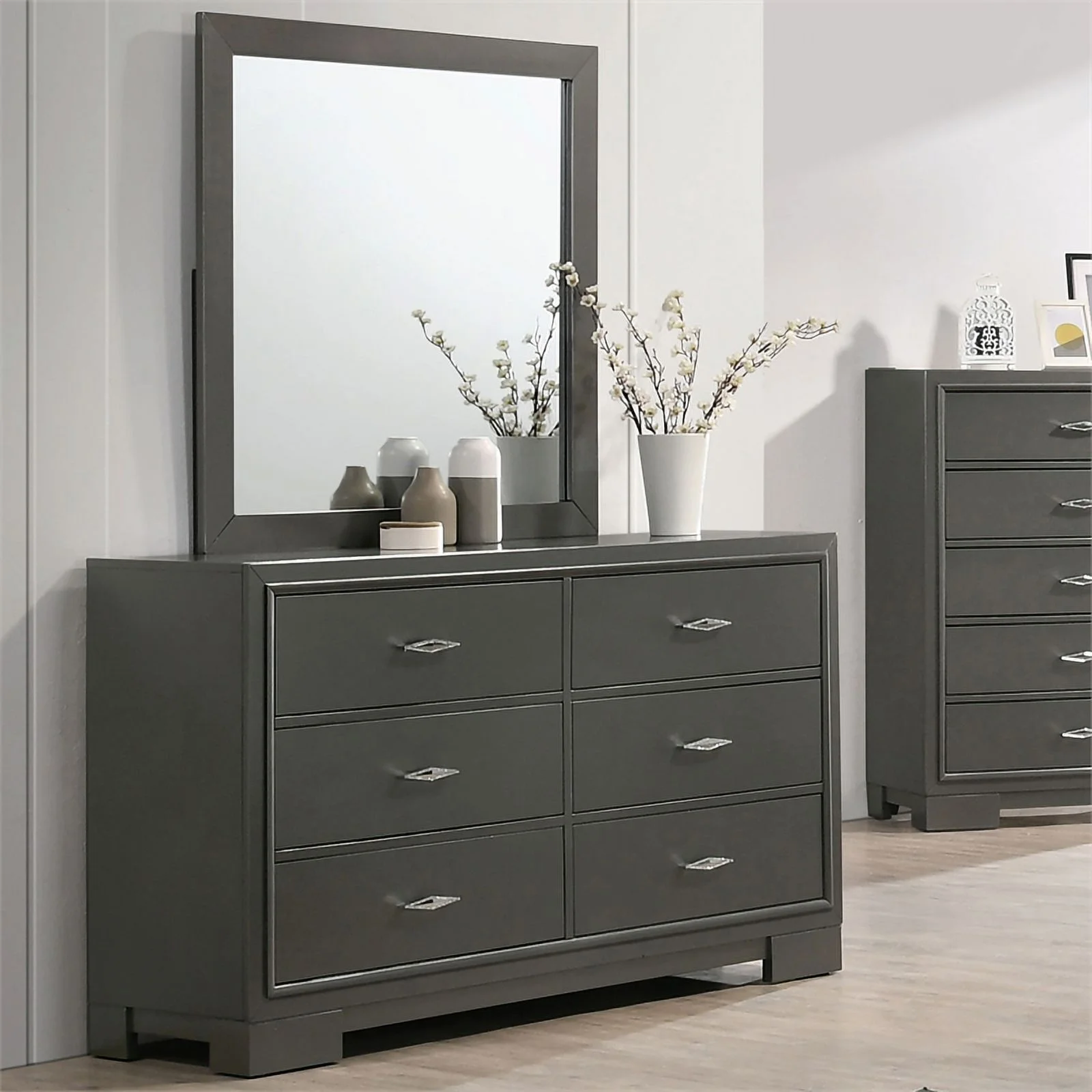 Furniture of America Santi Wood 6-Drawer Dresser with Mirror in Gray