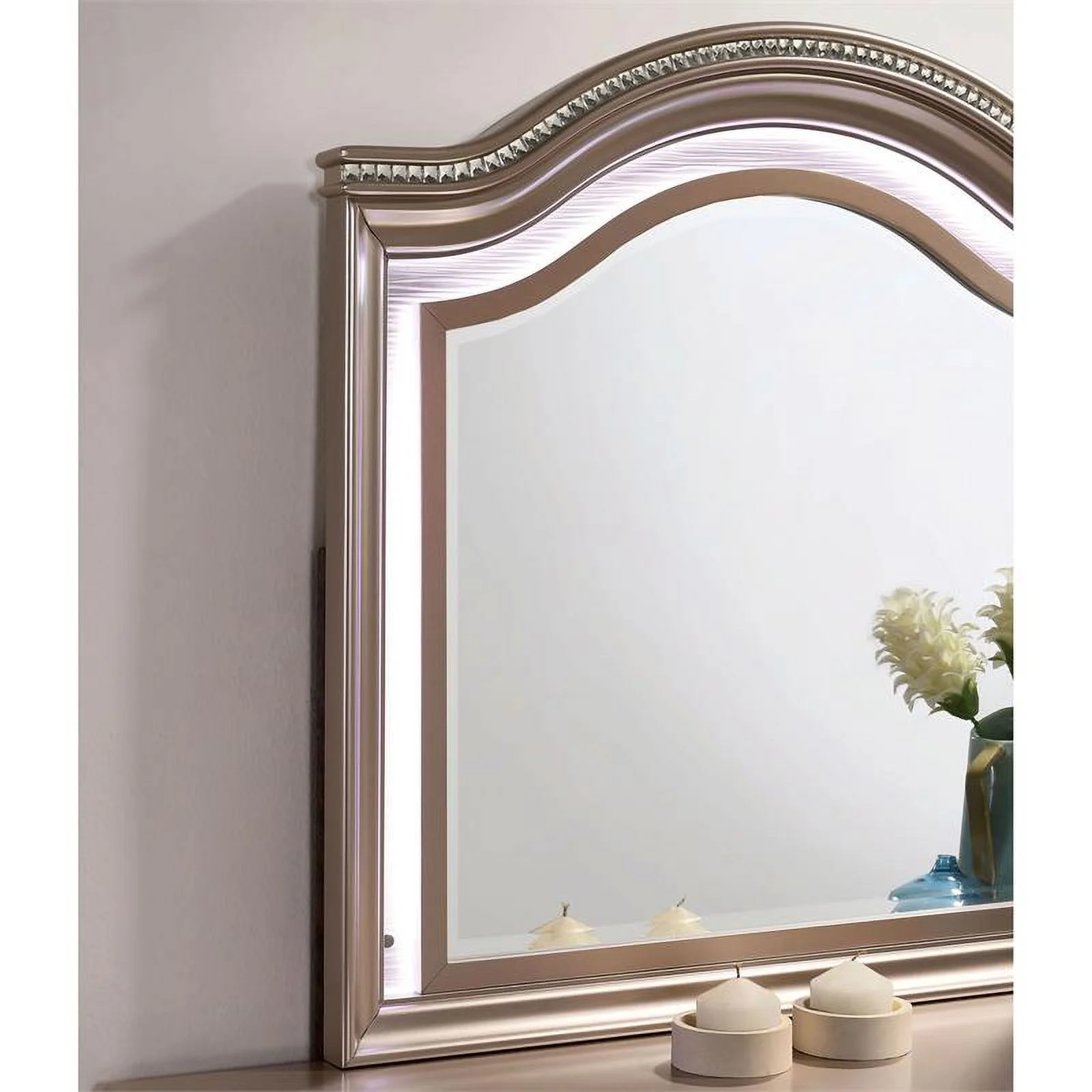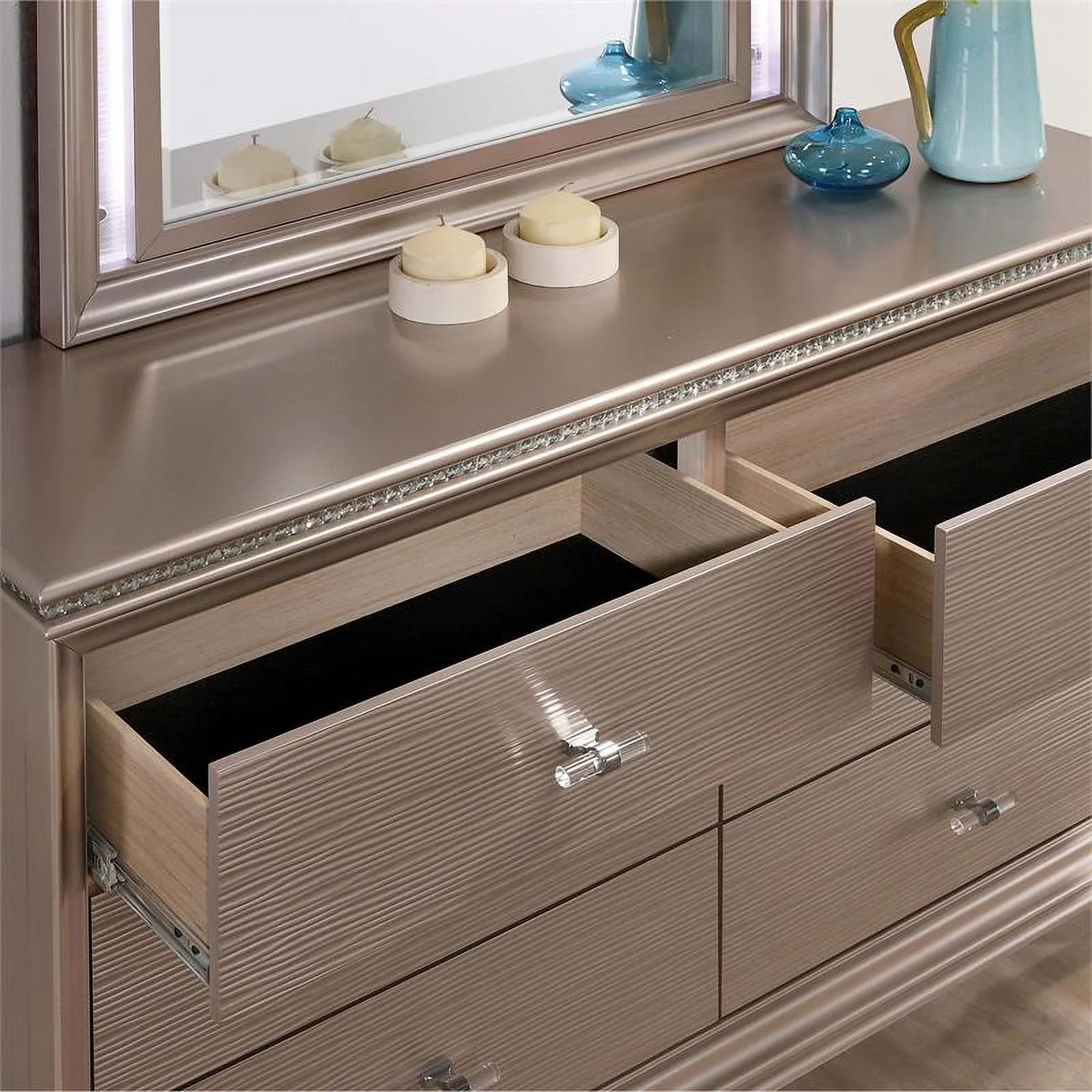 Furniture of America Devado Wood 2-Piece Dresser and Mirror Set in Rose Gold