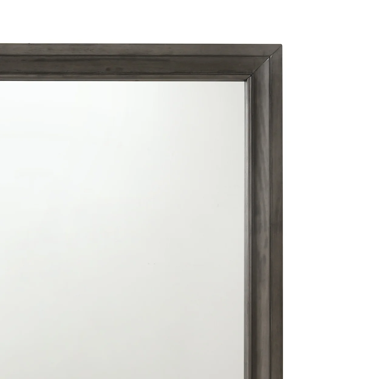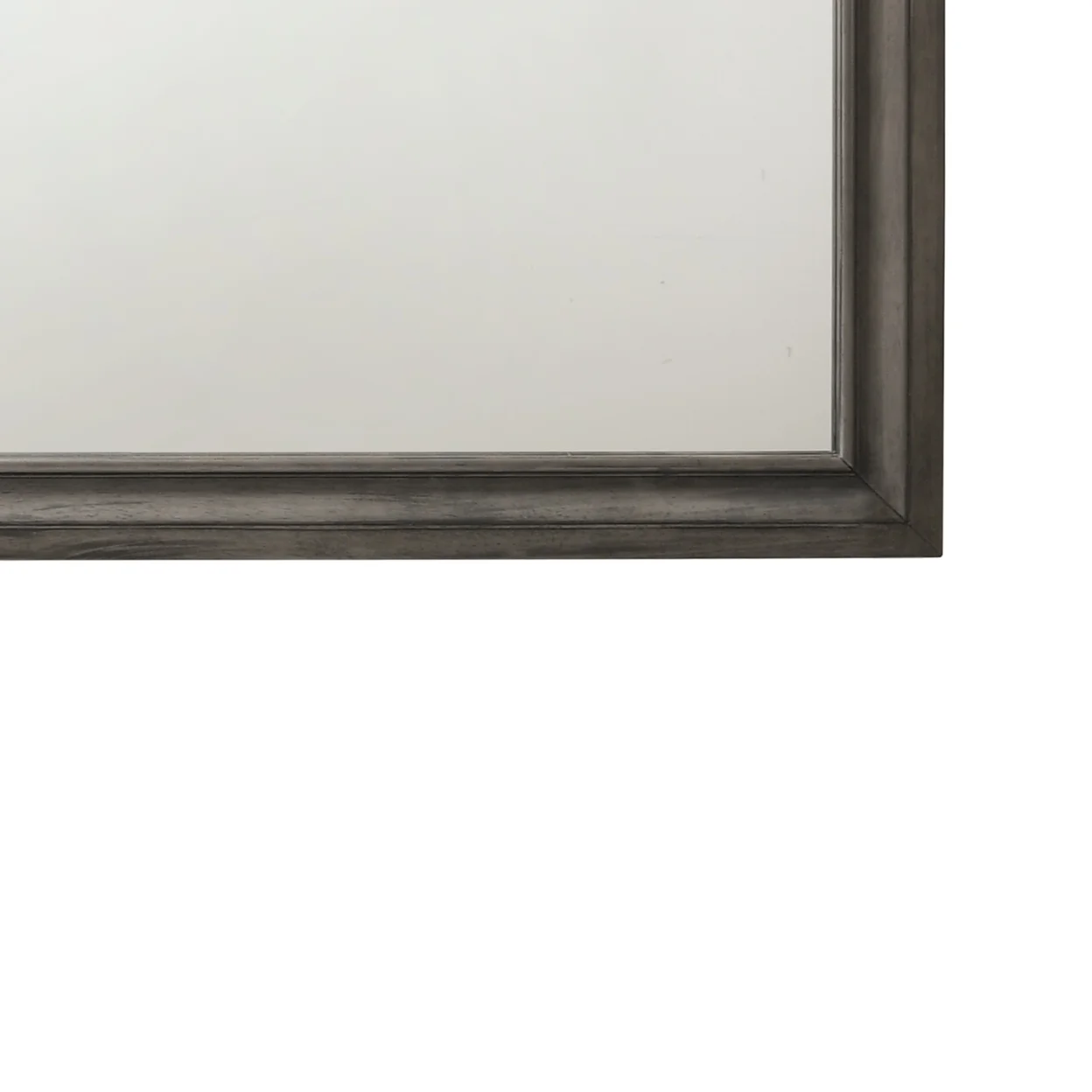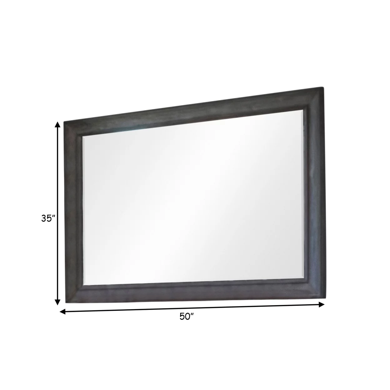 Dexi 50 Inch Rectangular Wall Mirror with Wood Frame, Classic Style, Gray