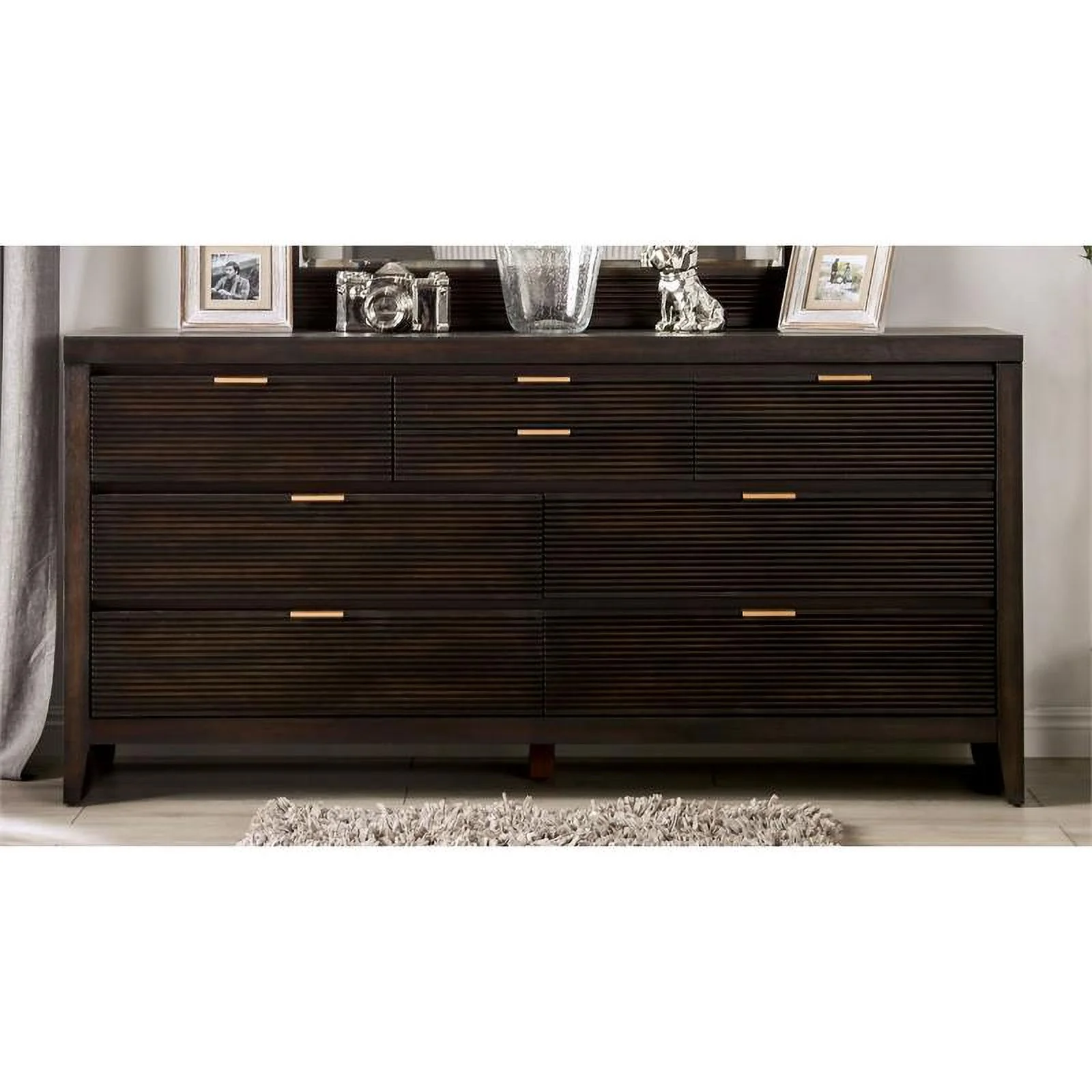 Furniture of America Tezra Wood 2-Piece Dresser and Mirror Set in Dark Walnut