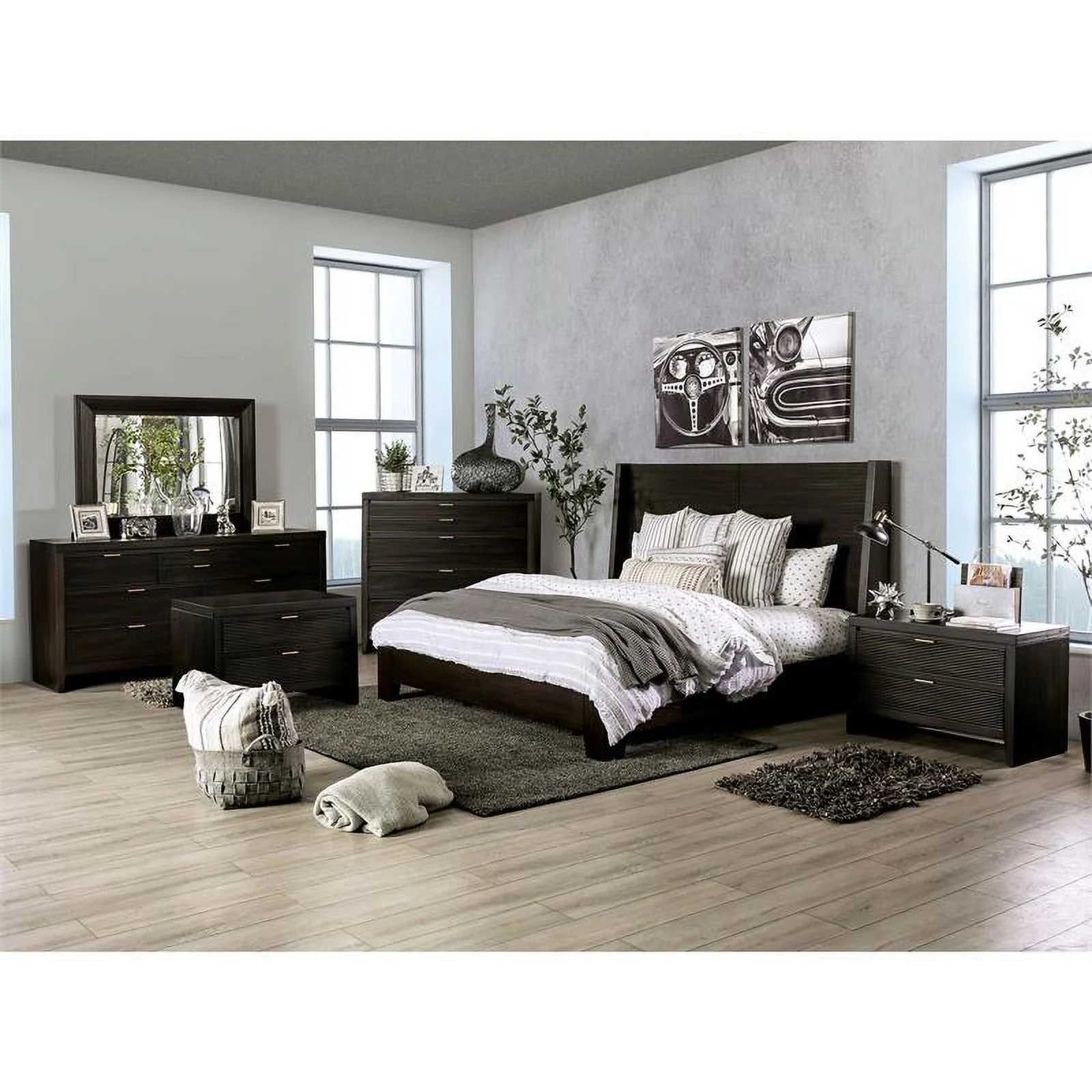 Modern 5pc Bedroom Set Queen Size Bed Dresser Nightstand Mirror Chest Transitional Gray Finish Rustic Style