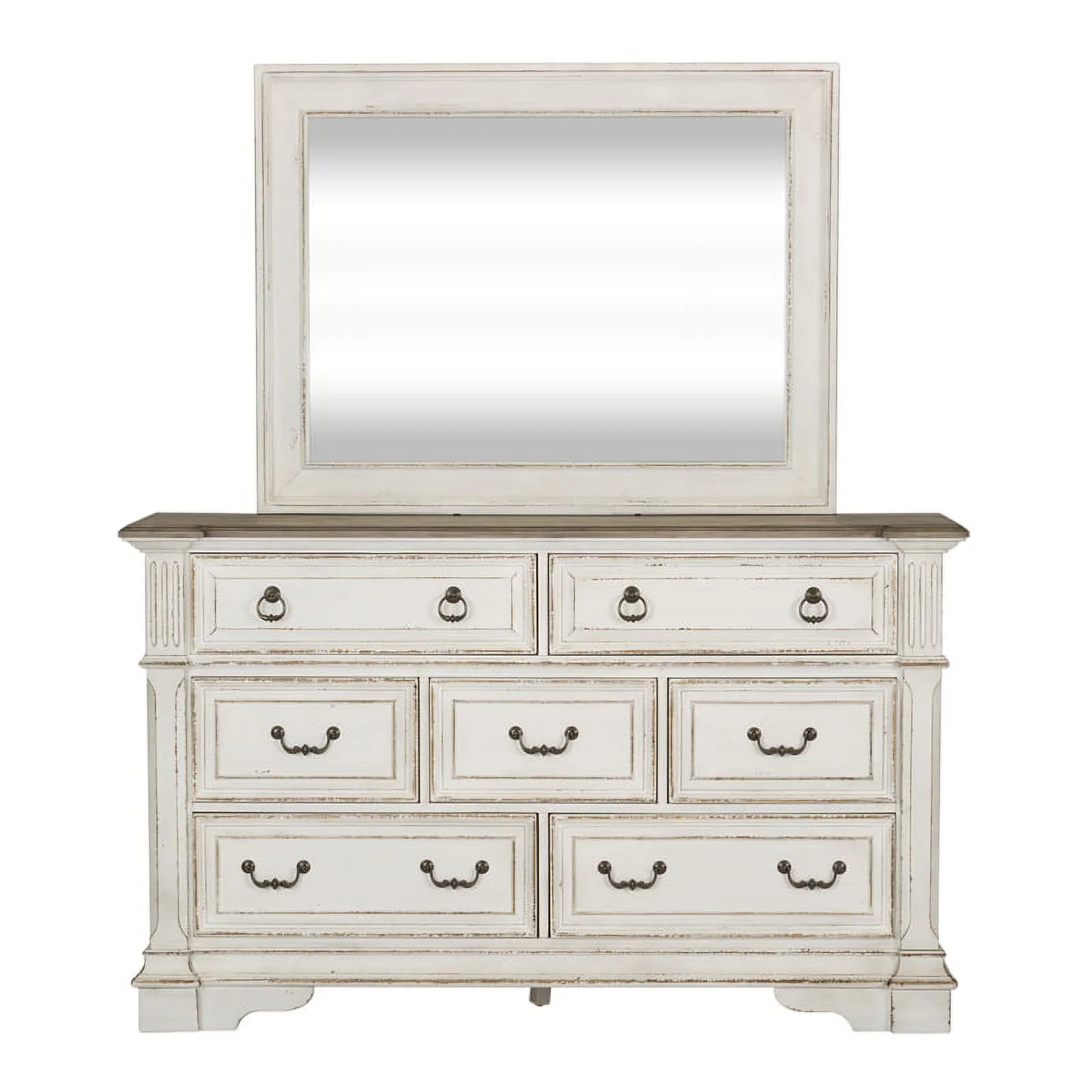 Bowery Hill 2-Piece 7-Drawer Traditional Wood Kids Dresser and Mirror in White