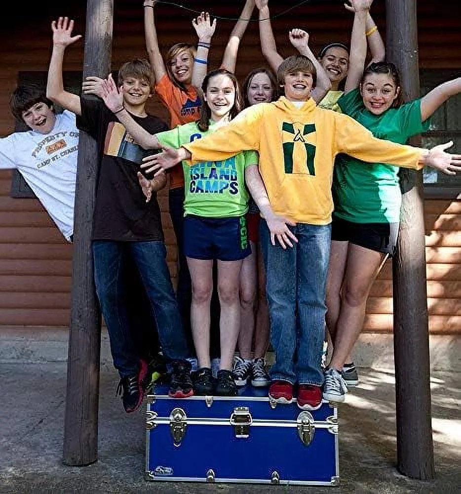 HOOMHIBIU C&N Footlockers Happy Camper Trunk - Summer Camp Chest - Durable with Lid Stay - 32 x 18 x 13.5 Inches (Navy)