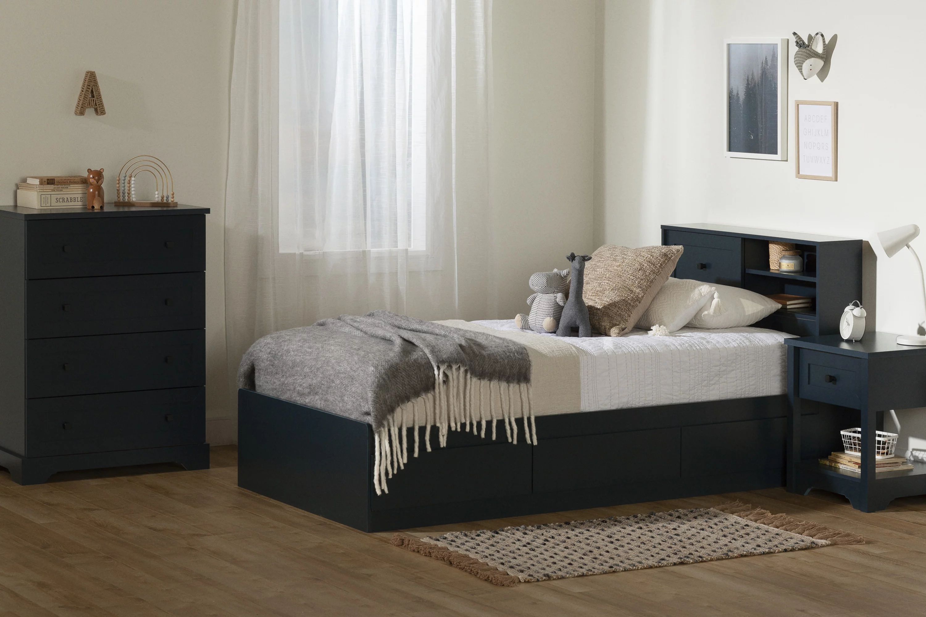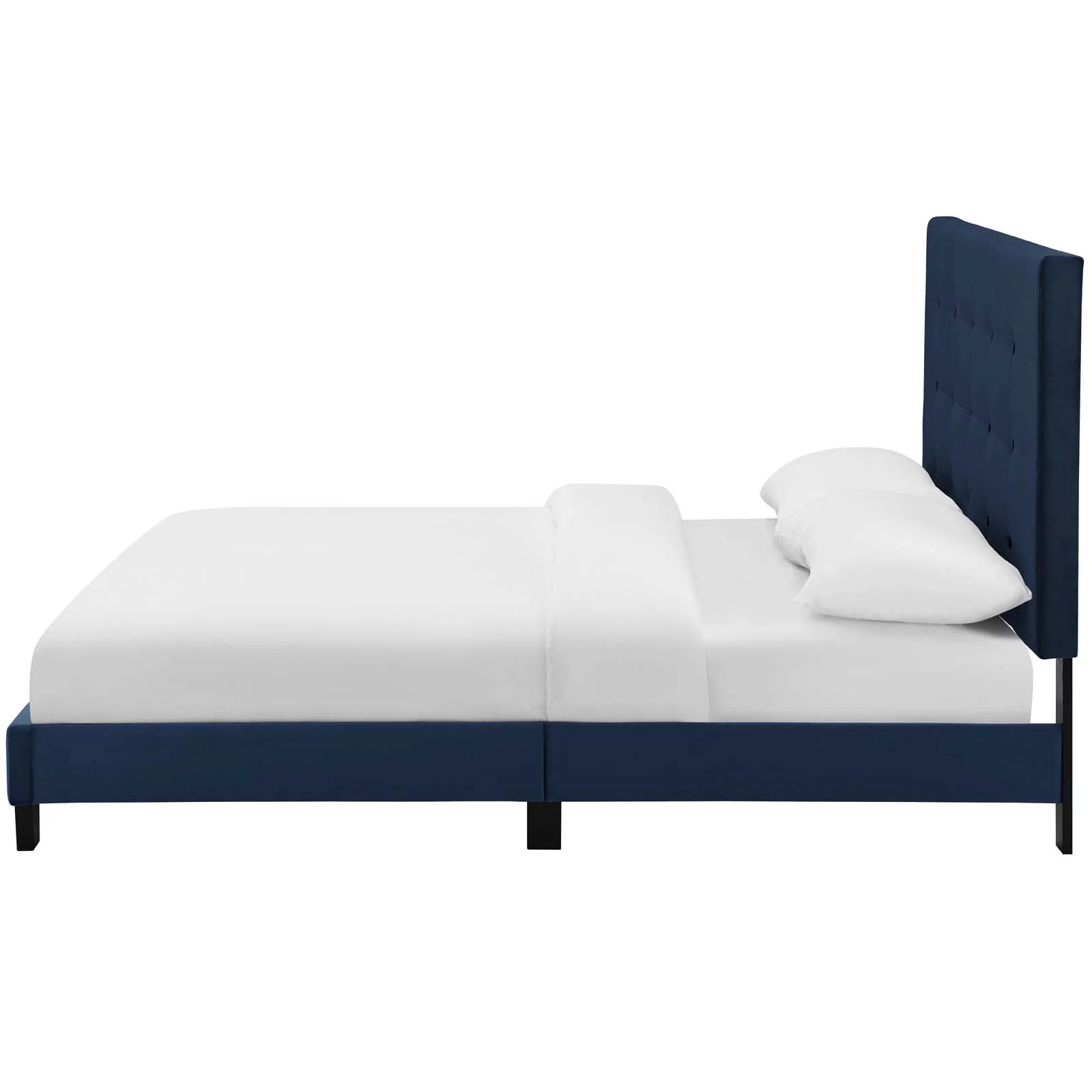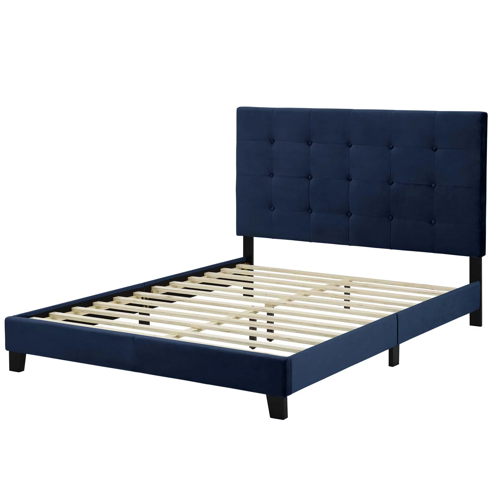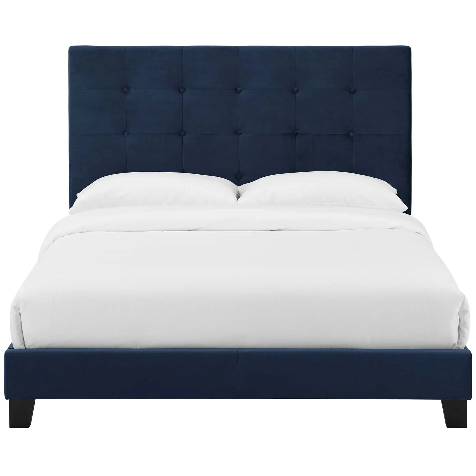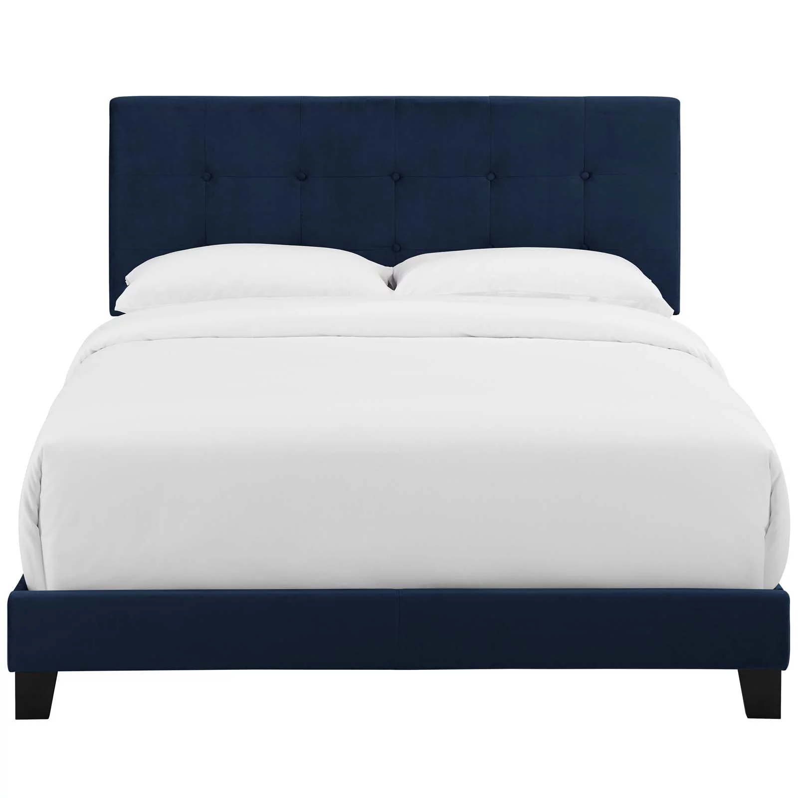 Hawthorne Collections Modern Performance Velvet Twin Bed in Midnight Blue