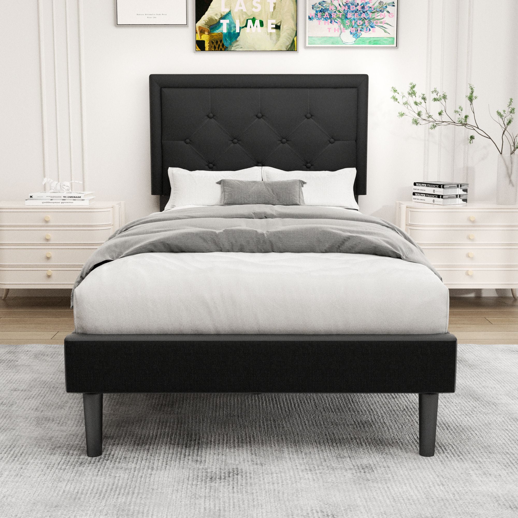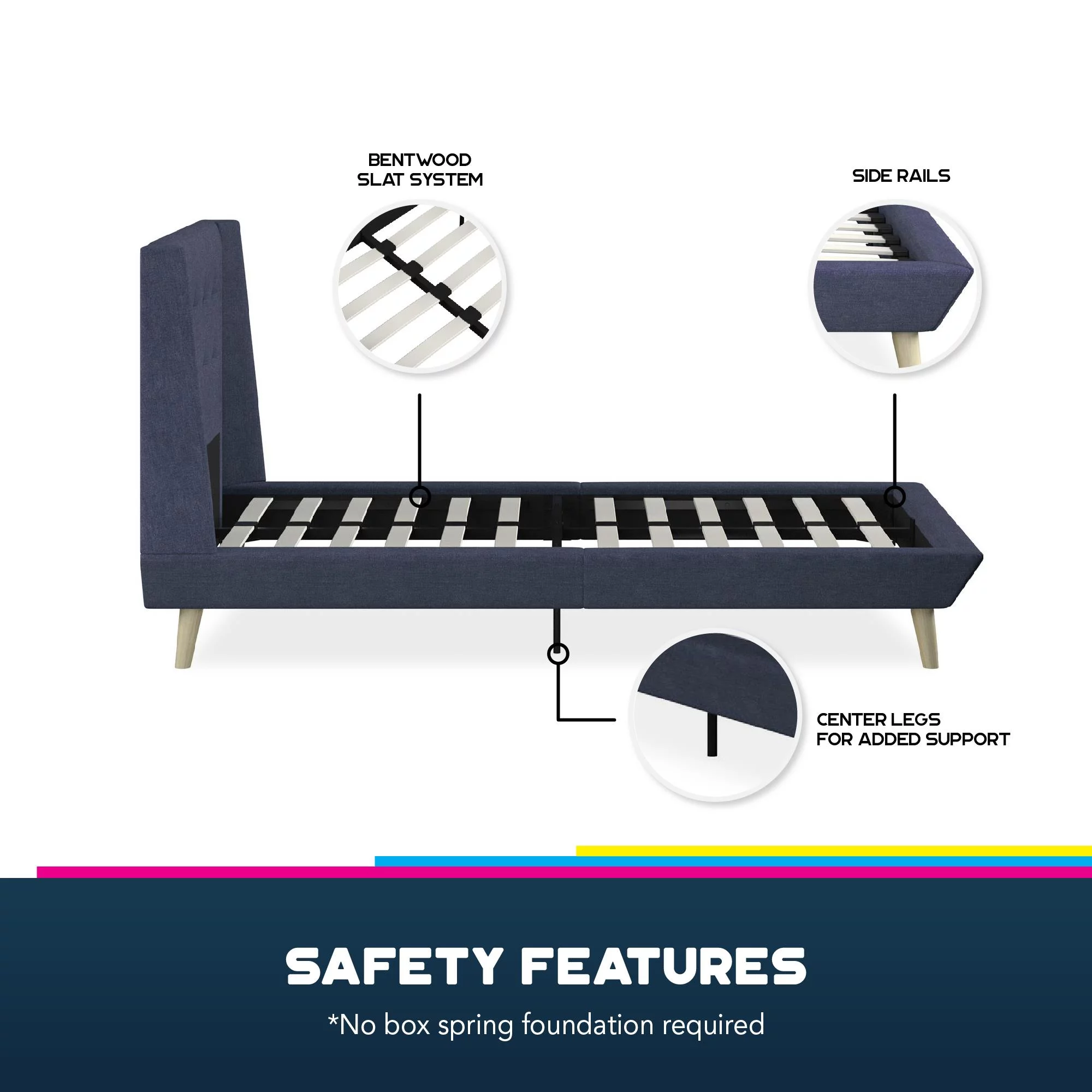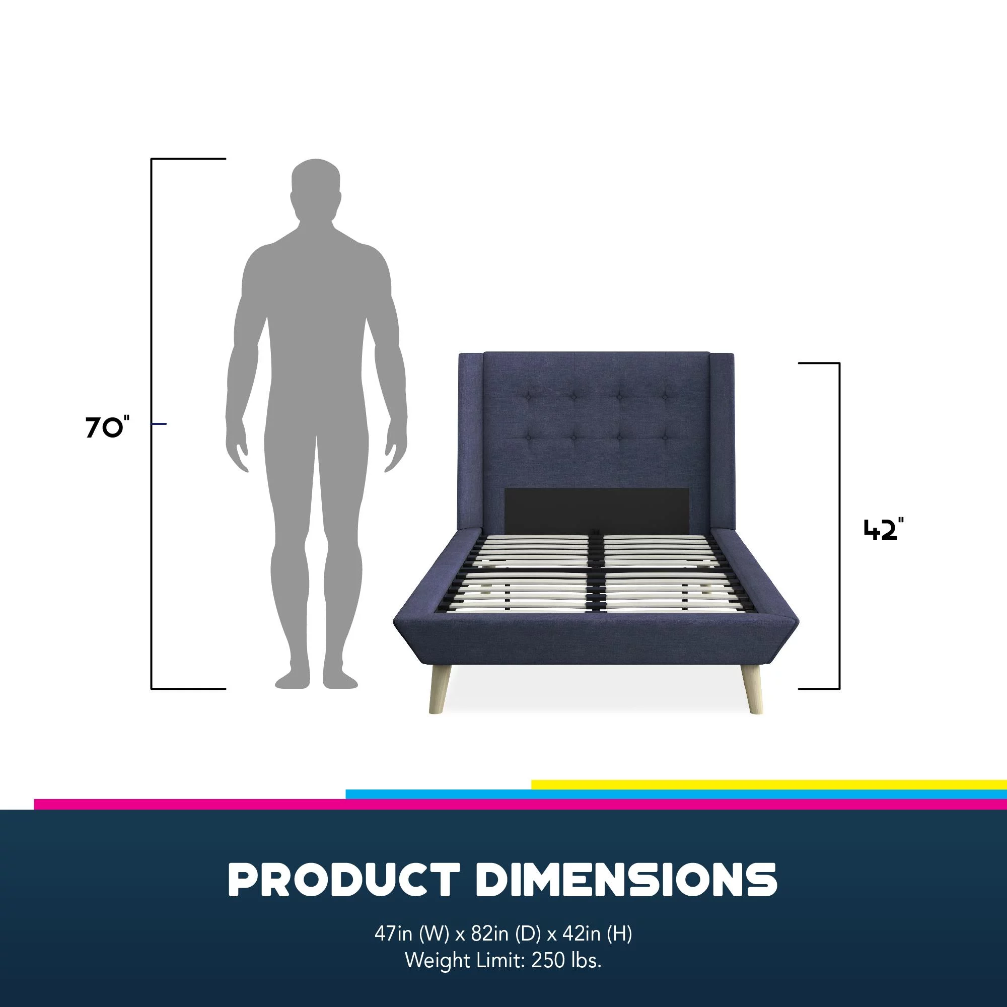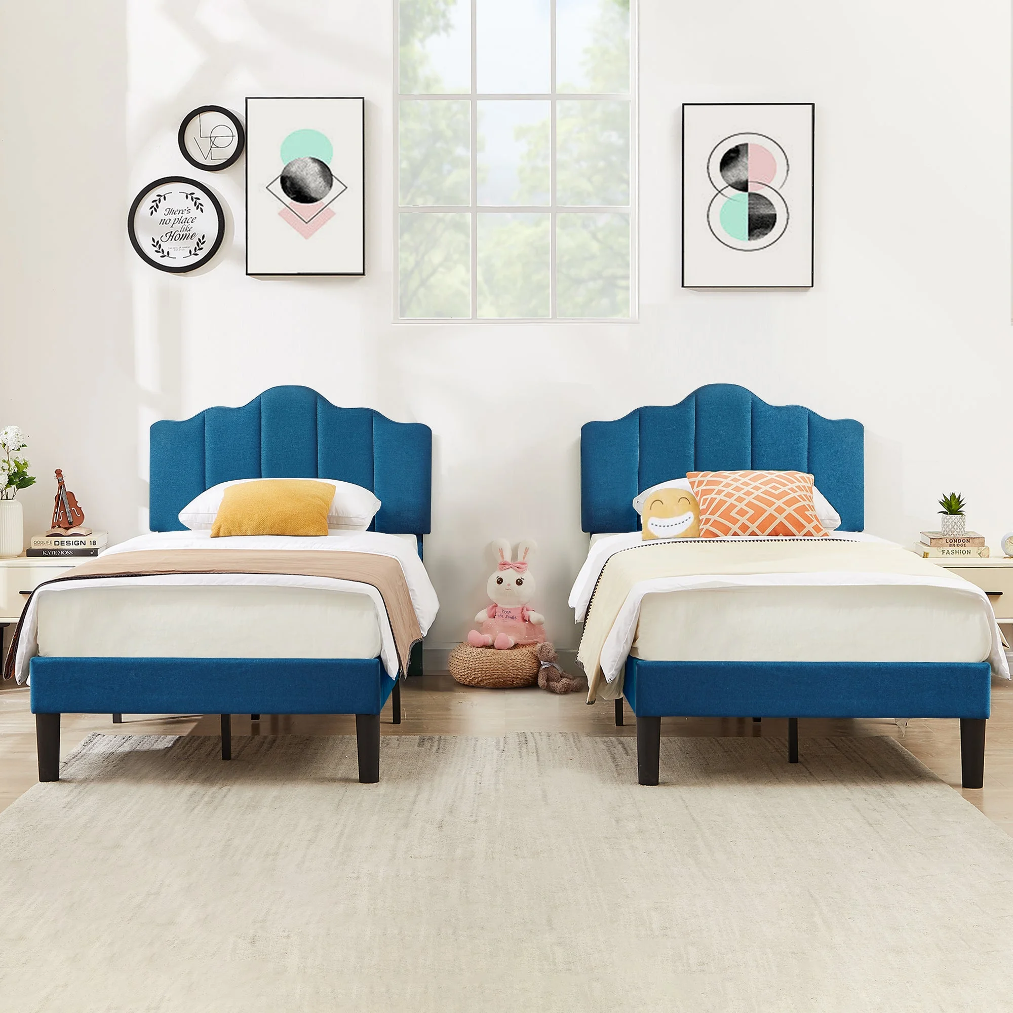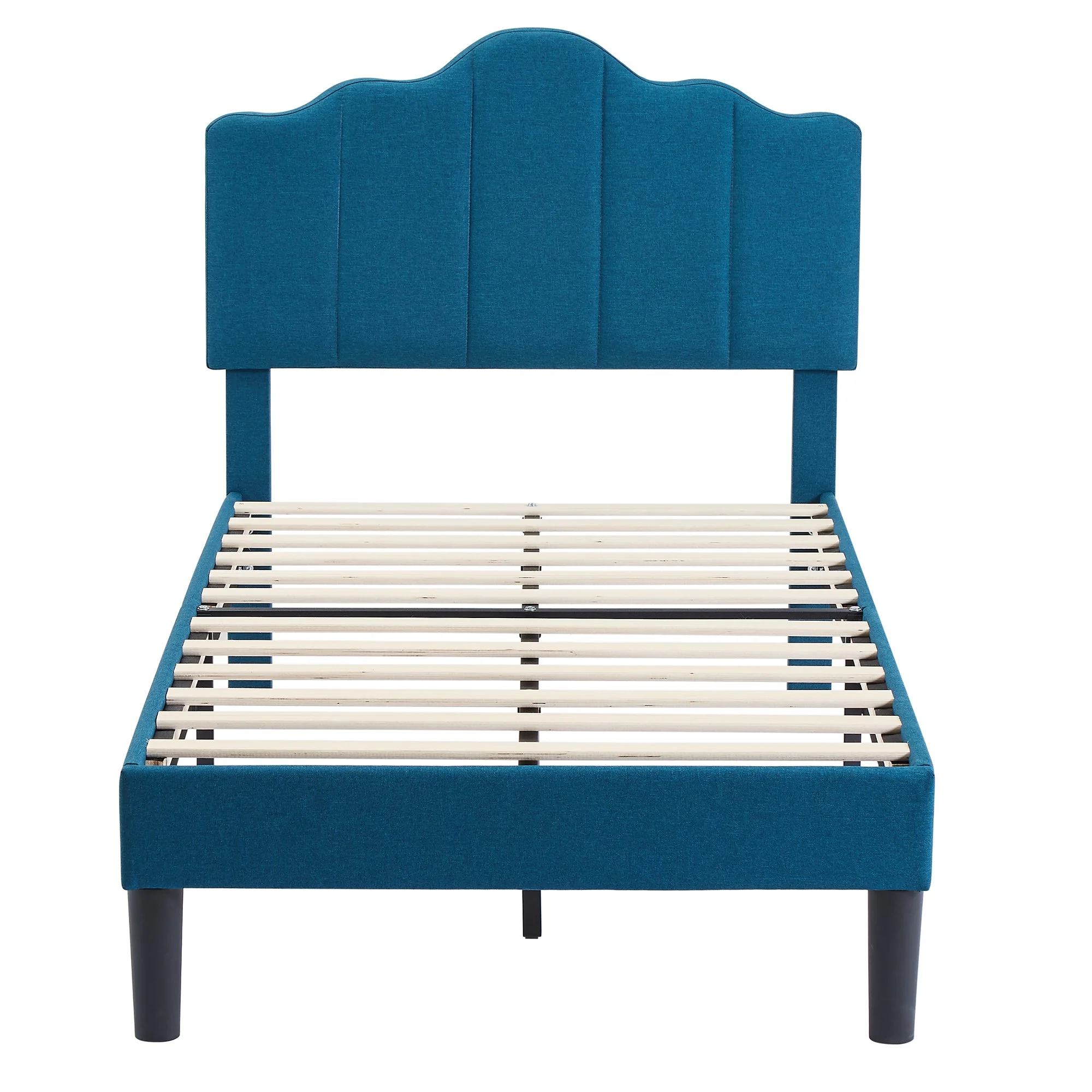 Taomika, Twin Size Modern Upholstered Platform Bed with Adjustable Headboard, Blue