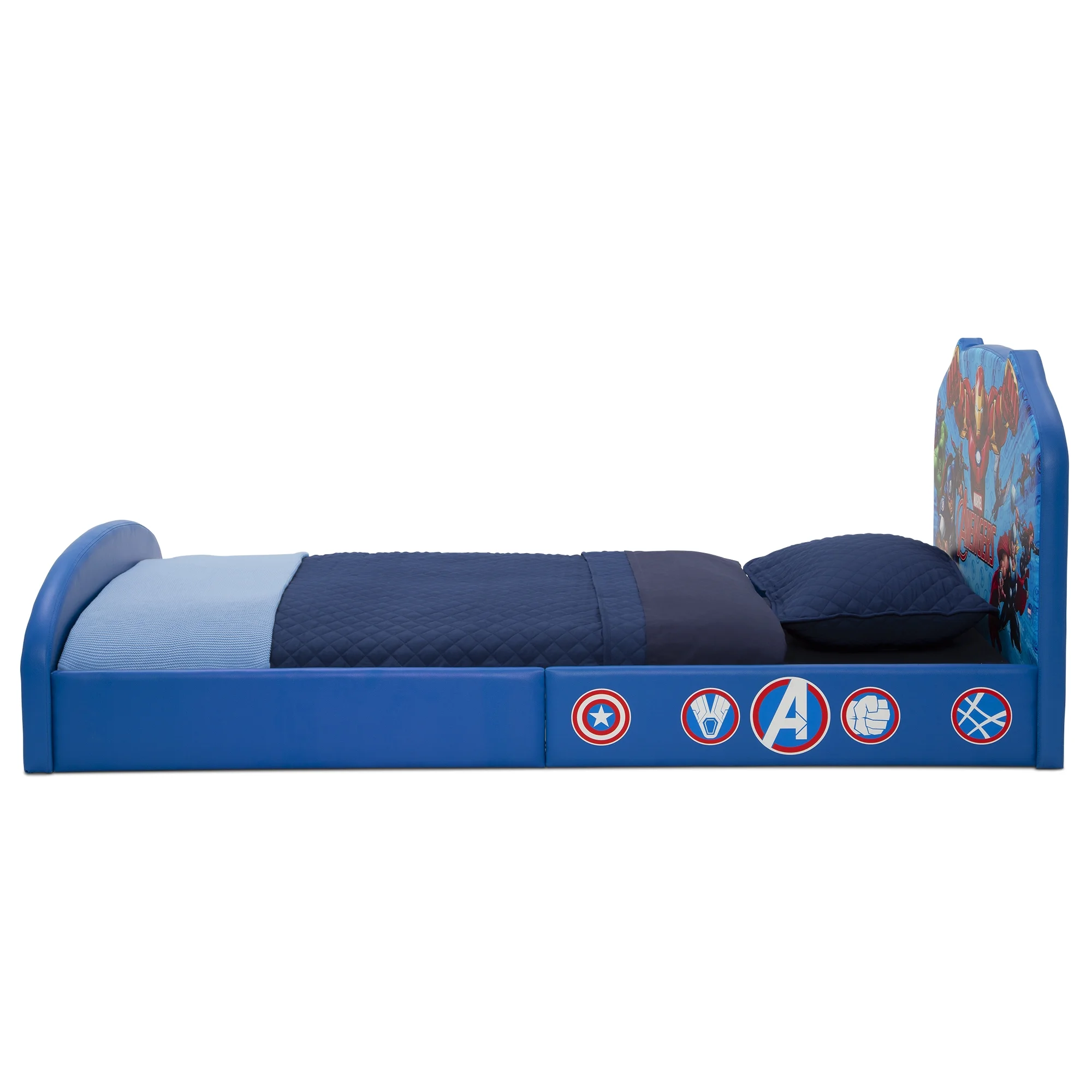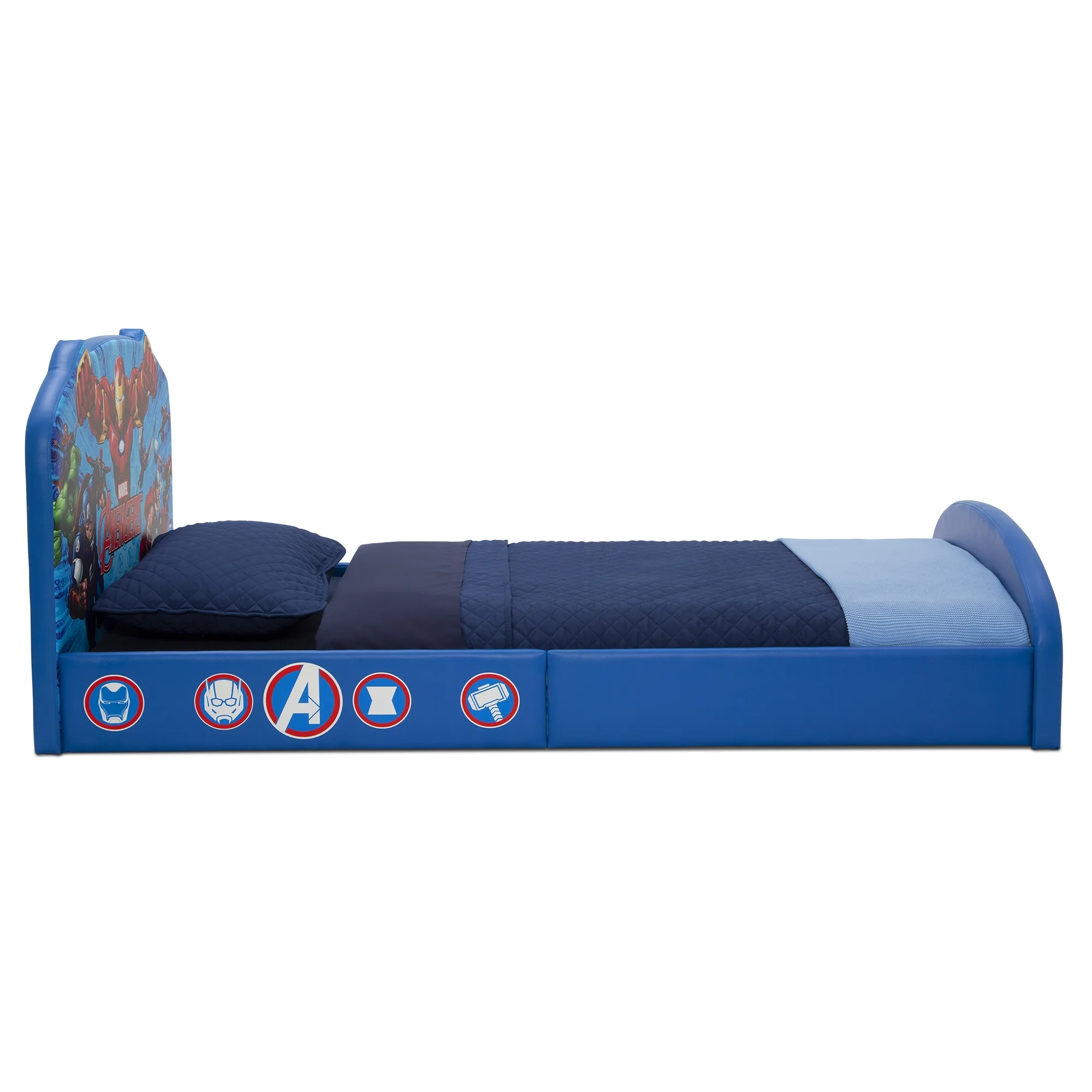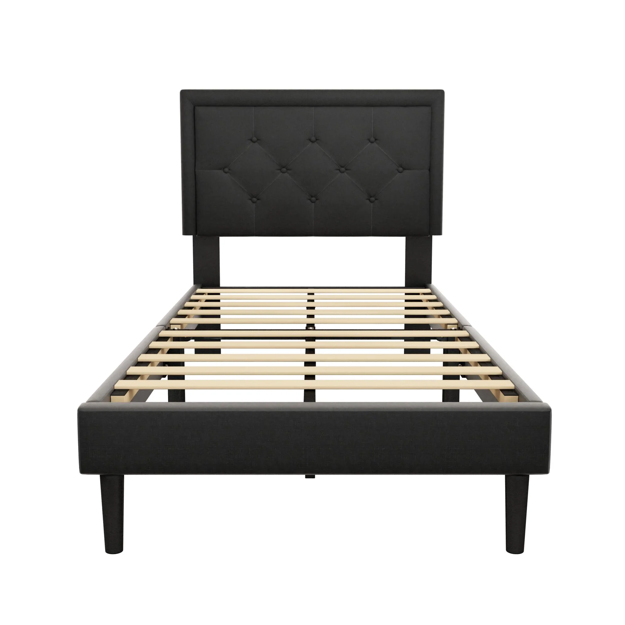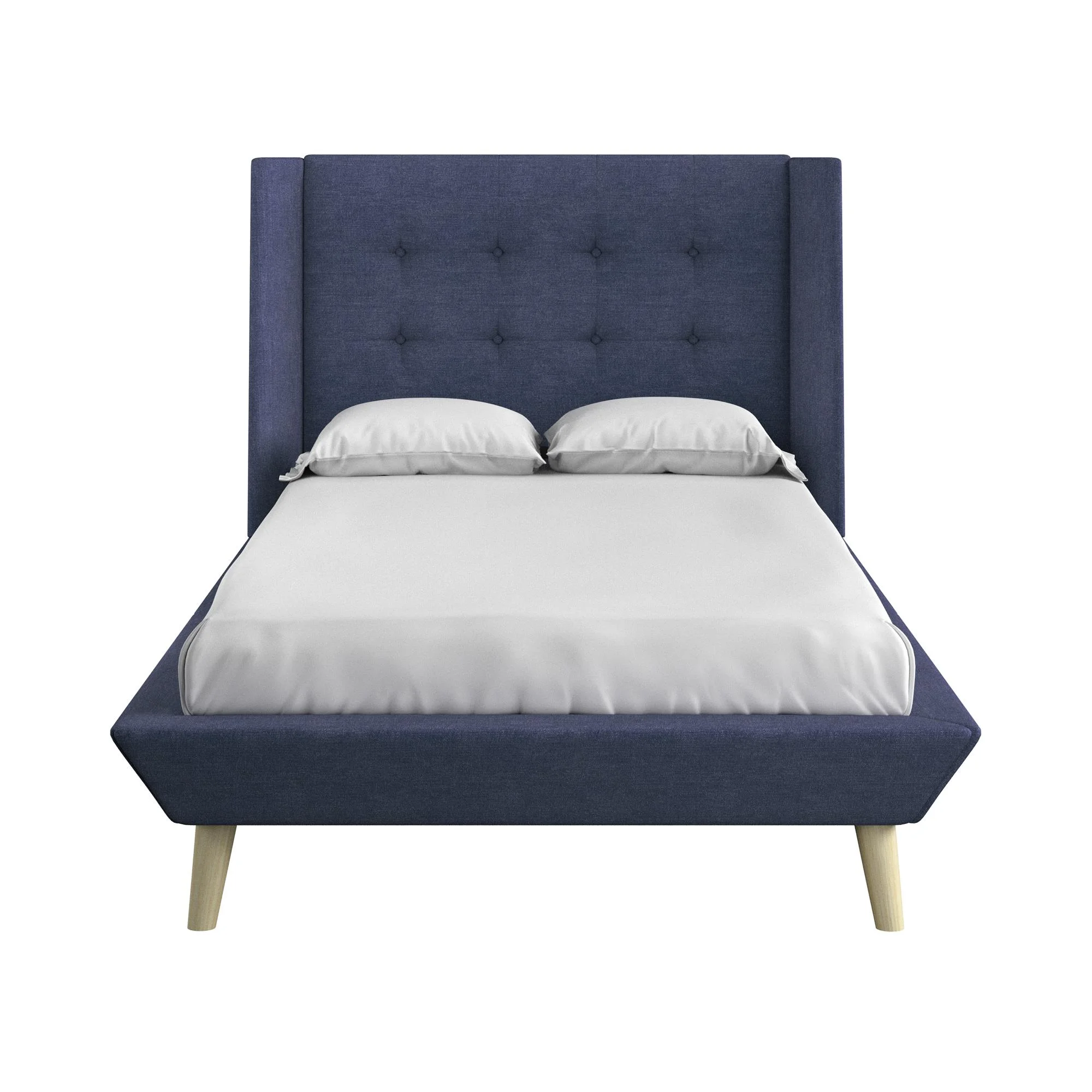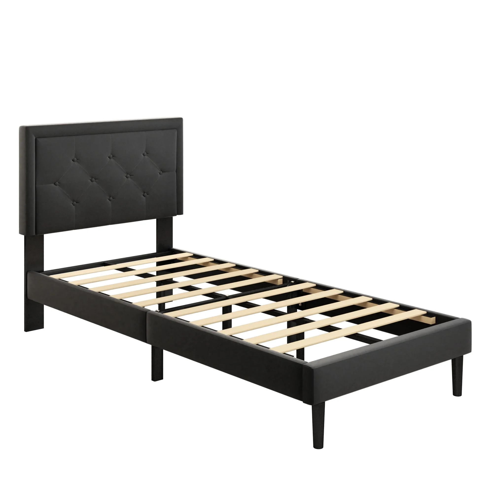 Taomika, Twin Size Modern Upholstered Platform Bed with Adjustable Headboard, Blue