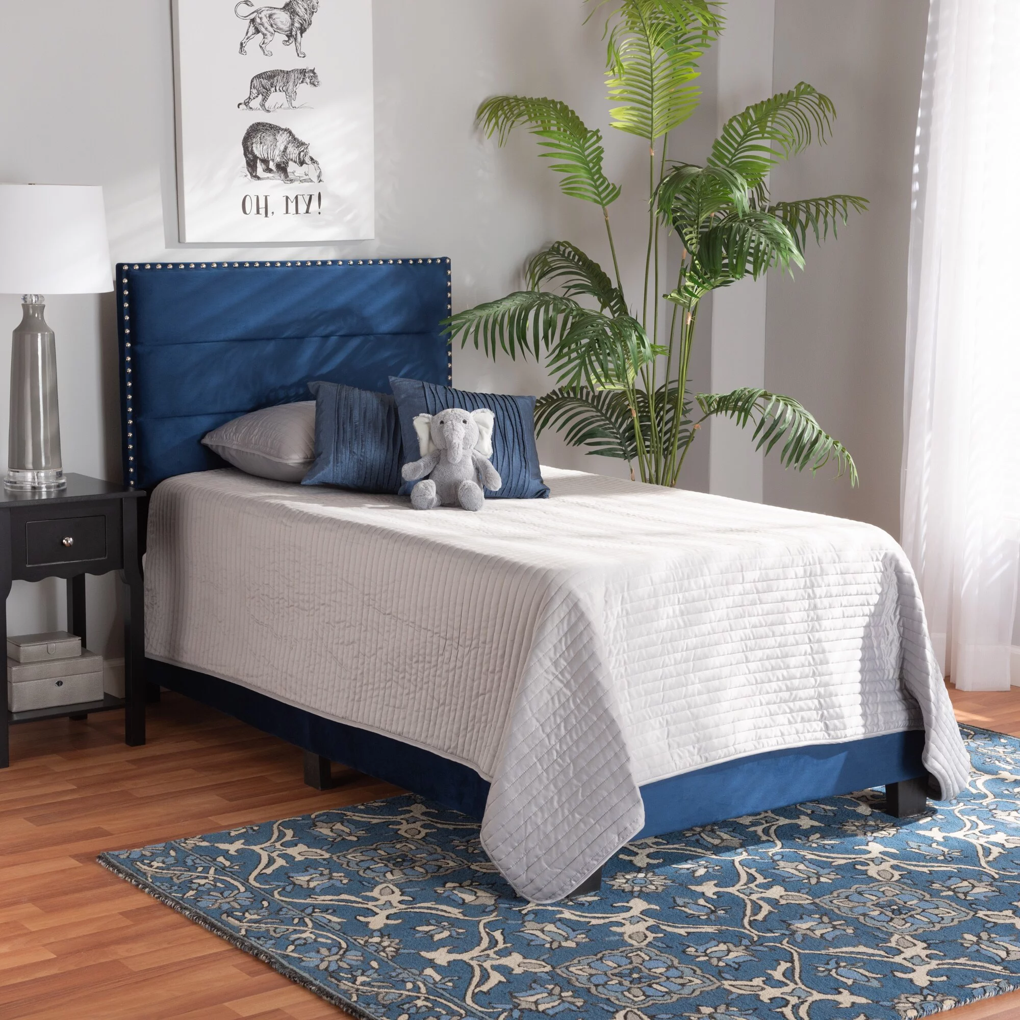 Baxton Studio Tamira Contemporary Glam Velvet Fabric Twin Size Panel Bed Blue