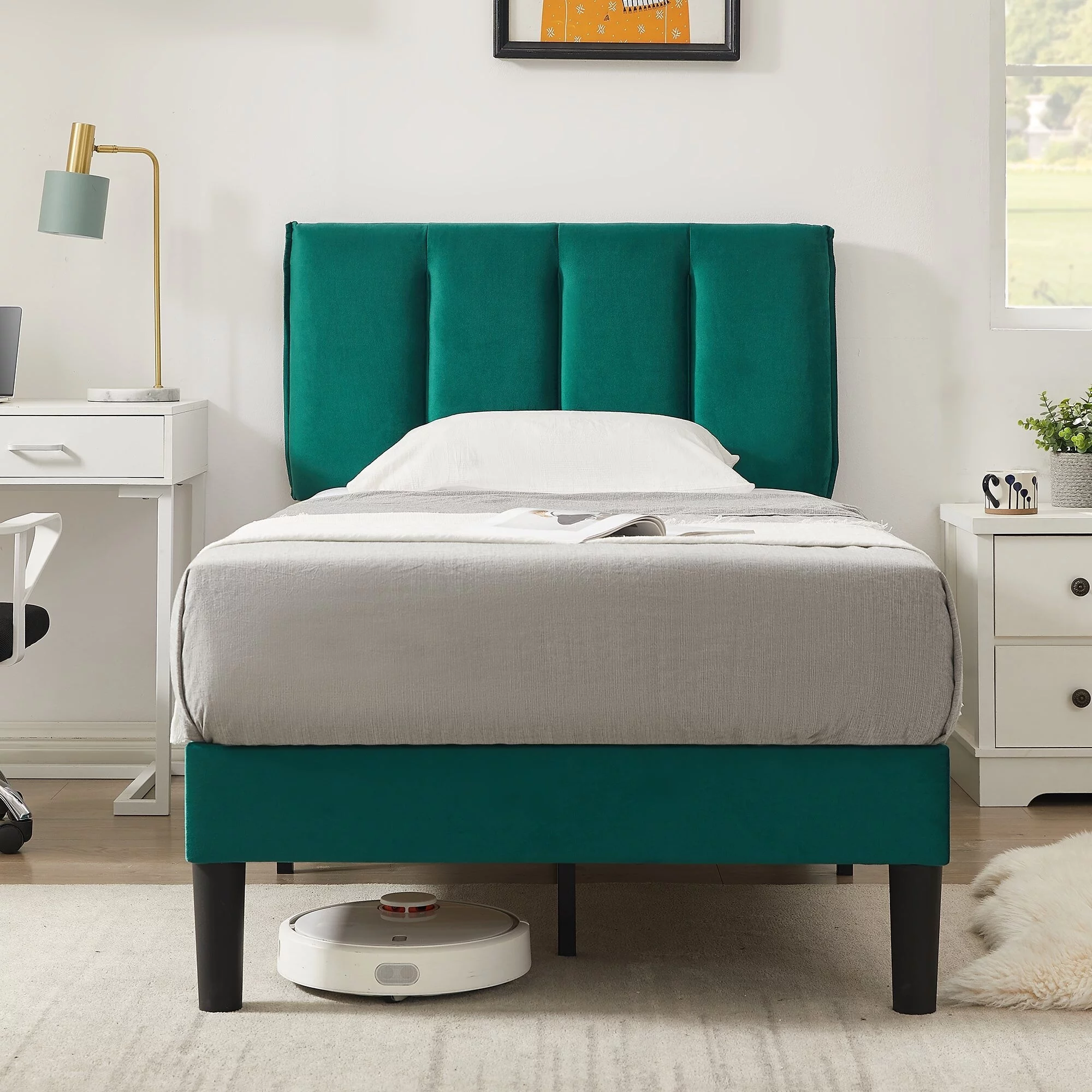 Javlergo Twin Size Bed Frame Upholstered Adjustable Height Headboard Green - Twin
