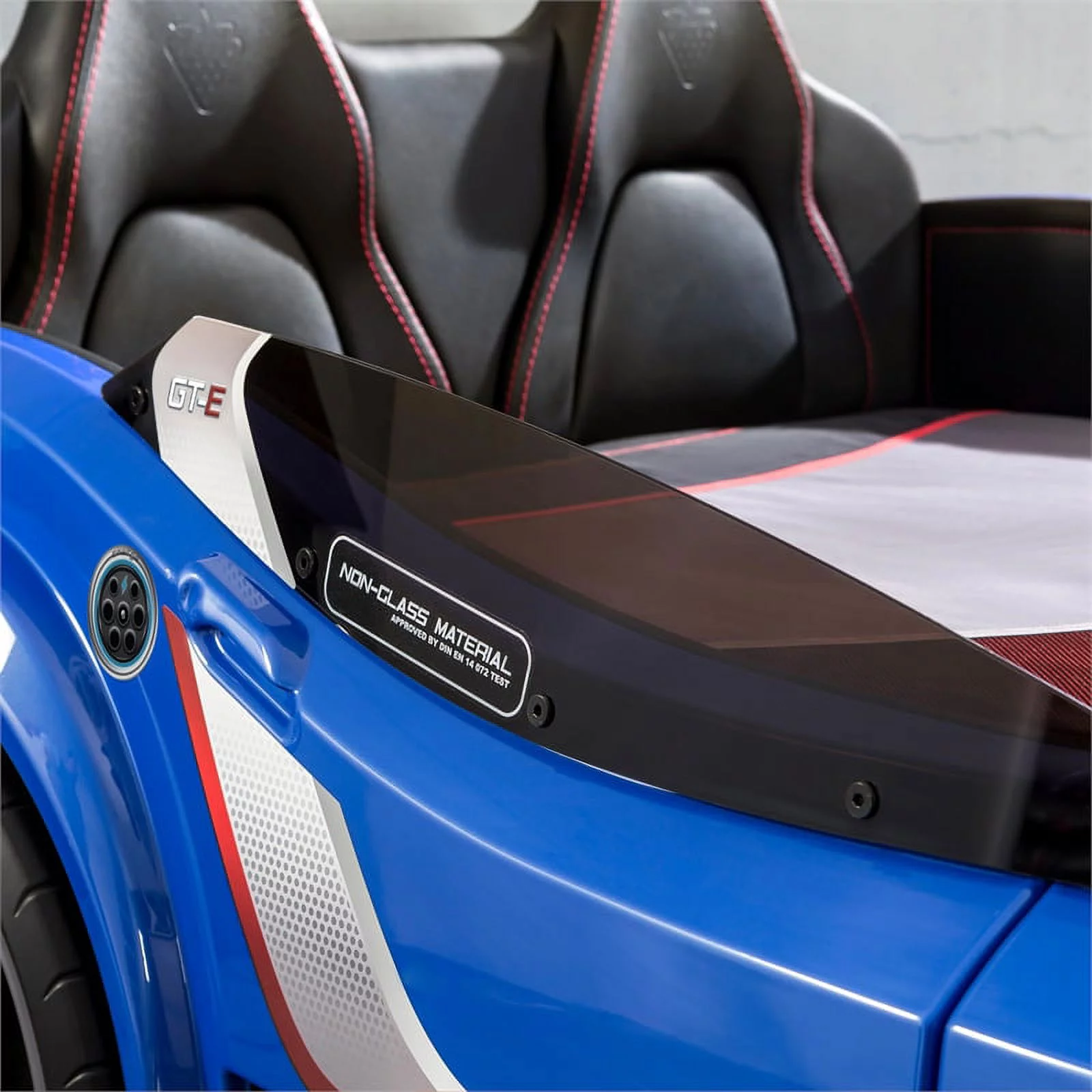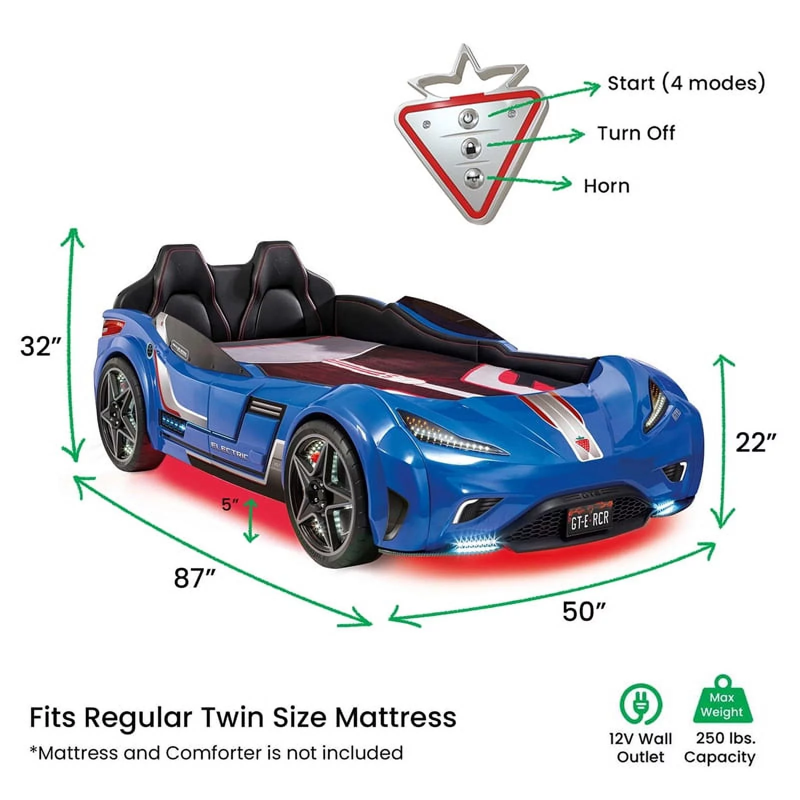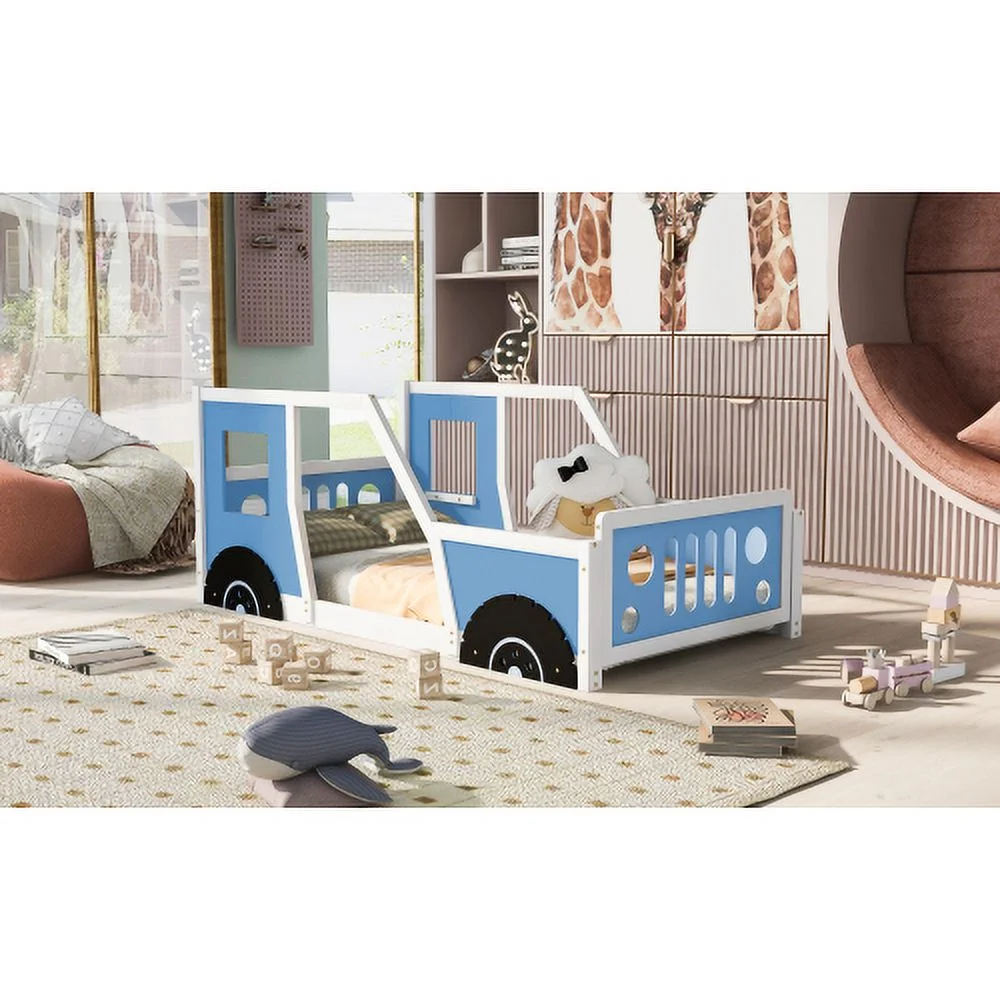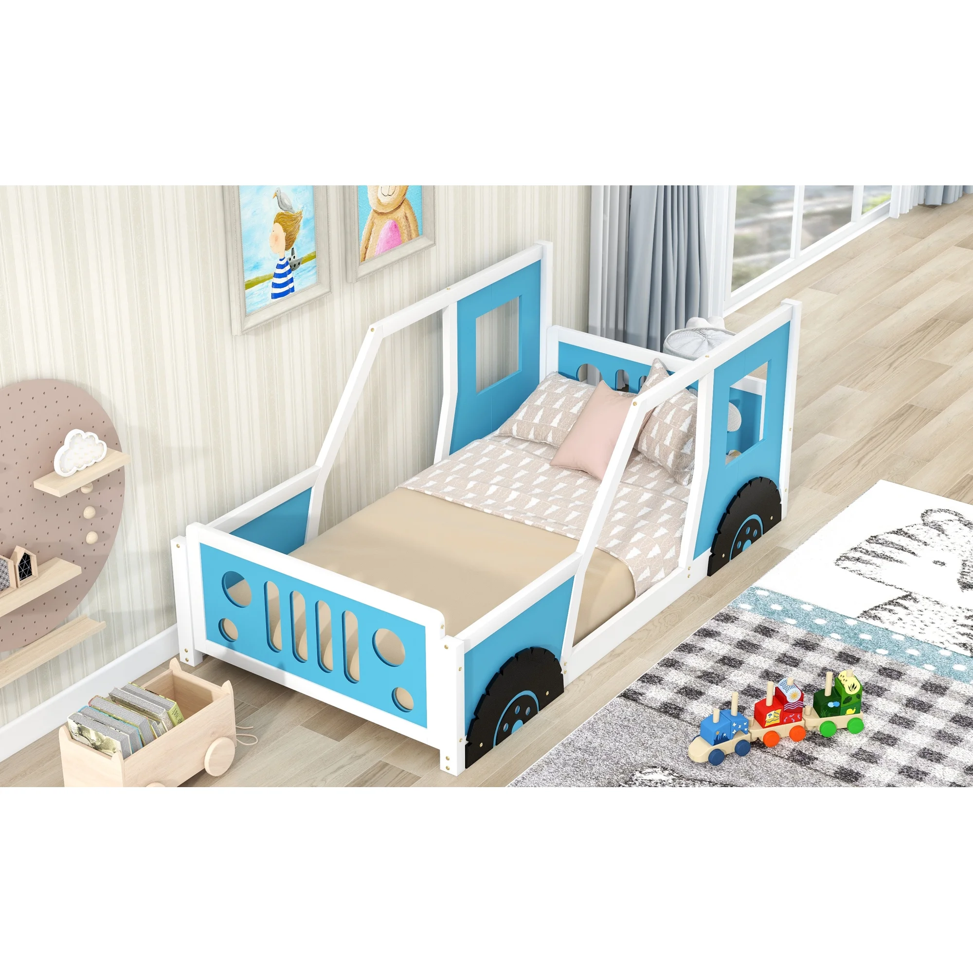 Dawn Whisper Contemporary Classic Car-Shaped Twin Platform Bed with Wheels, Blue