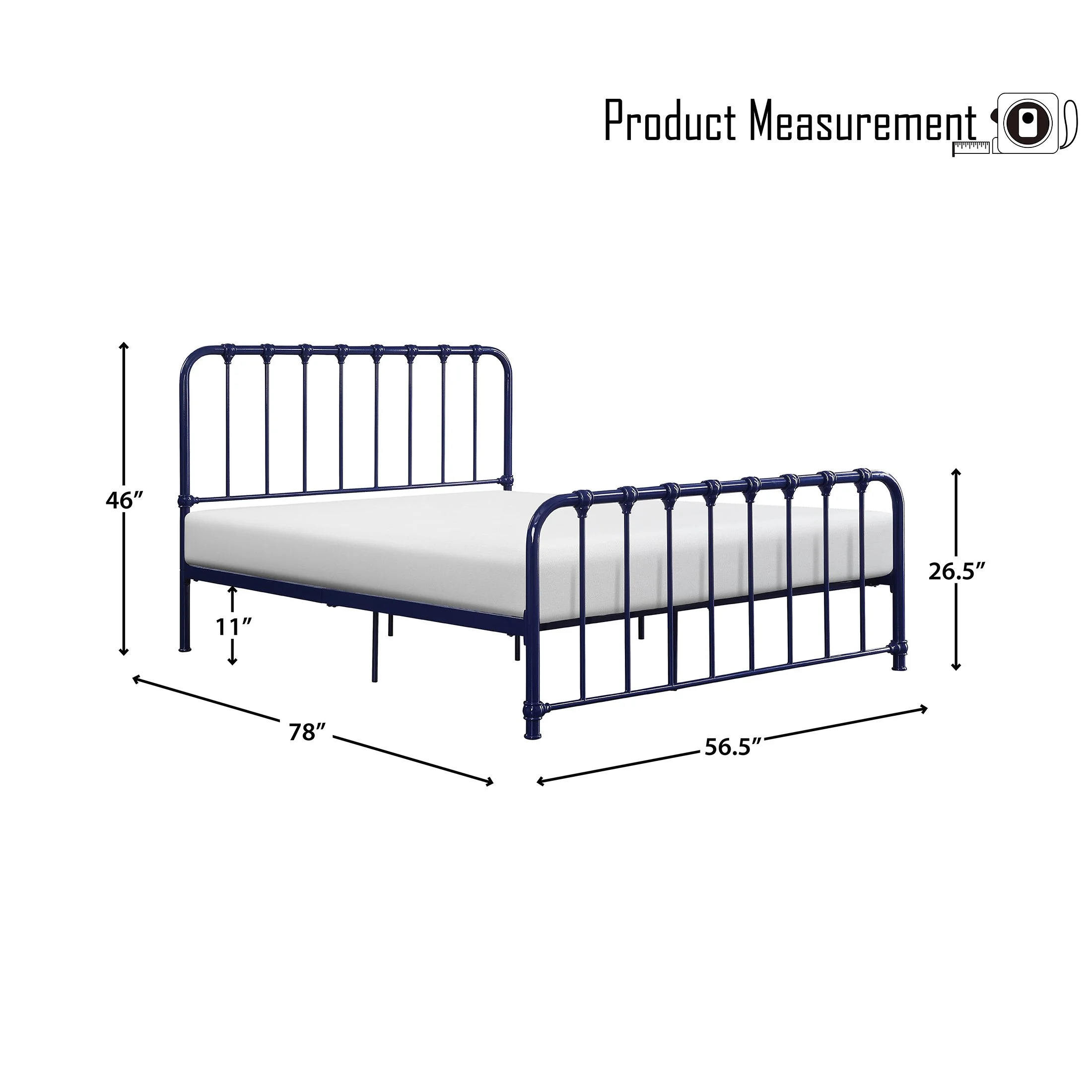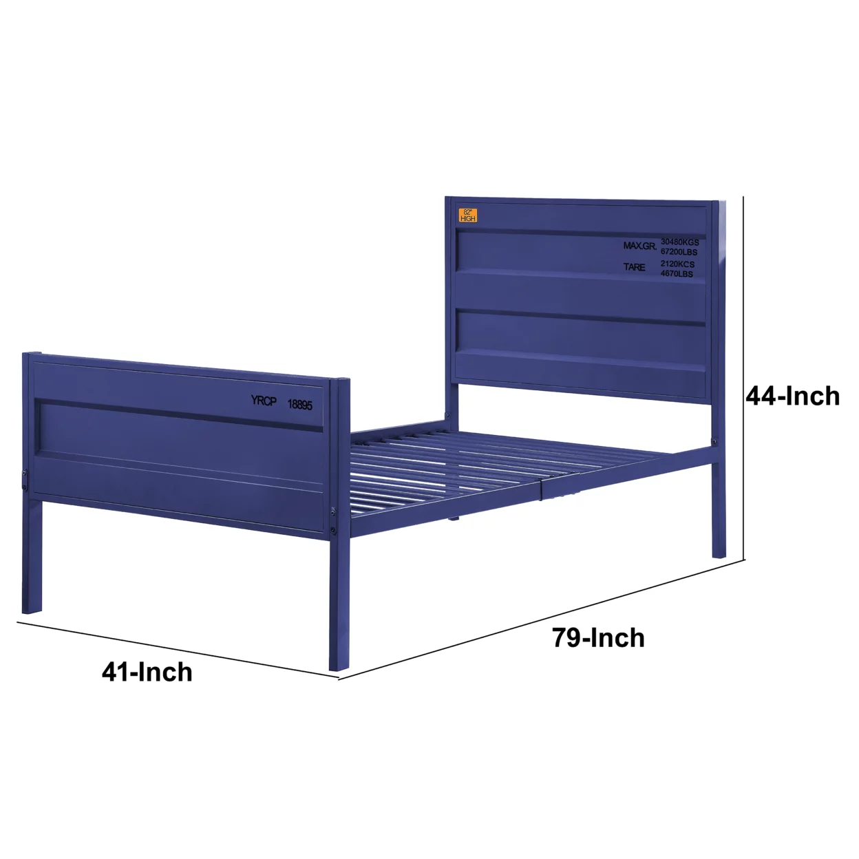 Industrial Style Metal Twin Size Bed with Straight Leg Support, Blue- Saltoro Sherpi
