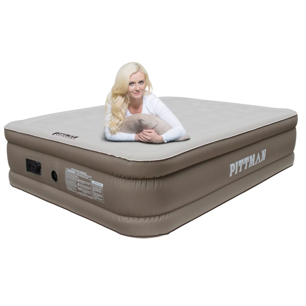 Airbedz Pittman Queen Double High Indoor/Outdoor Ultimate Fabric 16" Air Mattress with Built-In Battery Air Pump