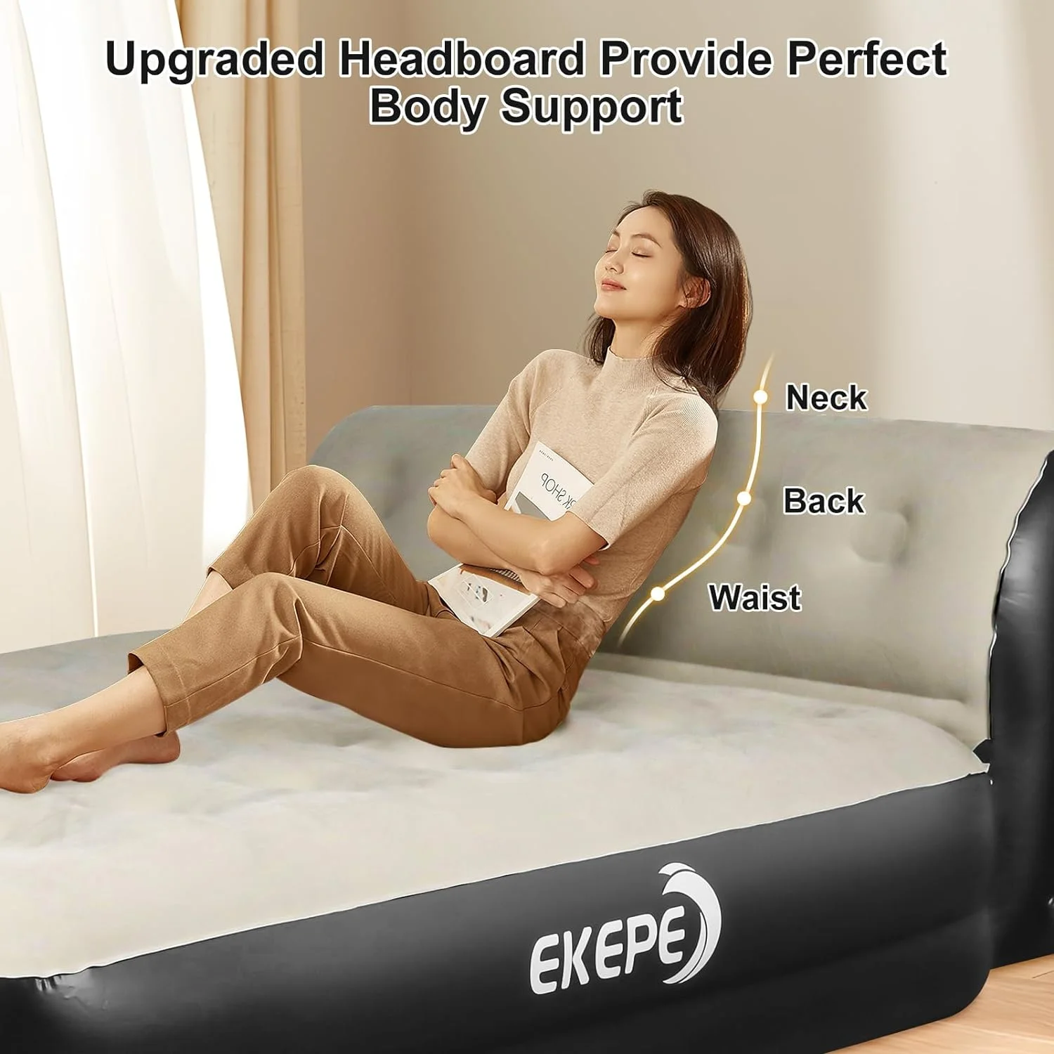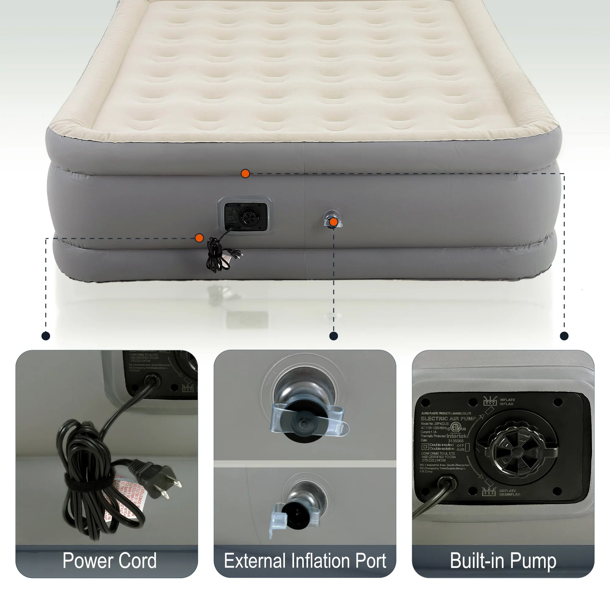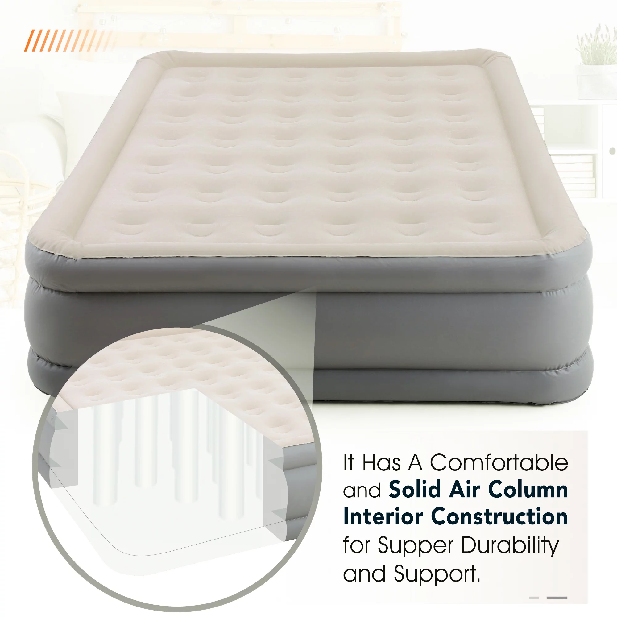 Inflatable Queen Air Mattress with Built-in Pump, 16in Twin Elevated Durable Air Bed 660lb Max, Grey