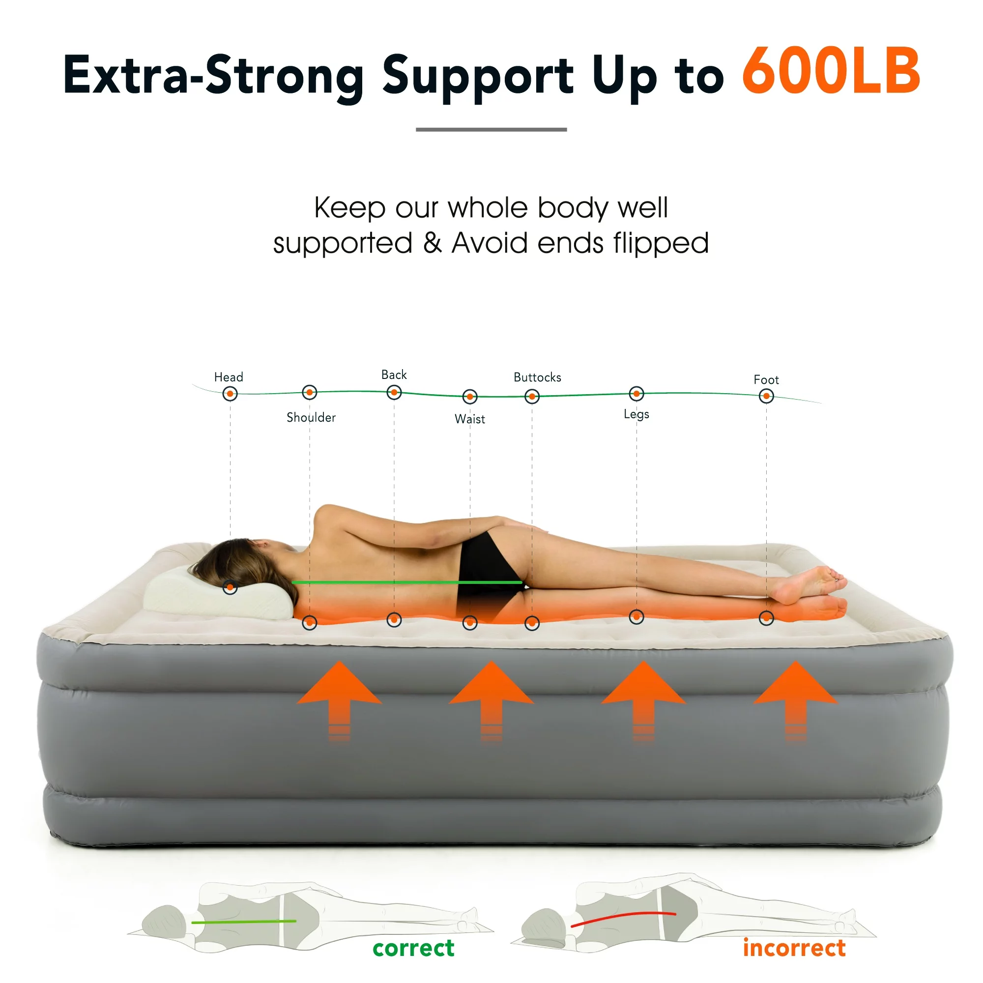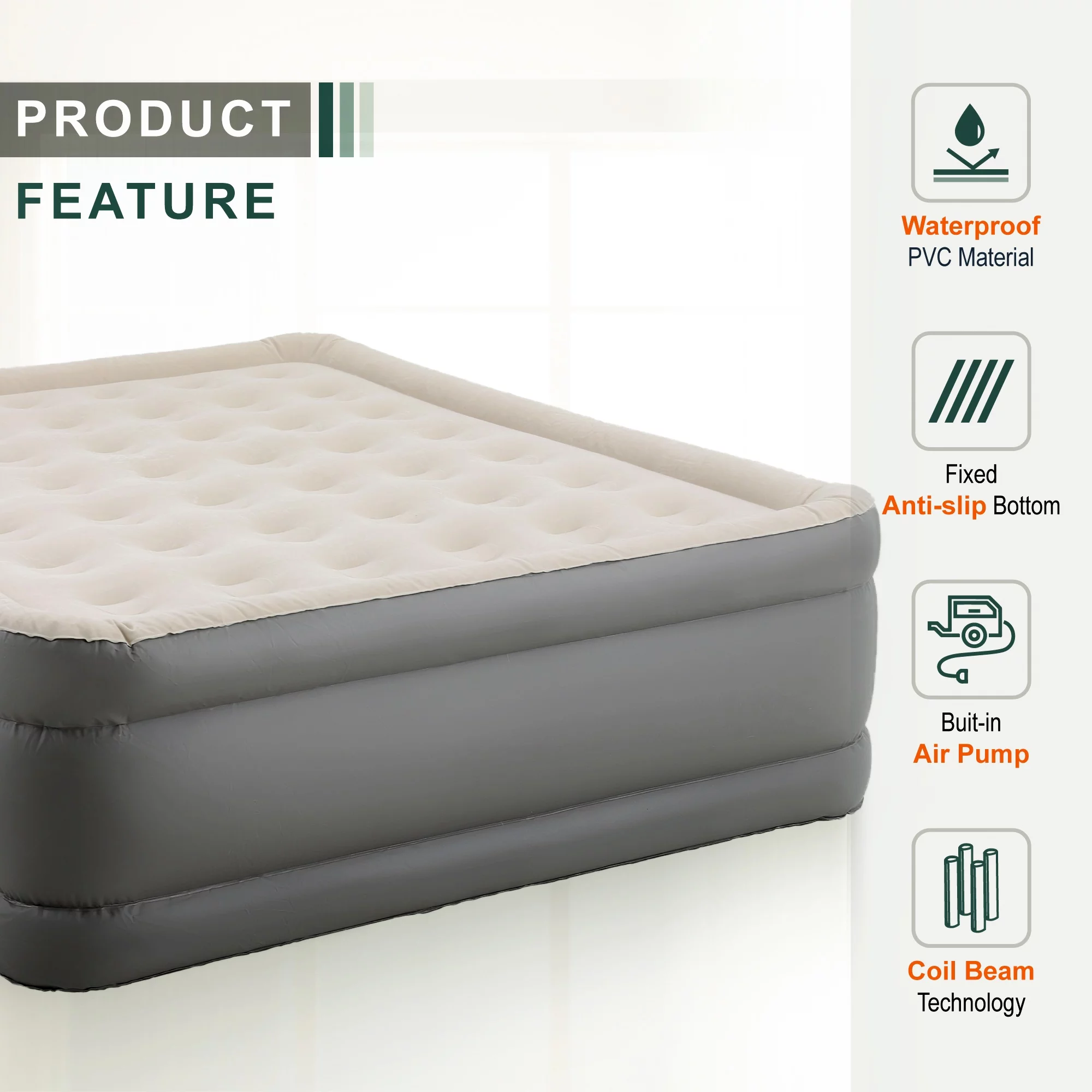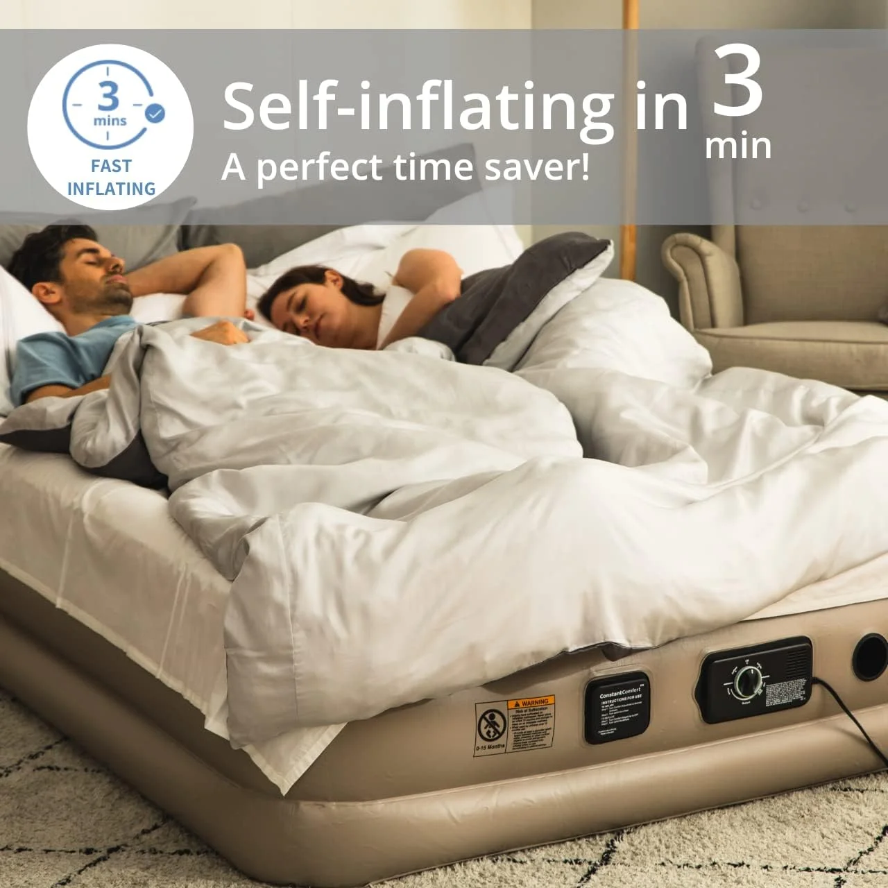 Elevated Air Mattress Queen with Built in Pump 3Mins Auto Fast Inflate & Deflate