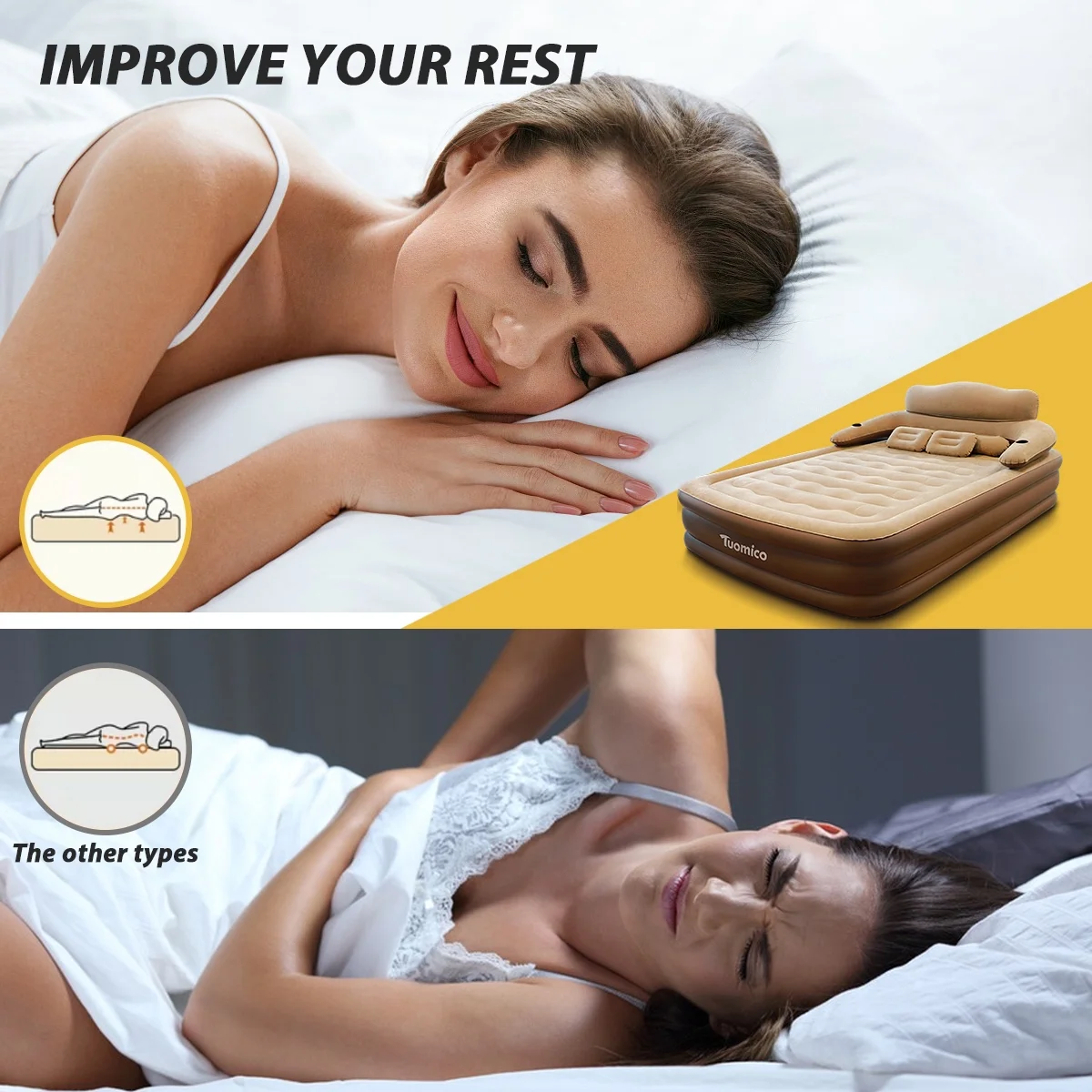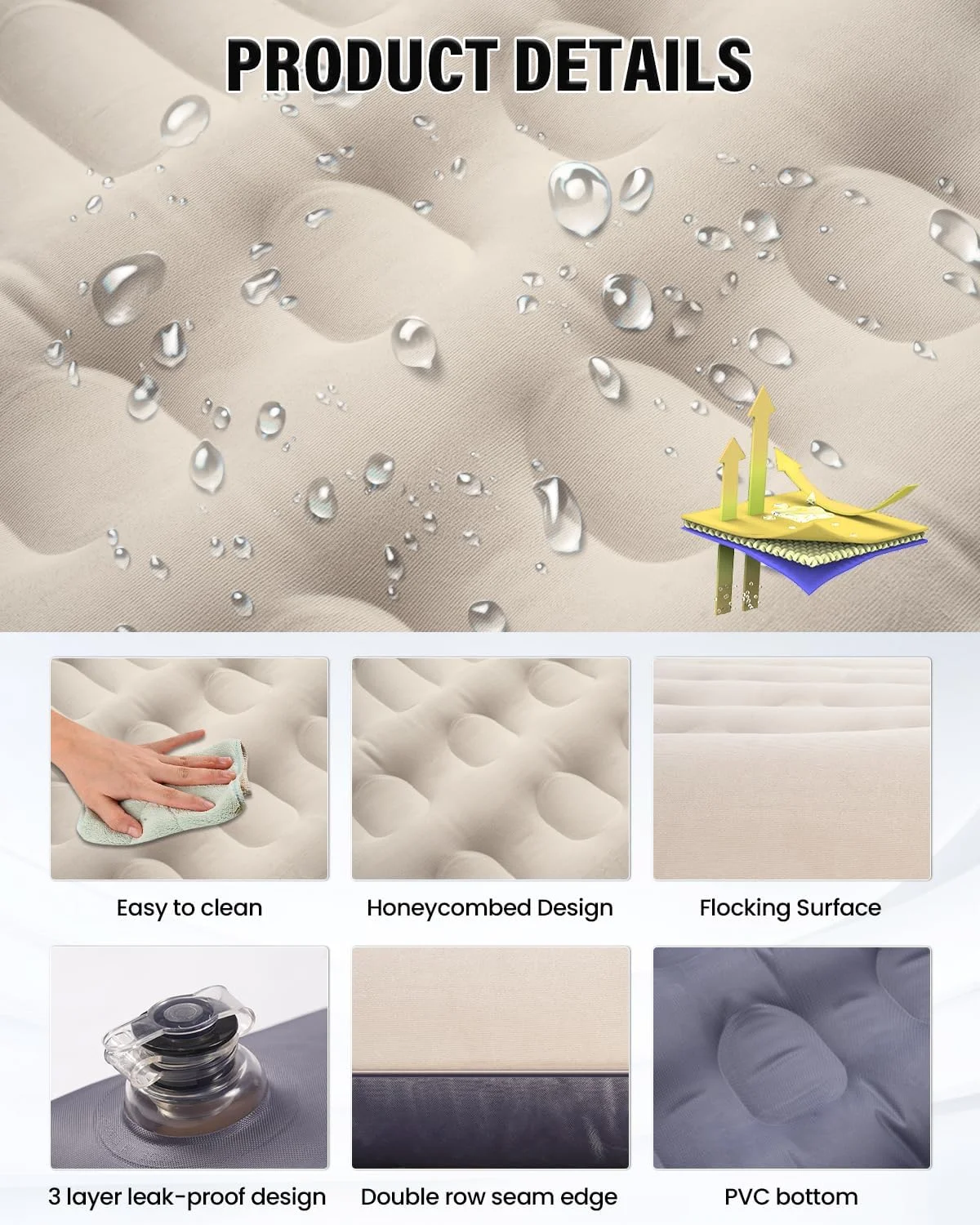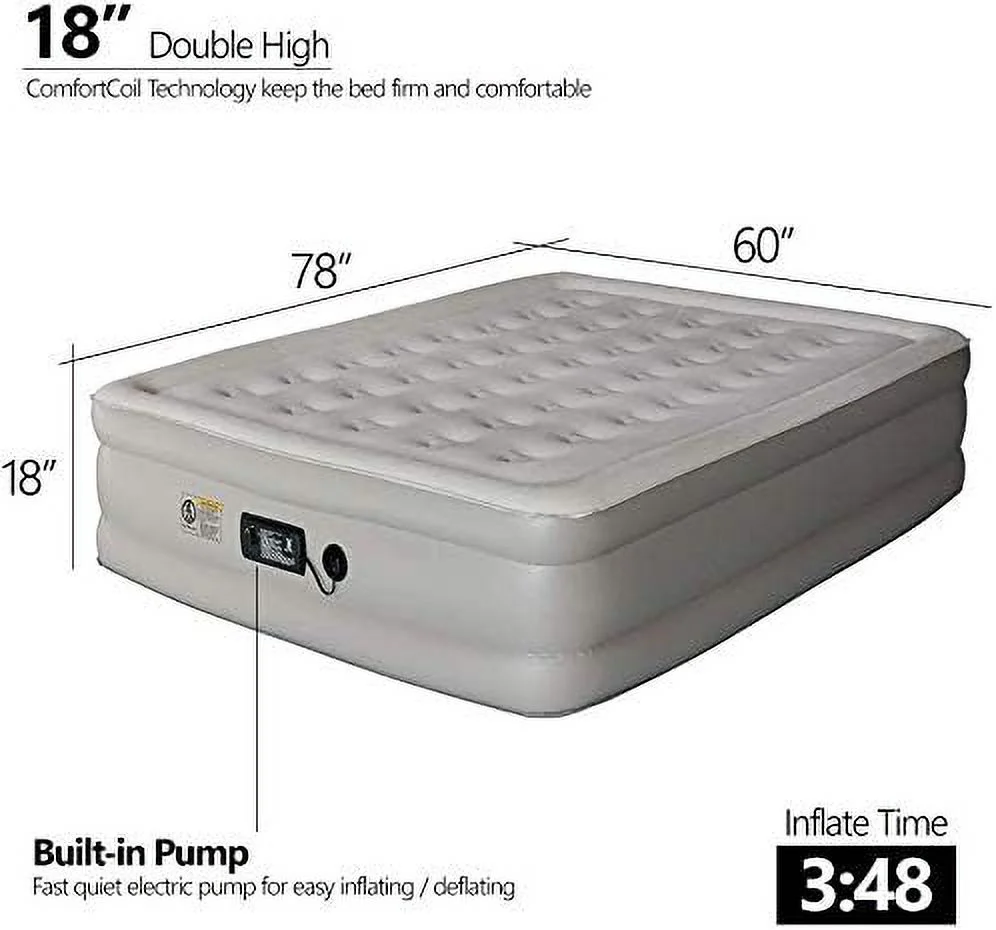 Elevated Air Mattress Queen with Built in Pump 3Mins Auto Fast Inflate & Deflate