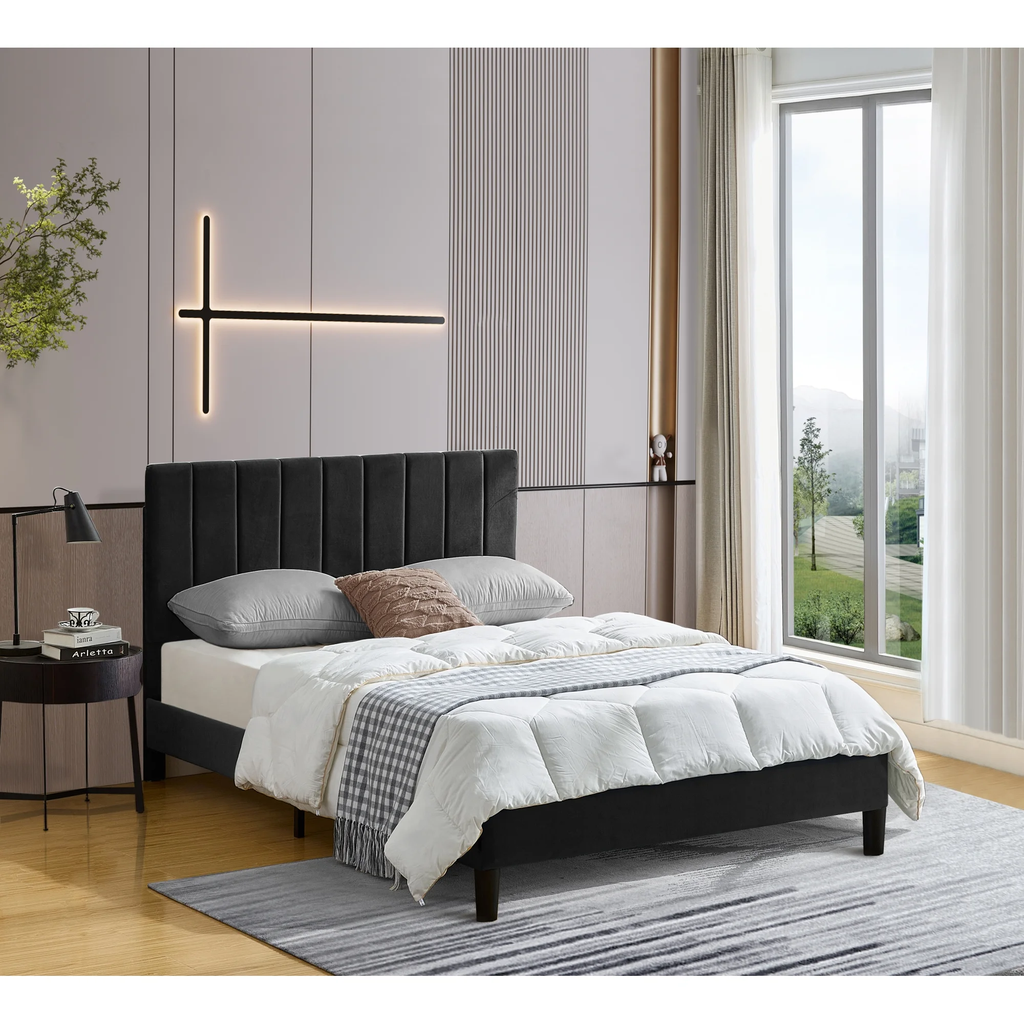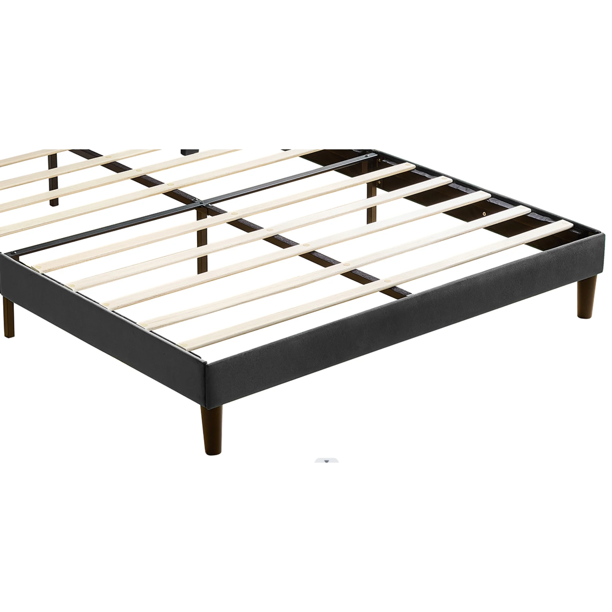Queen Size Black Platform Bed with Upholstered Headboard, Heavy Duty Mattress Foundation, Easy Assembly