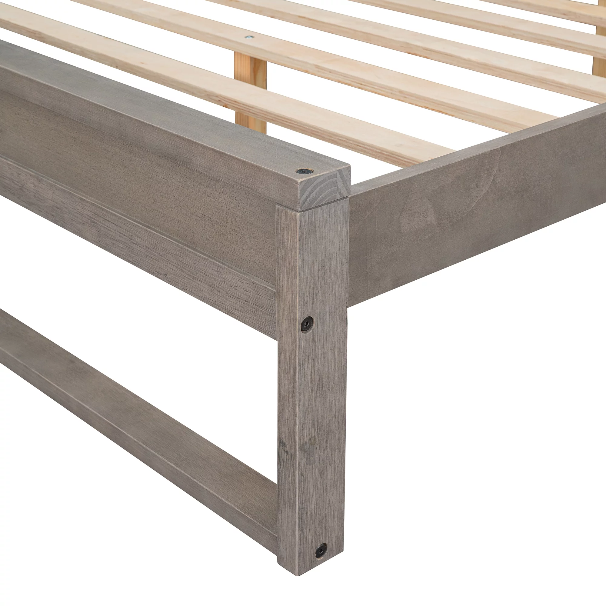 CoSoTower Queen Size Wood Platform Bed With Headboard And Wooden Slat Support, Oak