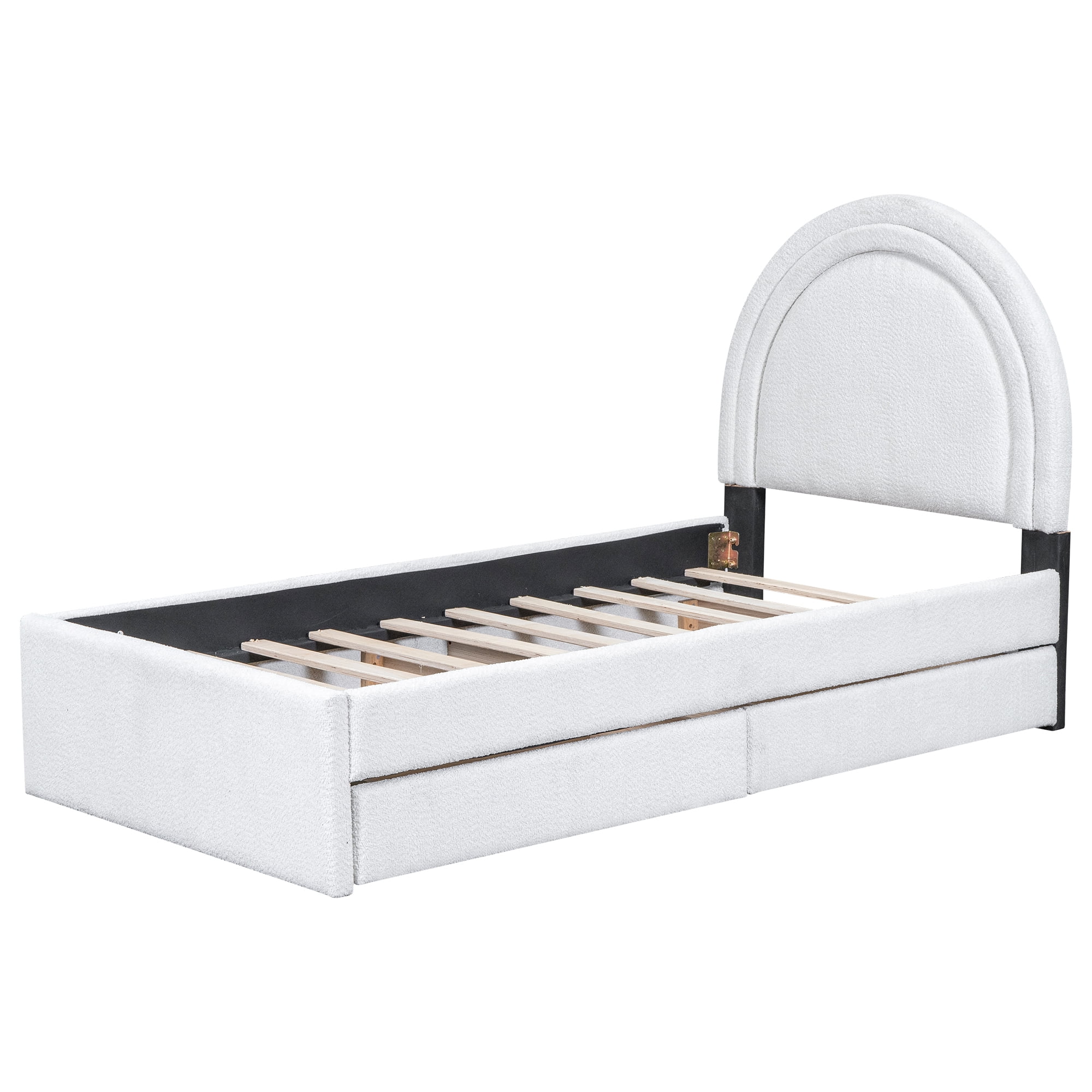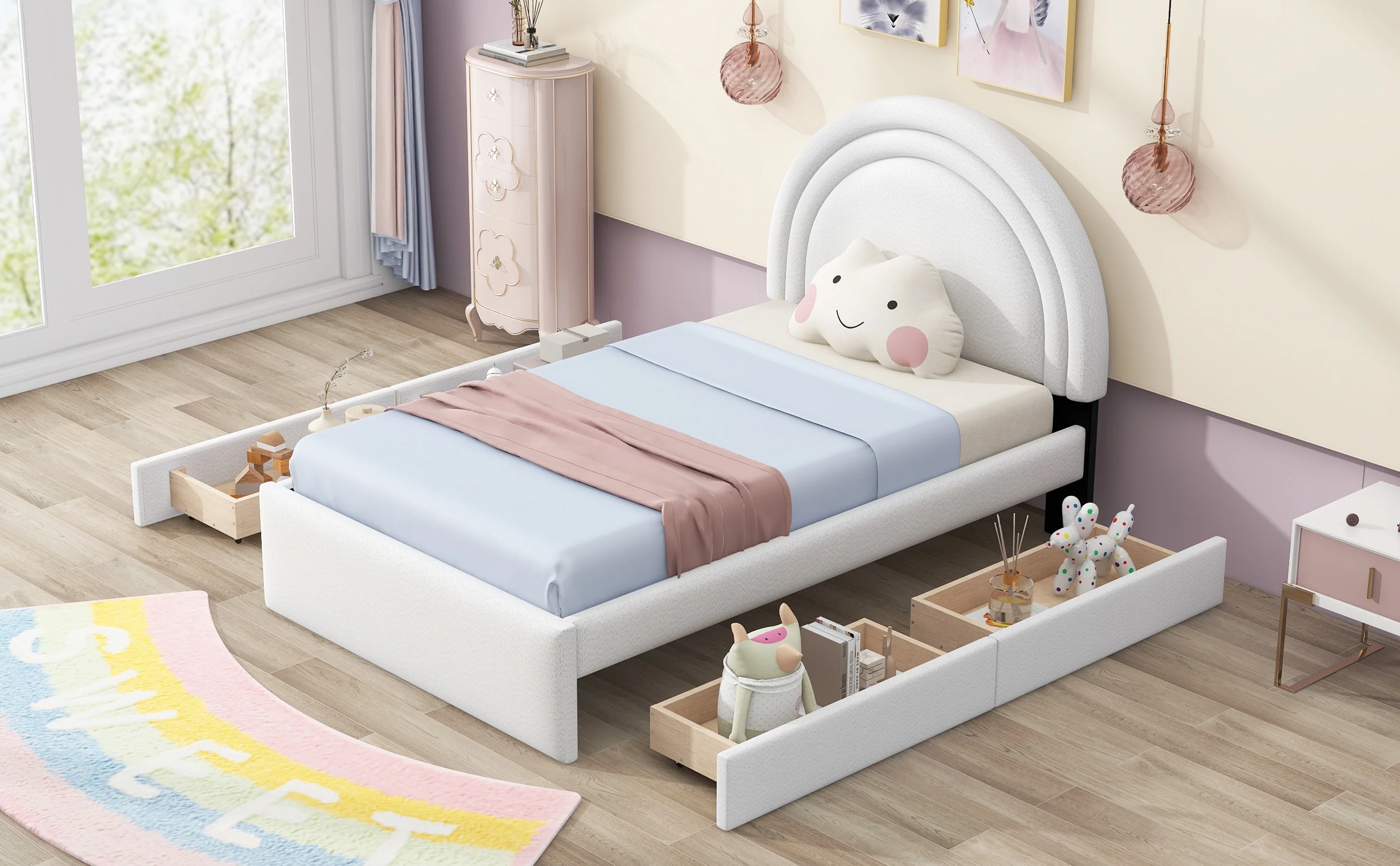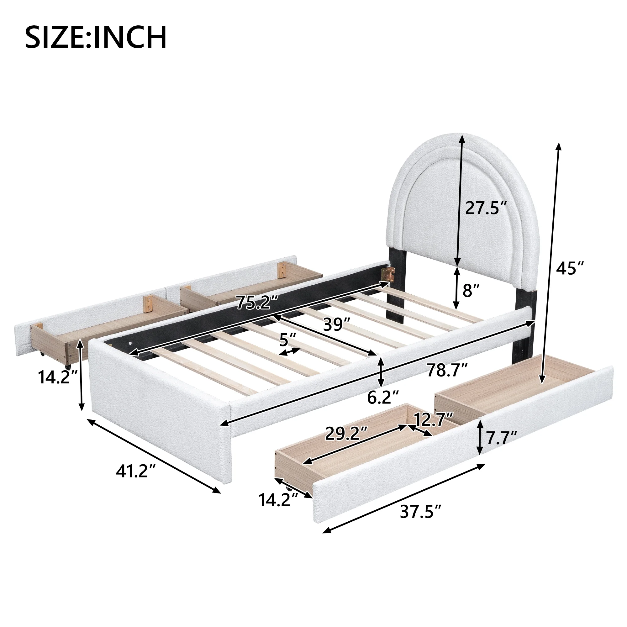 CoSoTower Teddy Upholstered Platform Bed with Four Drawers, Twin, White