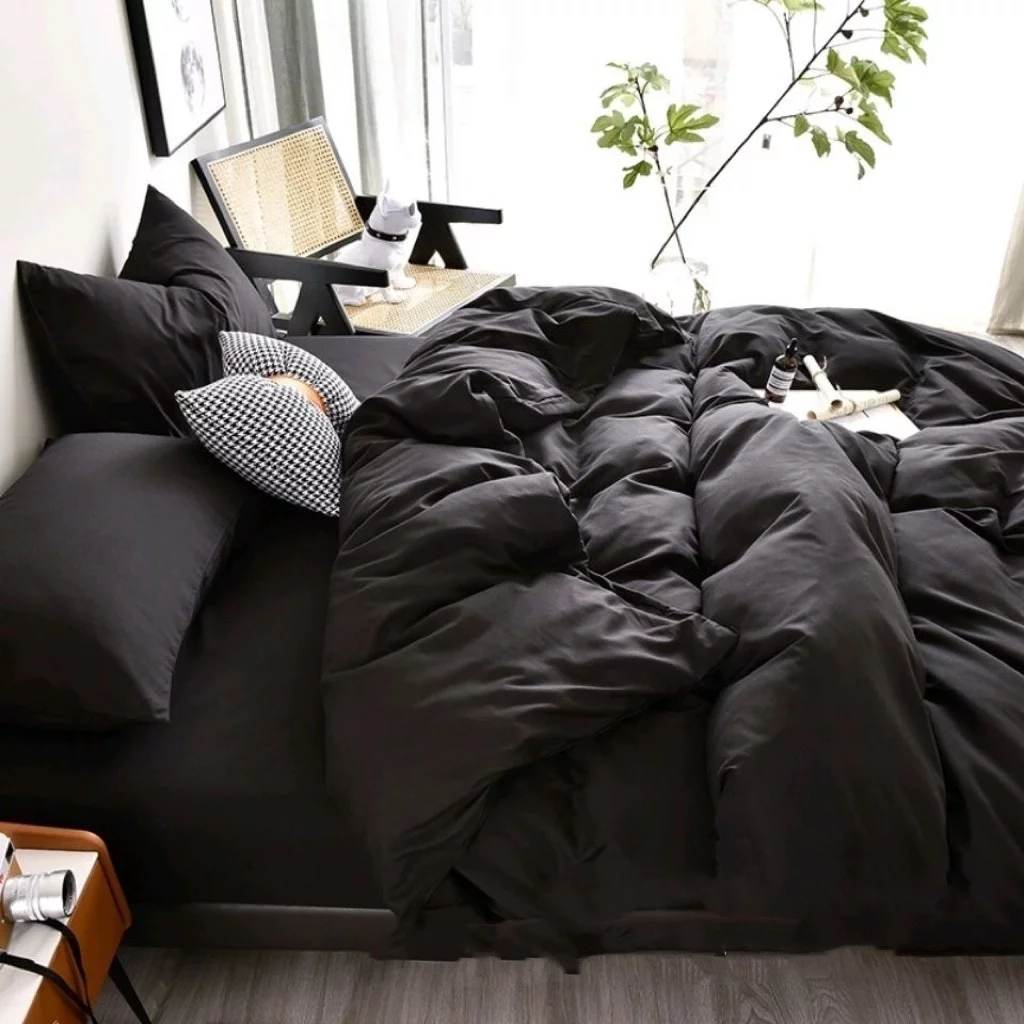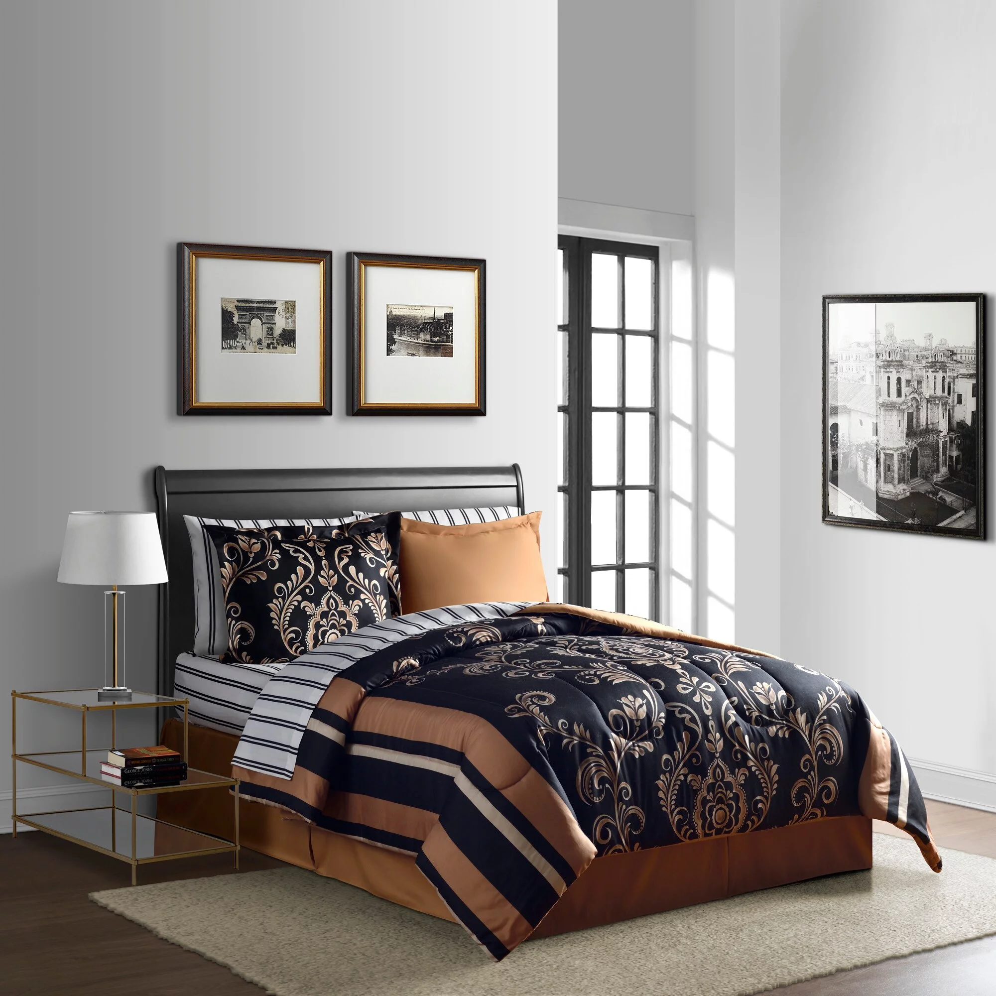 DBOZE Cotton Blend 5 Pieces Bed In A Bag Down Alternative Comforter Sets, Black, King/Cal King