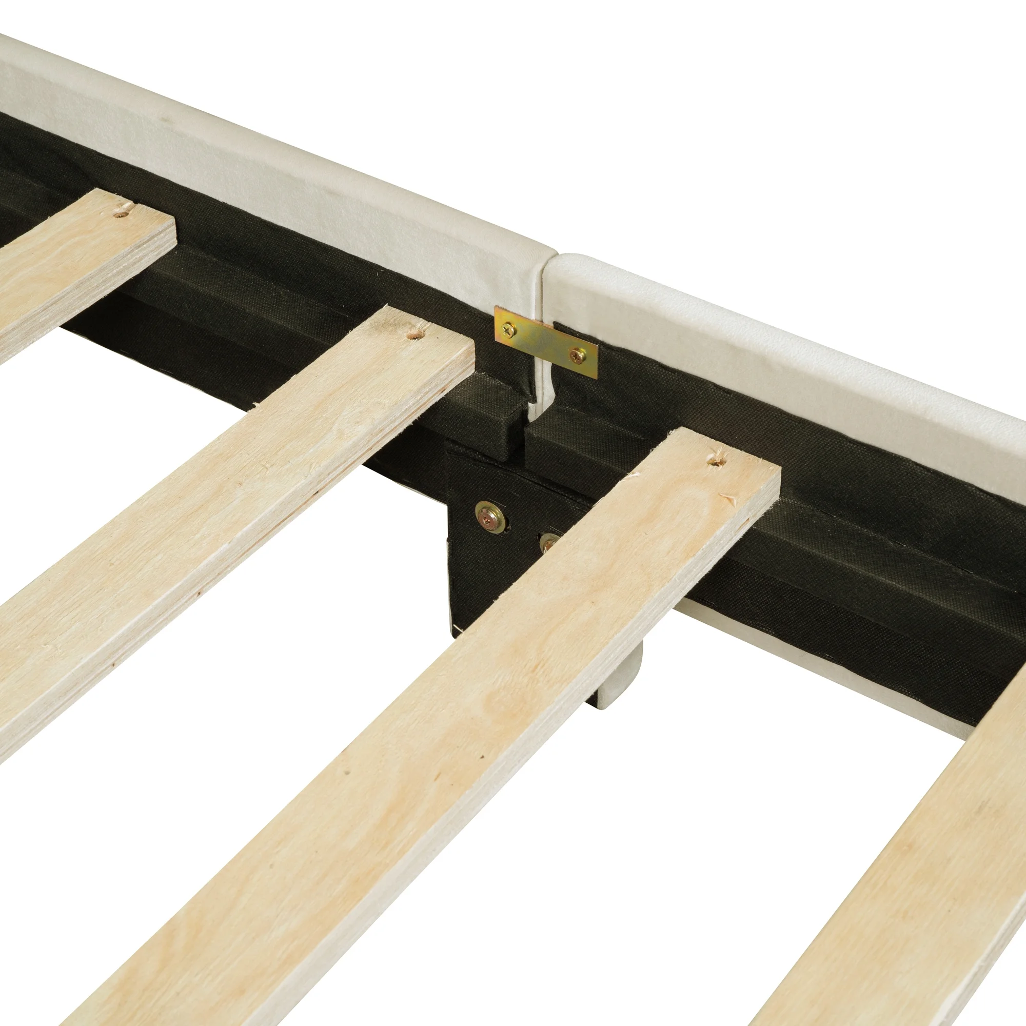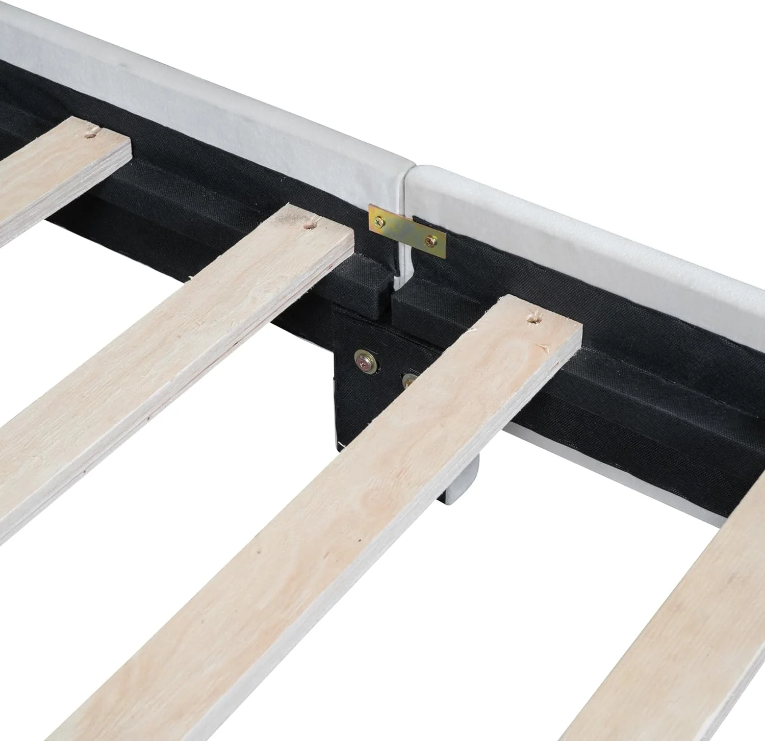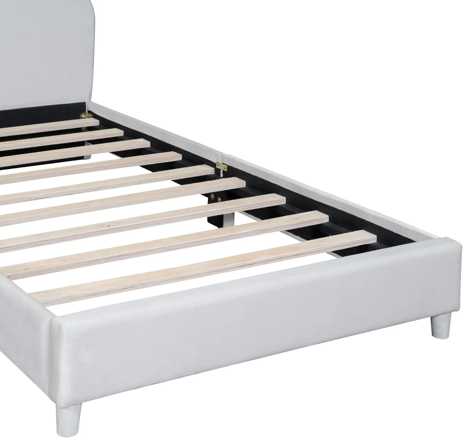 Mixoy Upholstered Linen Platform Bed Frame with Curved Headboard,Wood Slat Support Light Grey - King