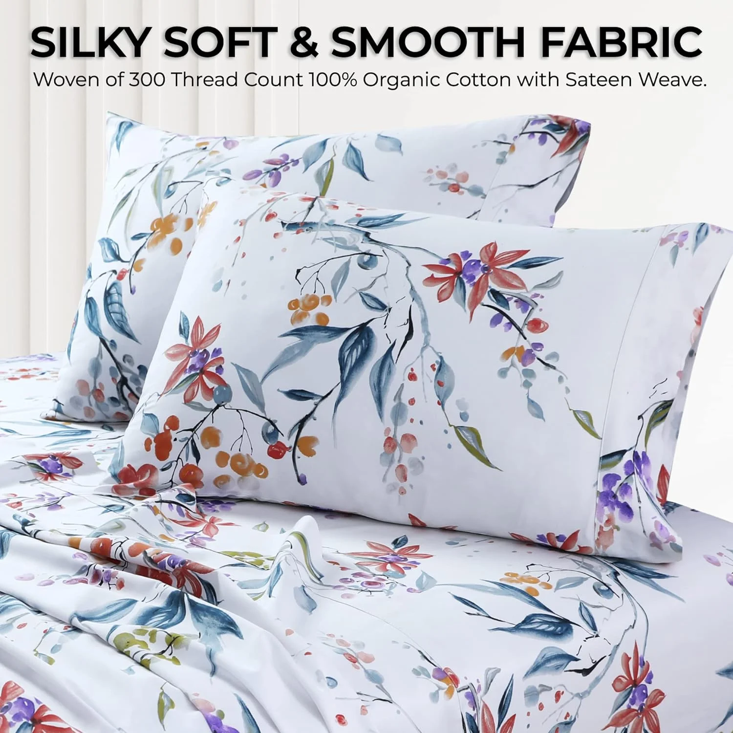 Estella 300 Thread Count Organic Cotton Deep Pocket Bed Sheet Set, Fits Up To 19 Inch Mattress - King, Multicolor