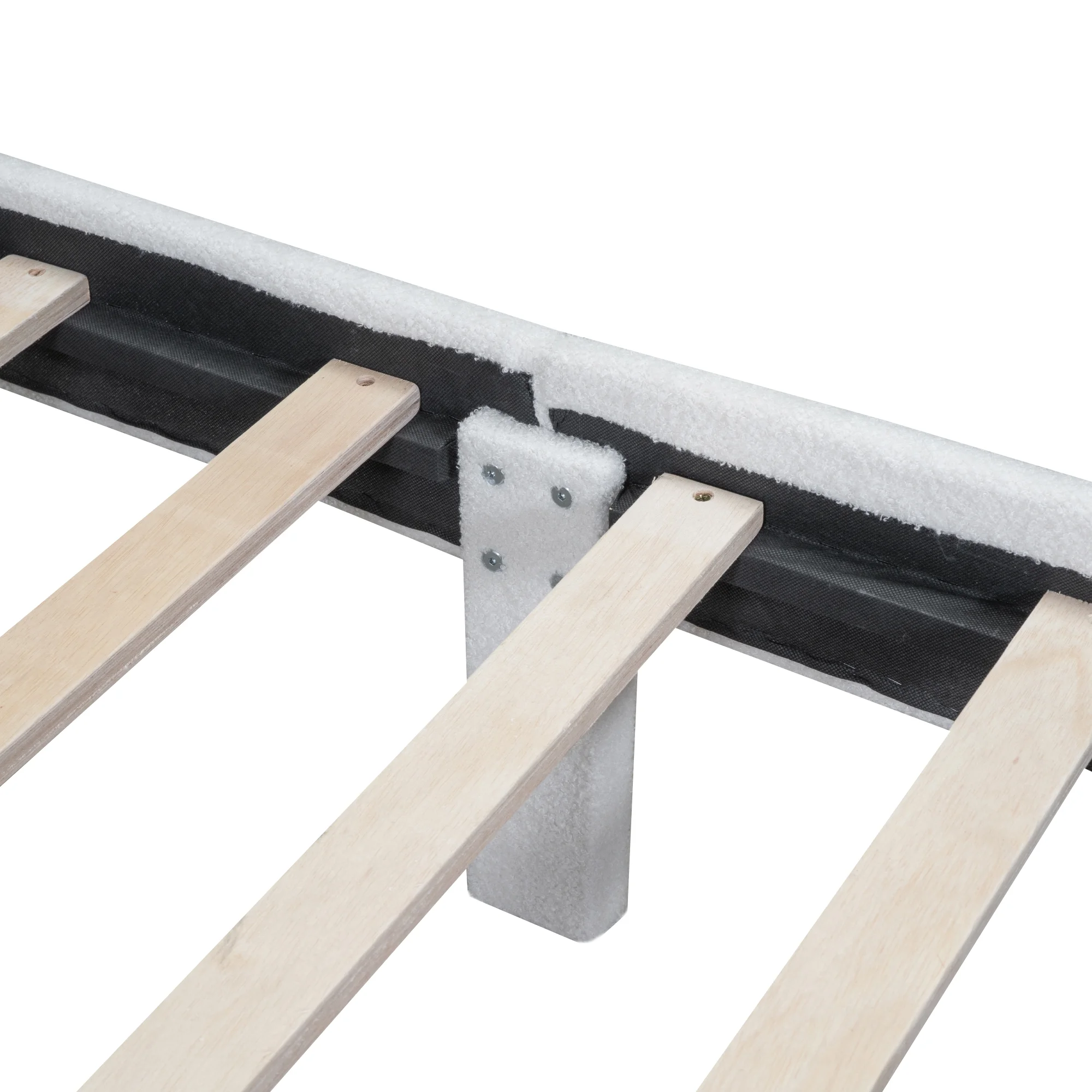 Teddy Fleece Queen Size Upholstered Platform Bed with Nightstand, White