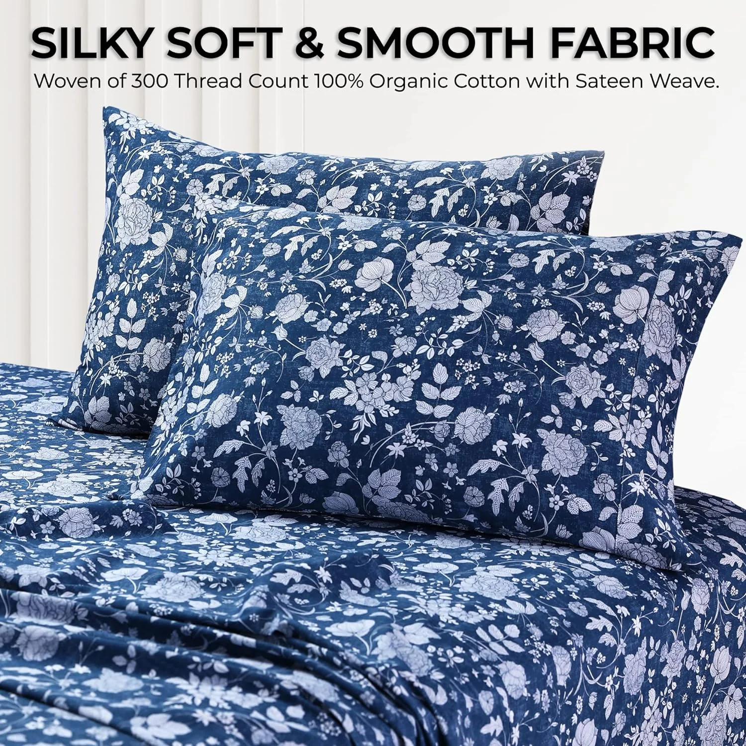 Kate 300 Thread Count Organic Cotton Deep Pocket Bed Sheet Set, Fits Up To 19 Inch Mattress - King, Dark Blue