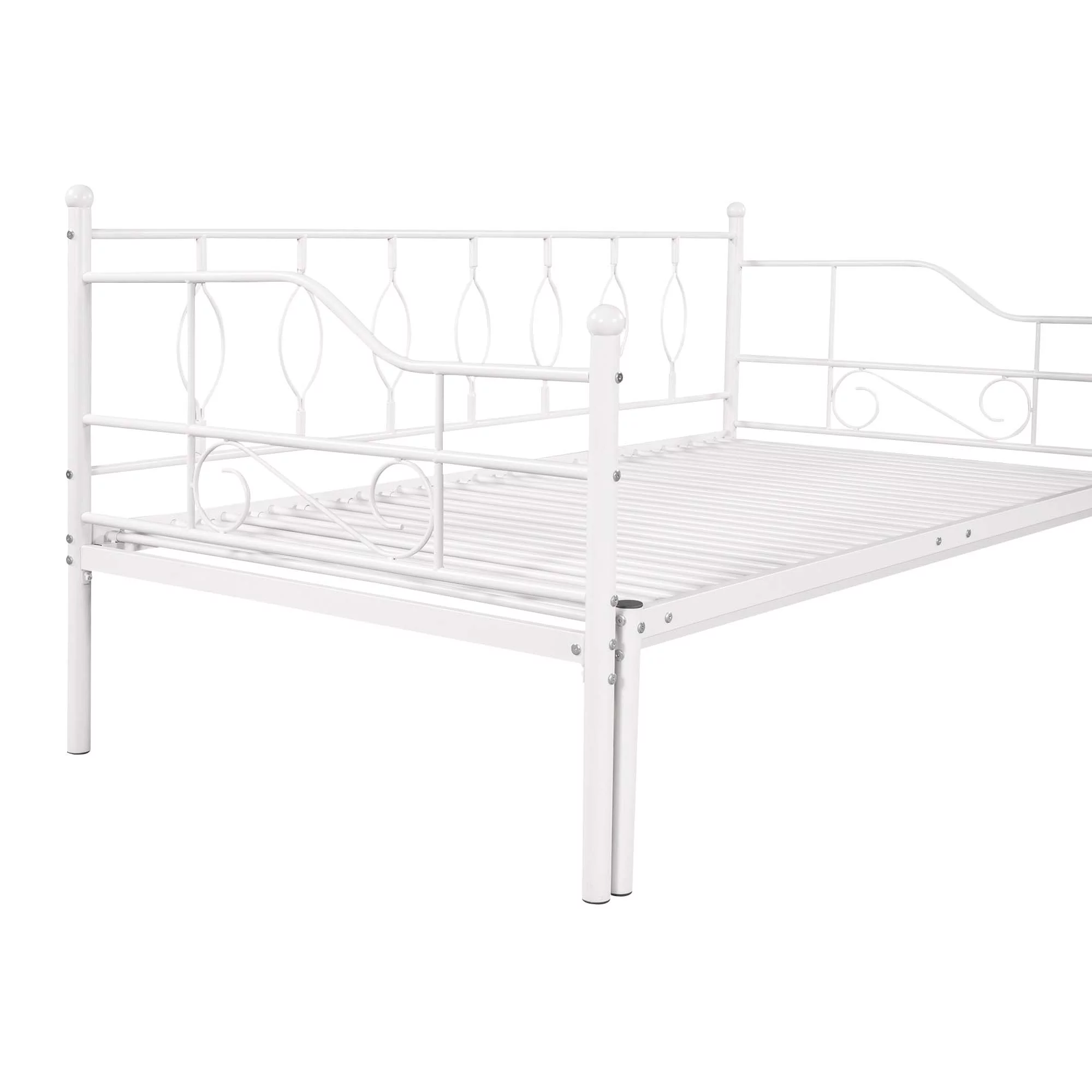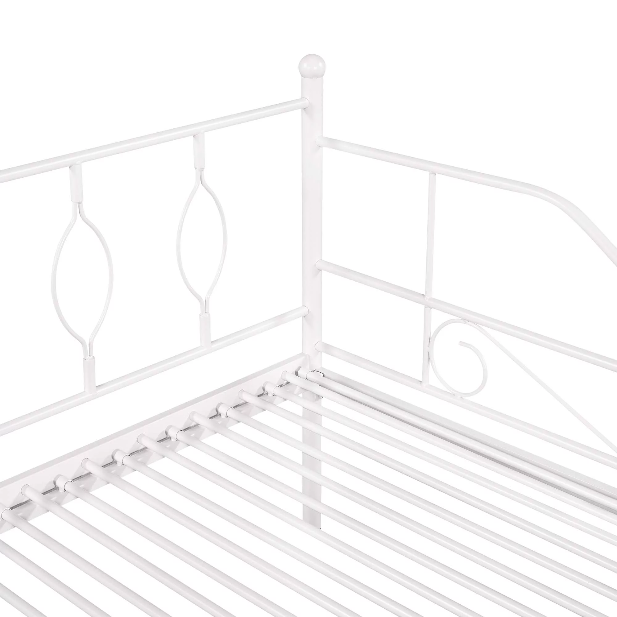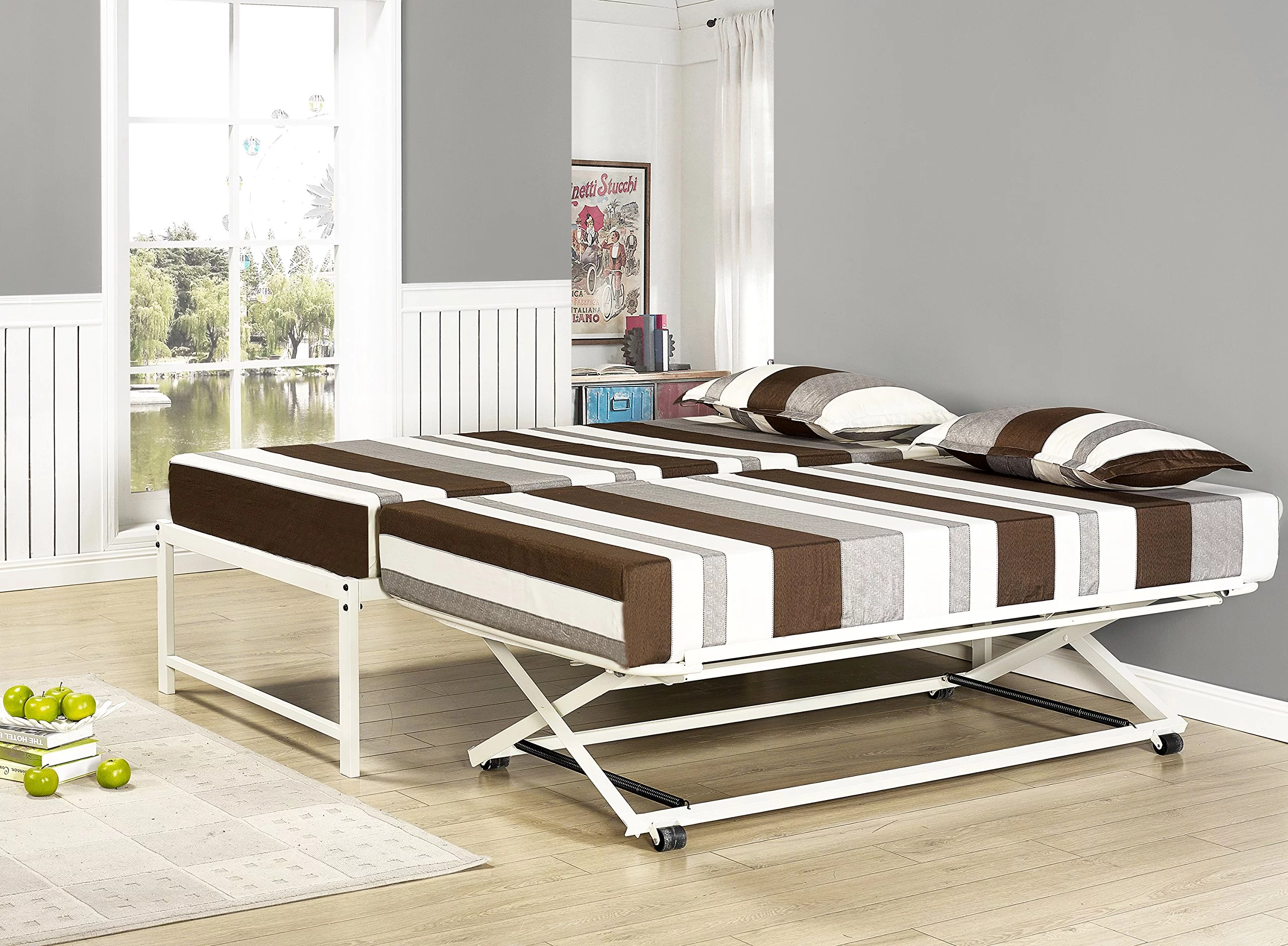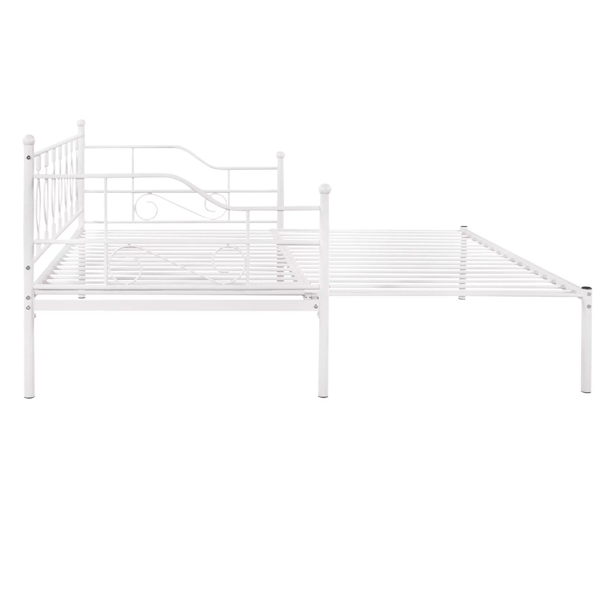Kings Brand Furniture Twin Size White Metal Platform Bed with Pop-up Trundle