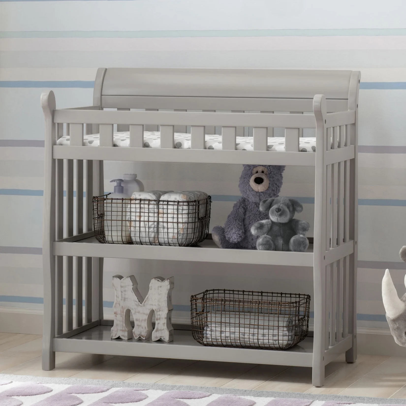 Delta Children Flat Top Changing Table with Casters, Greenguard Gold Certified, Grey