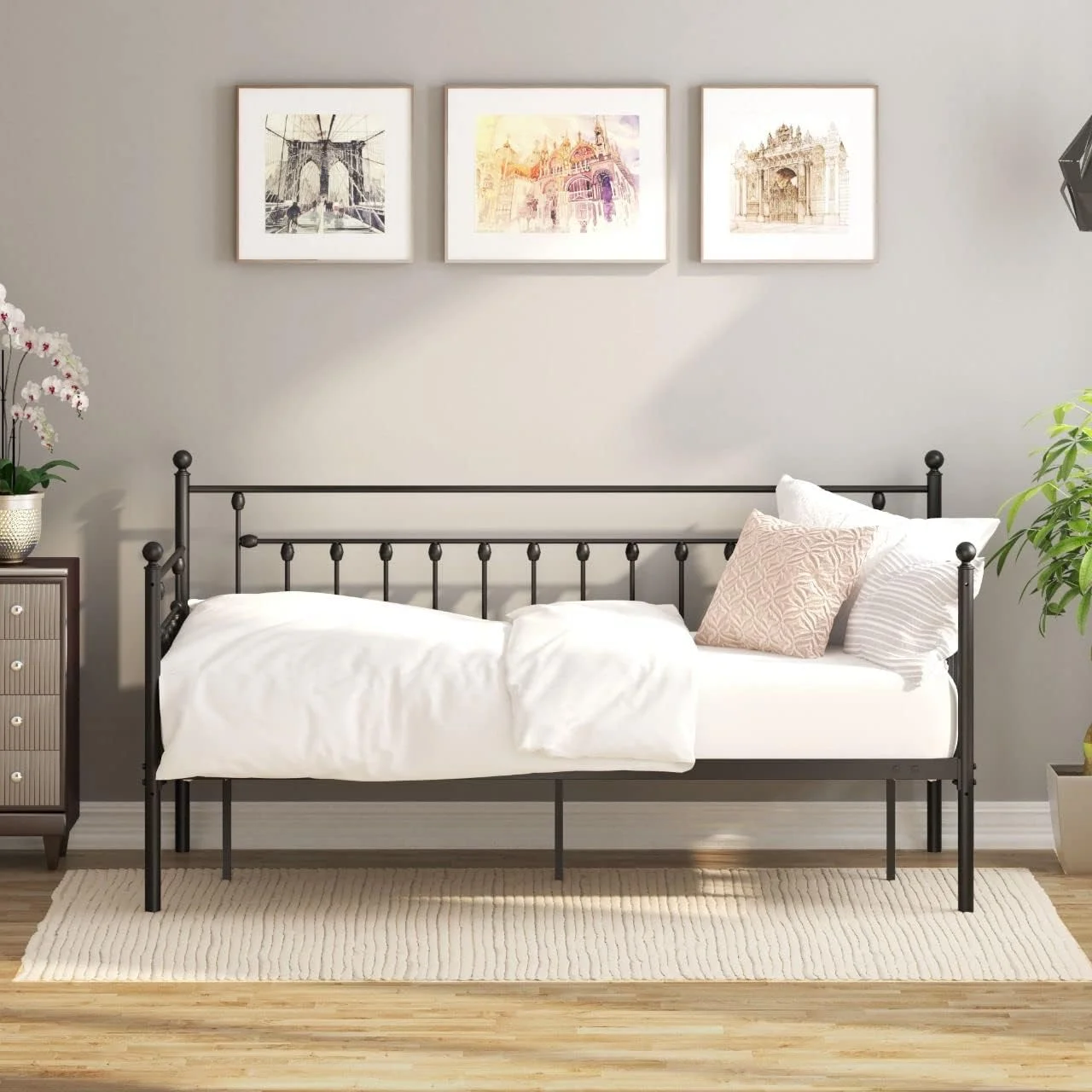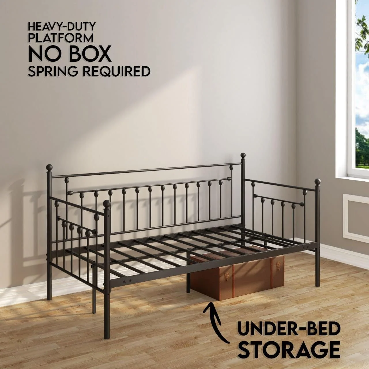Victorian Black Metal Daybed Without Trundle/Sleeping Bench Futon Loft Bed Sofa Bedroom Living Room/ Mattress/Heavy Duty
