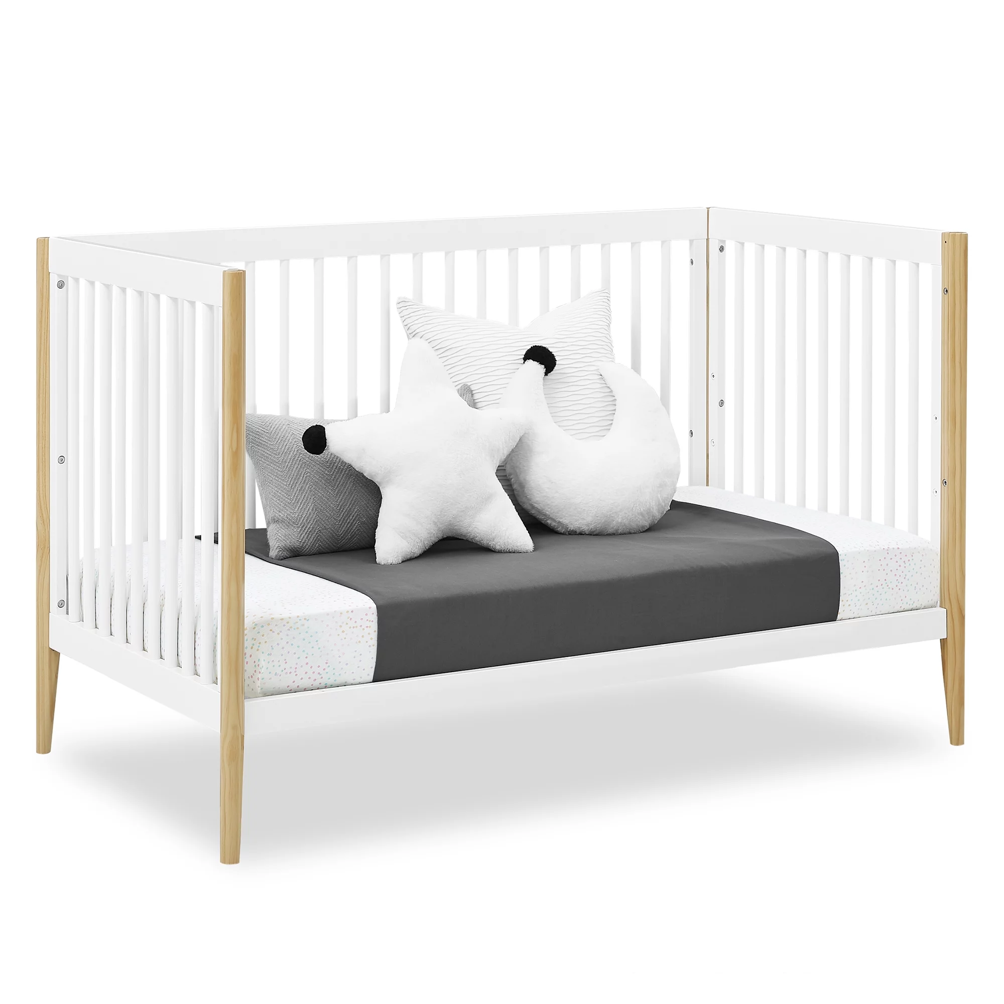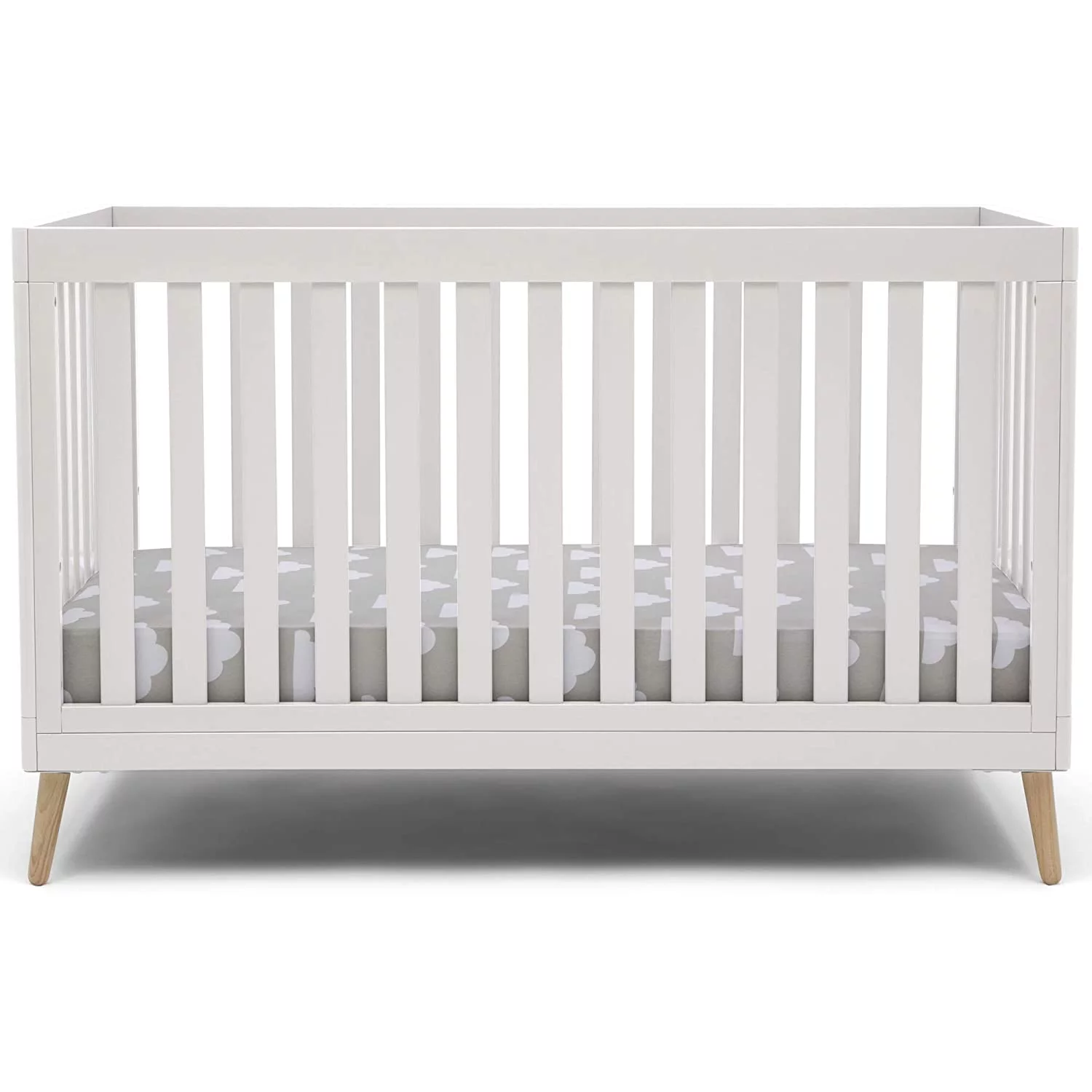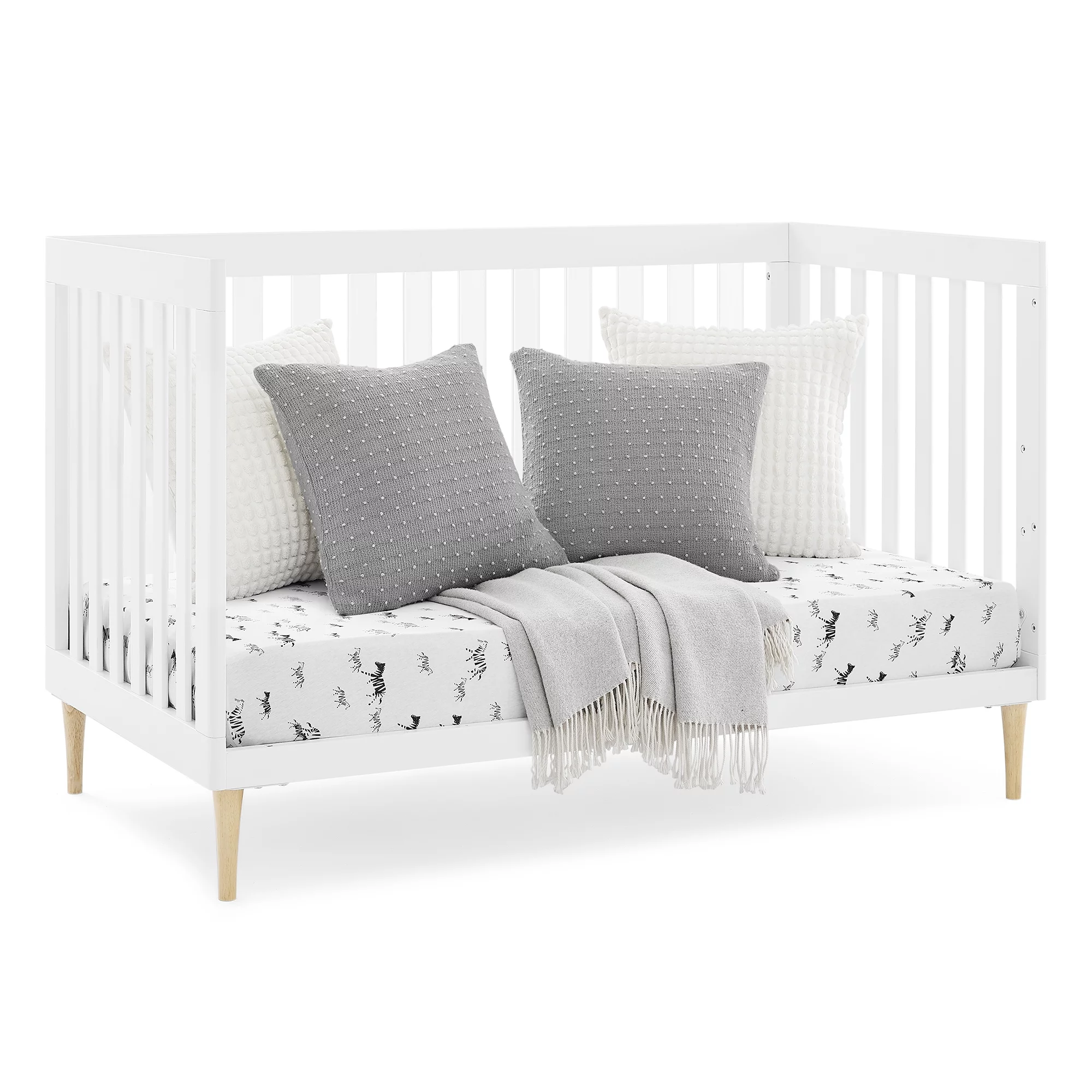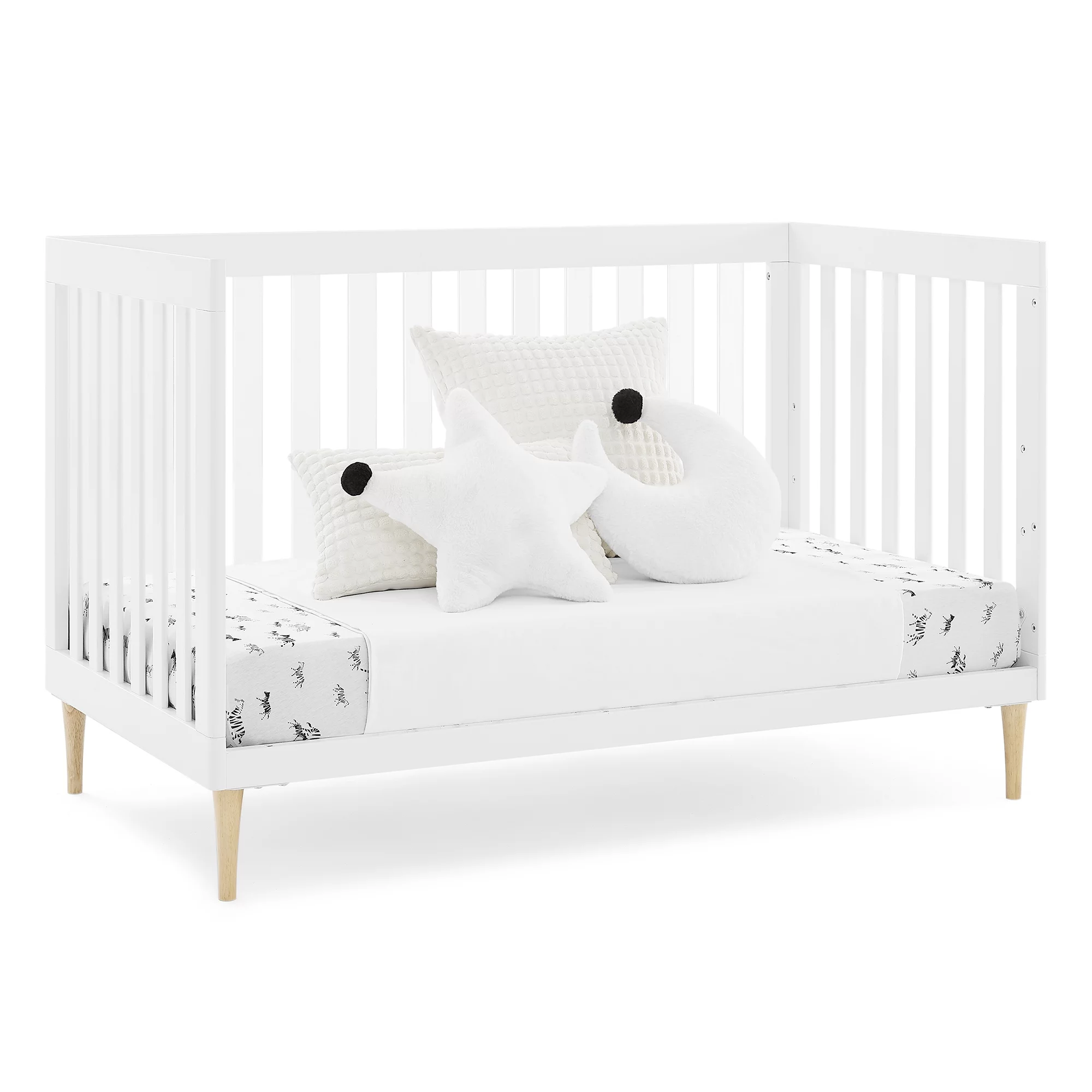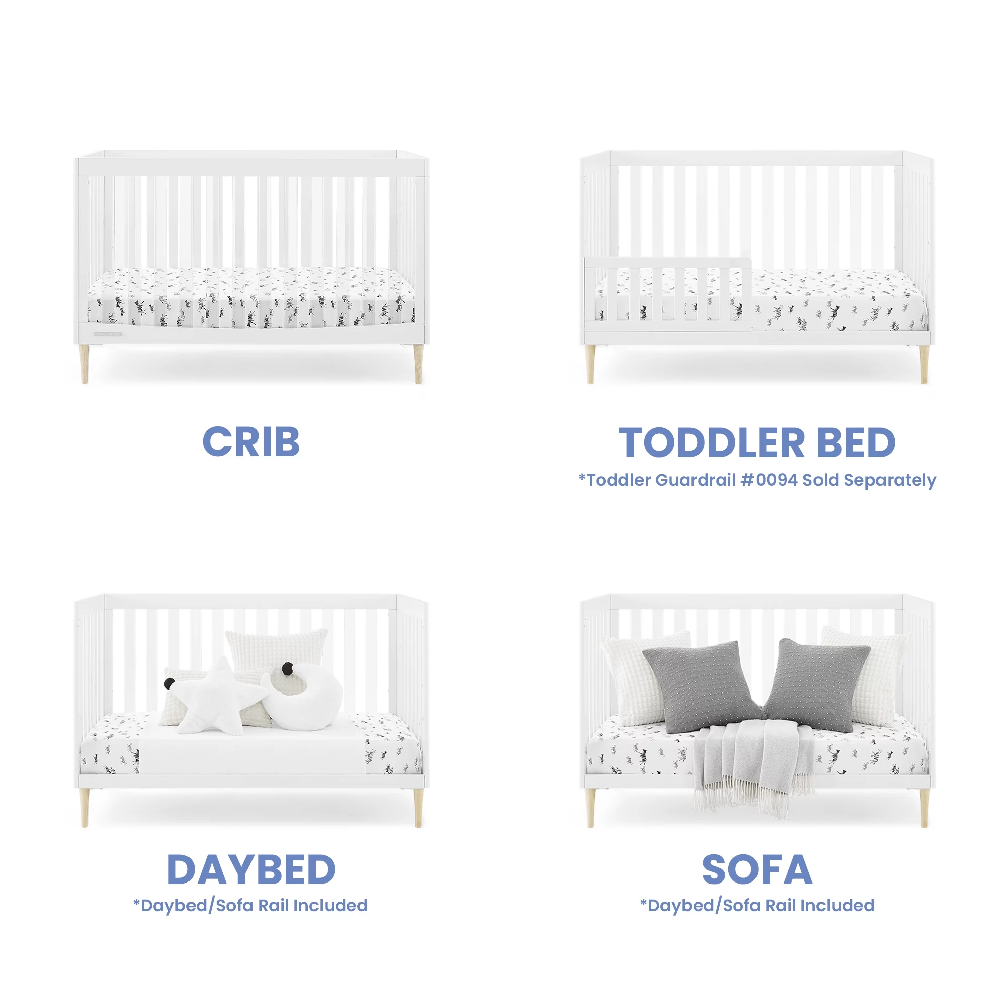 Delta Children Essex 4-in-1 Convertible Baby Crib, Bianca White/Natural Legs