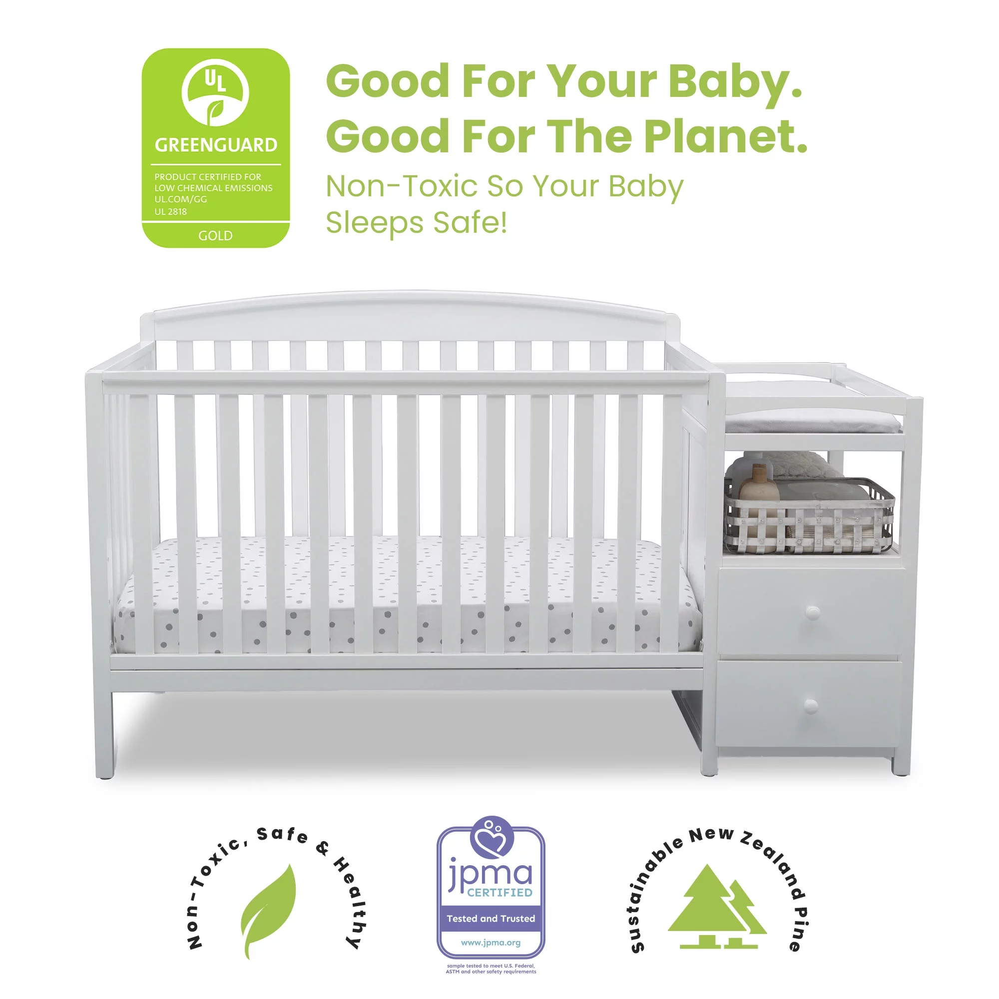 Delta Children Tribeca 4-in-1 Convertible Crib, Greenguard Gold Certified, White/Gray