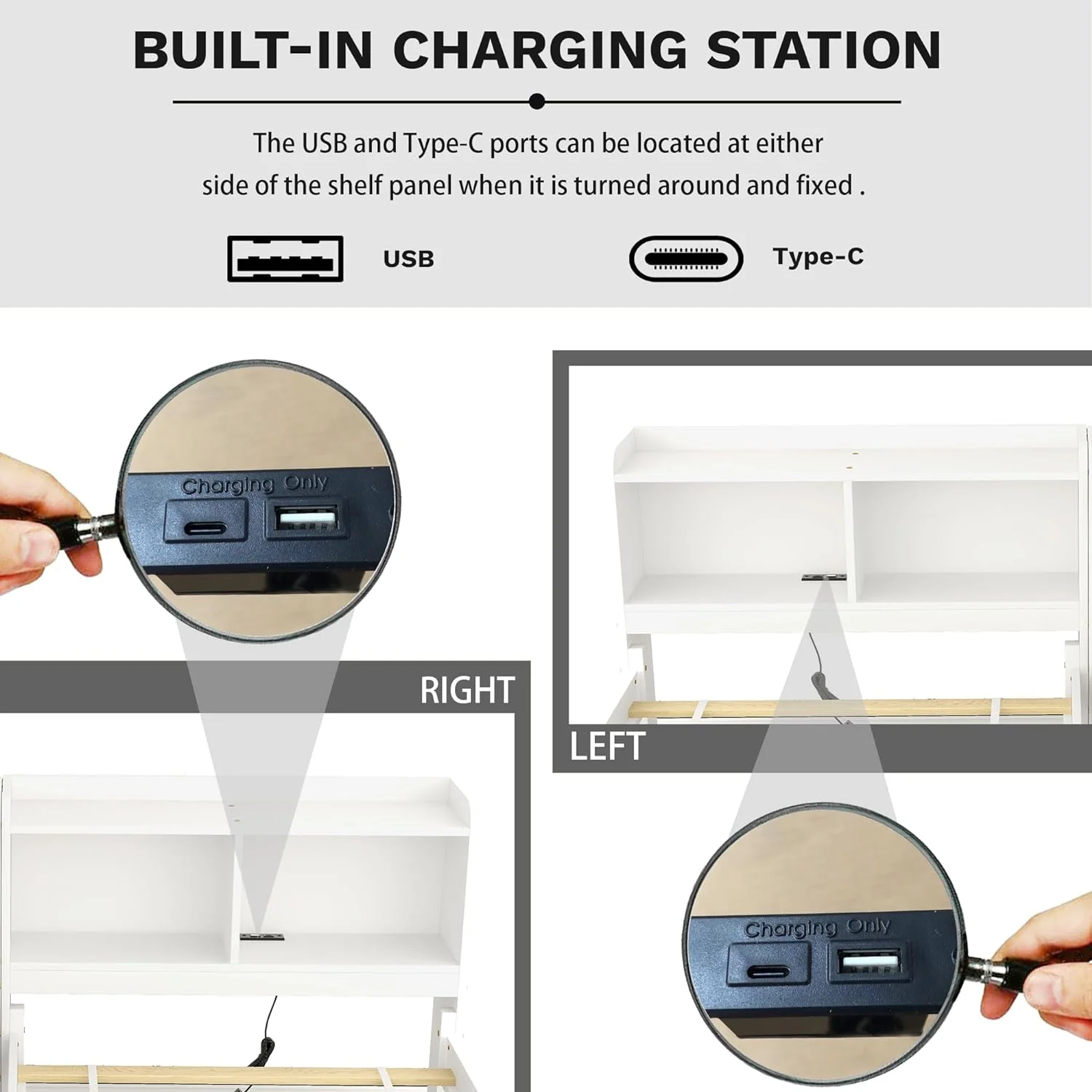 Futon Frame Metal Twin Size Loft Bed with Workstation& Desk Chair, Black & White
