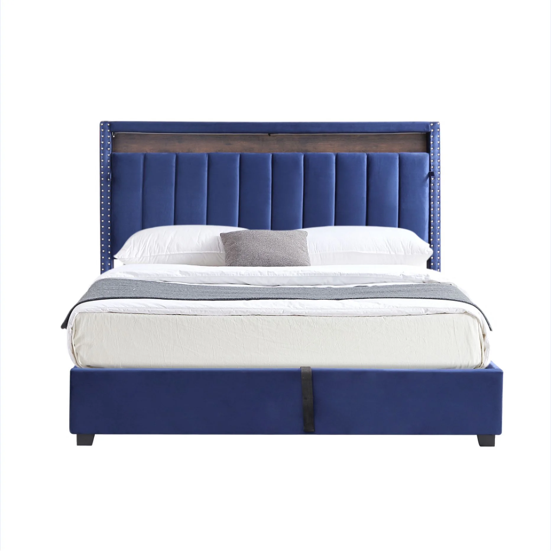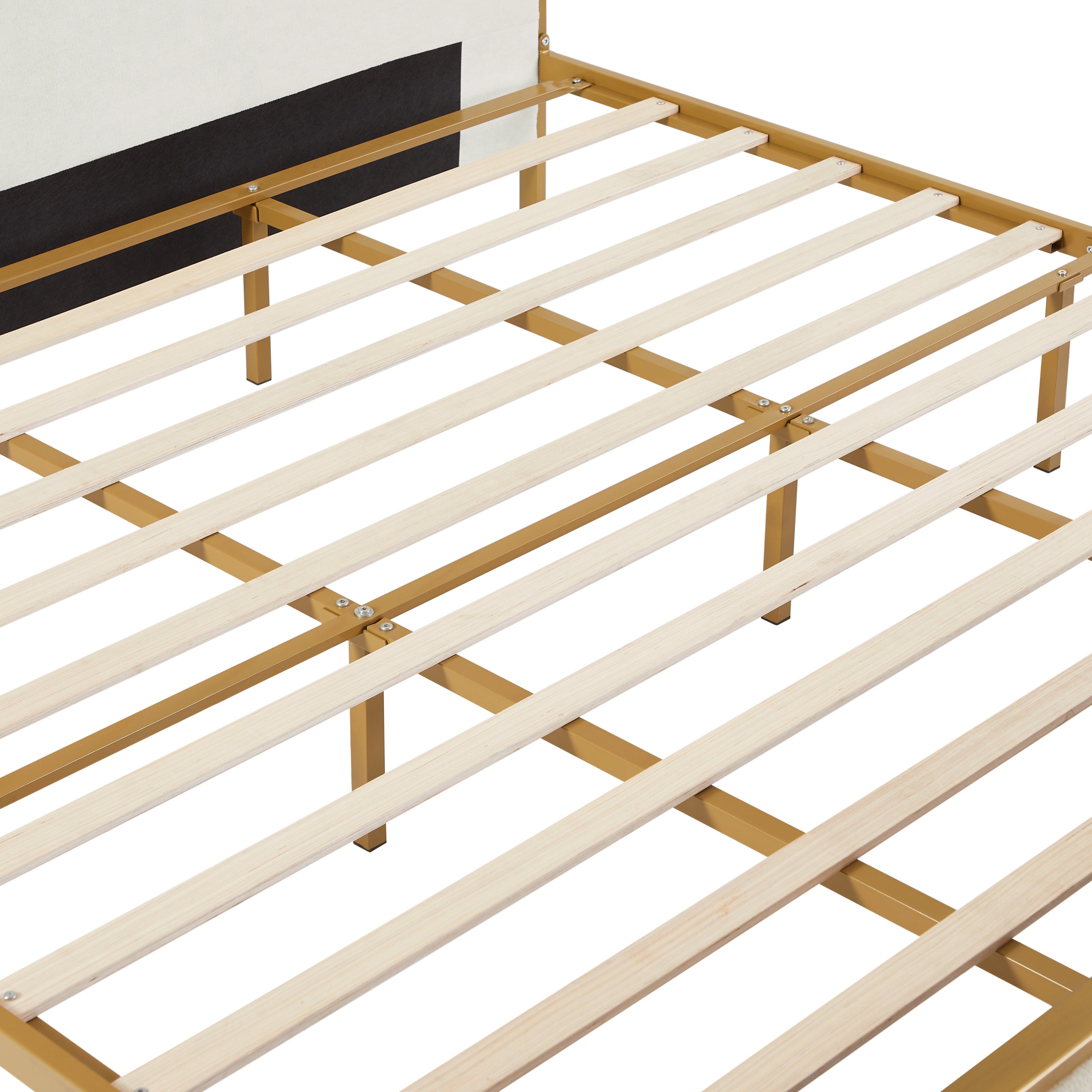 Frame Cross Solid Oak & Metal King or Queen Platform Bed, Dark Gray