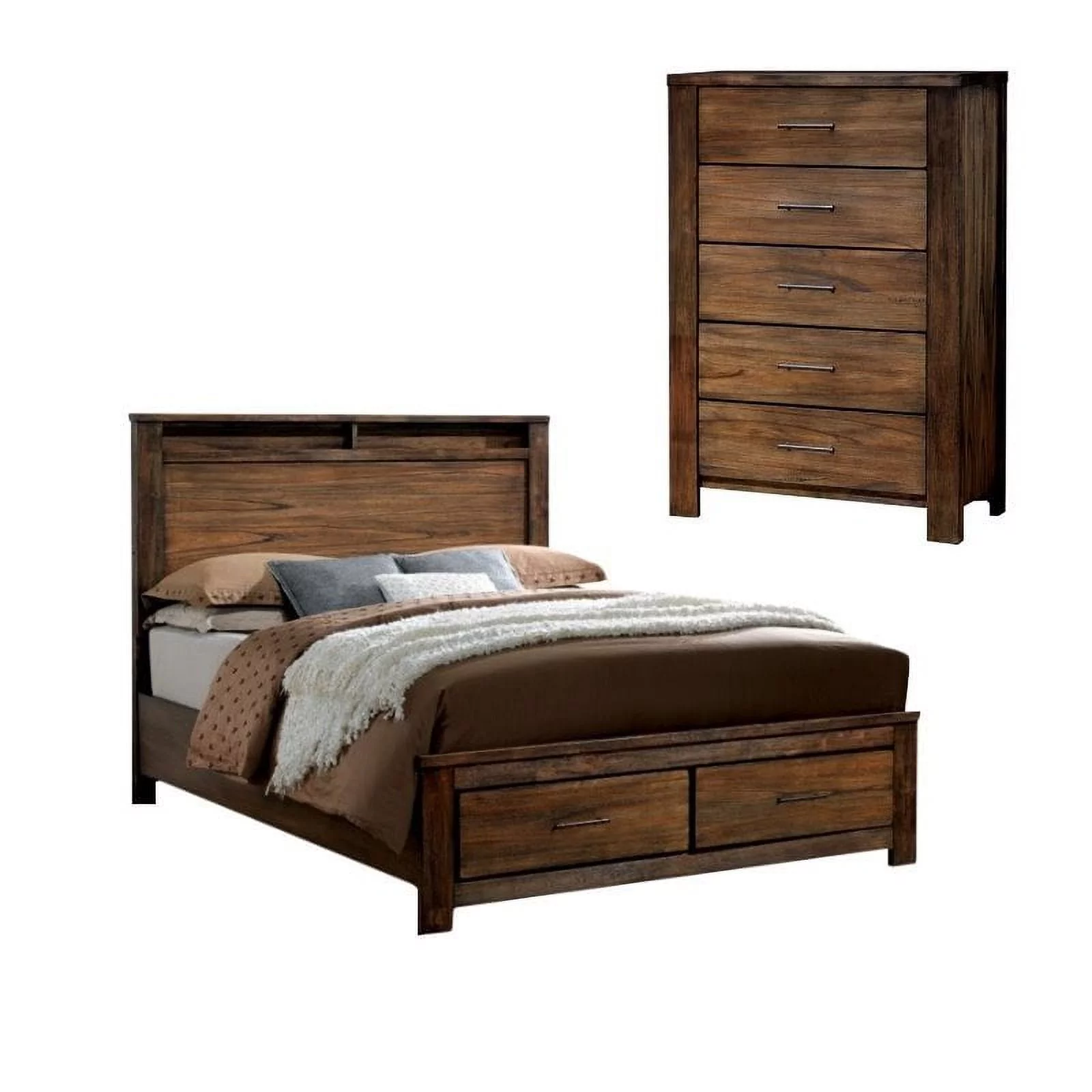 Furniture of America Gilbert 2-Piece Oak Wood Queen Panel Bed and Chest Set