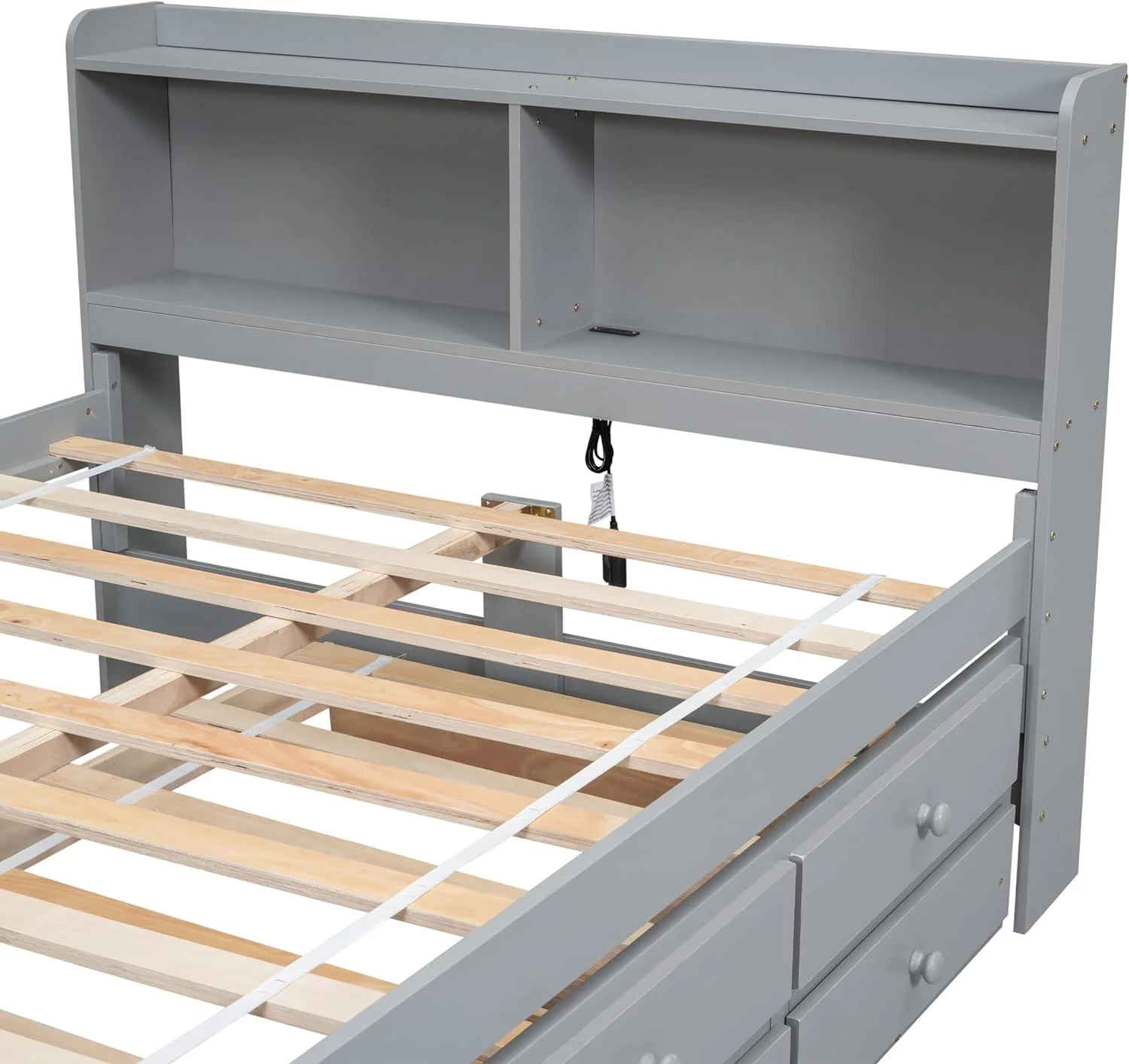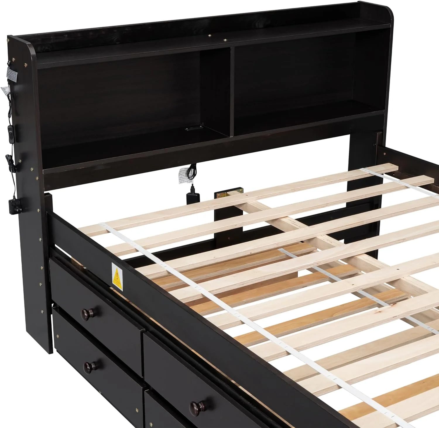 Atlantic Furniture Newport Walnut-finish Flat-panel Foot Board with Underbed Trundle Bookcase Headboard Full Bed