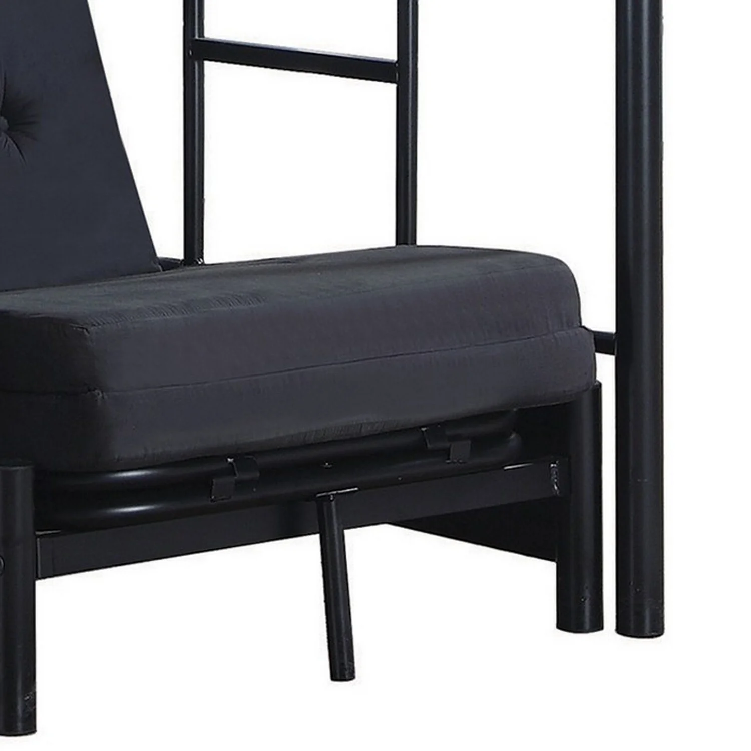 Benjara BM302802 Futon Frame Metal Twin Size Loft Bed with Workstation& Desk Chair, Black & White
