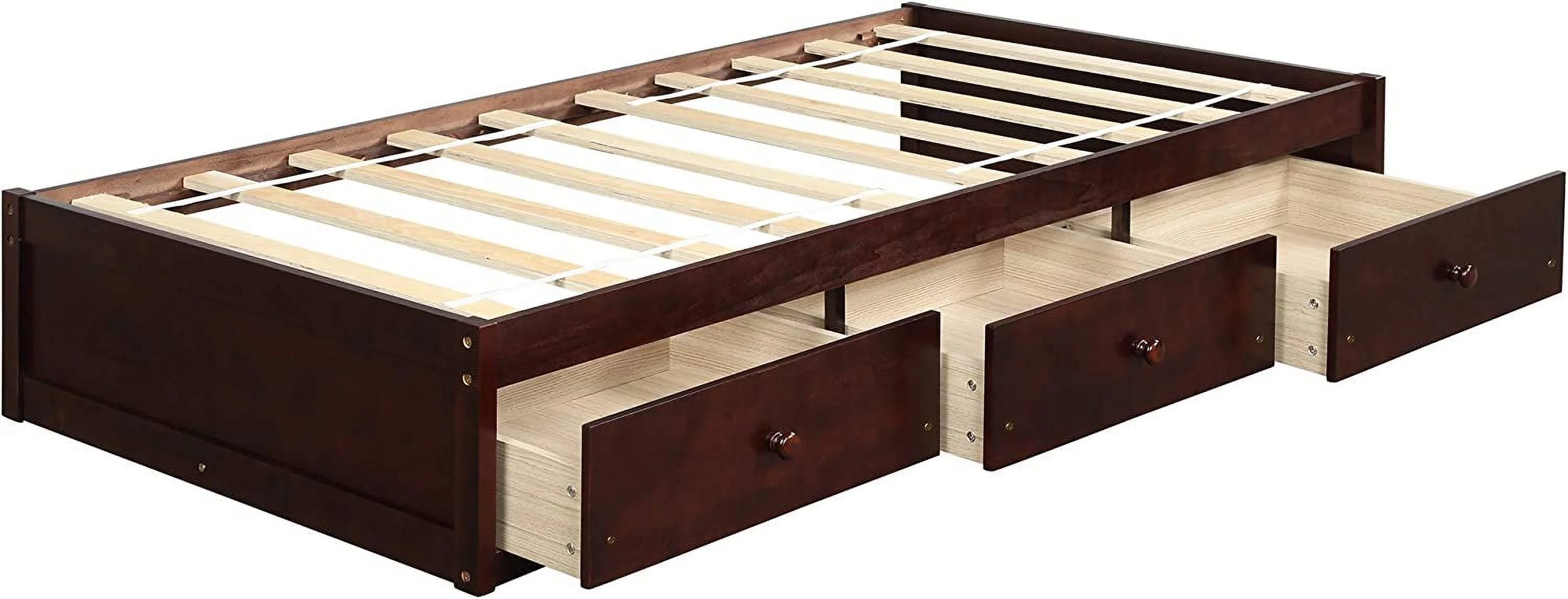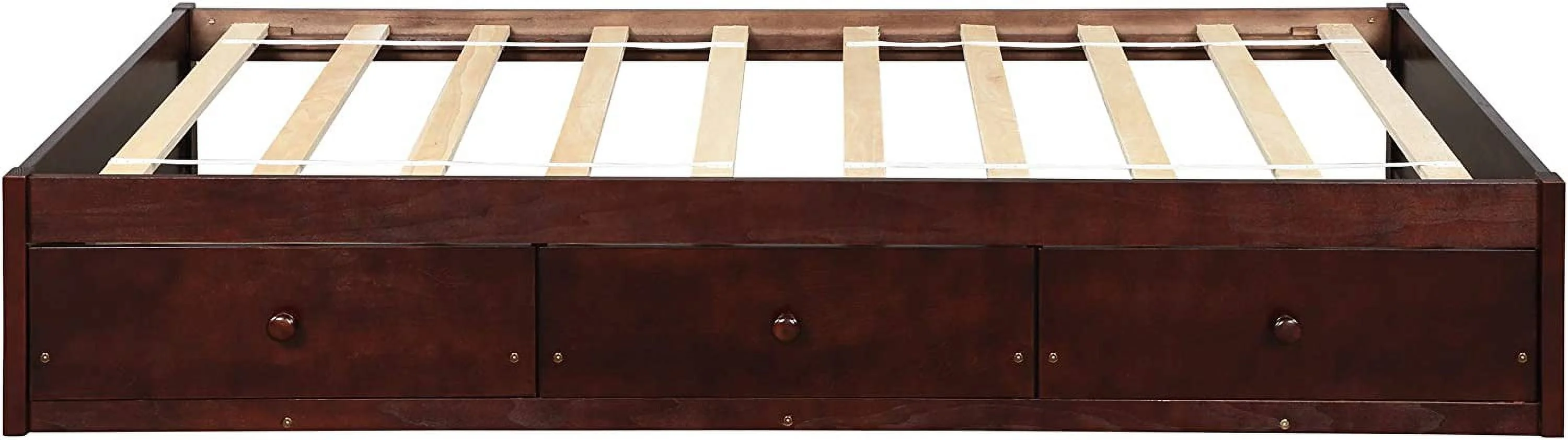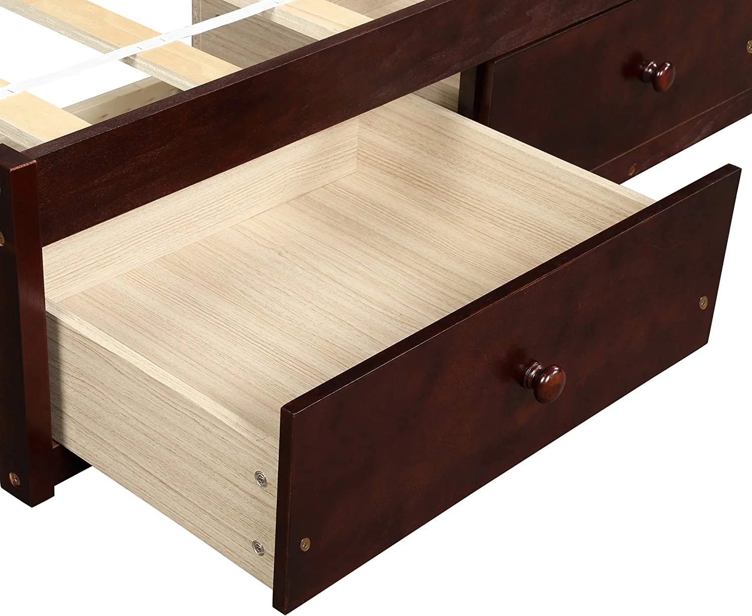 Bed With Drawers, Solid Wood Platform Bed Frame With Storage For Bedroom Living Room, Storage Bed For Girls Boys, Cherry