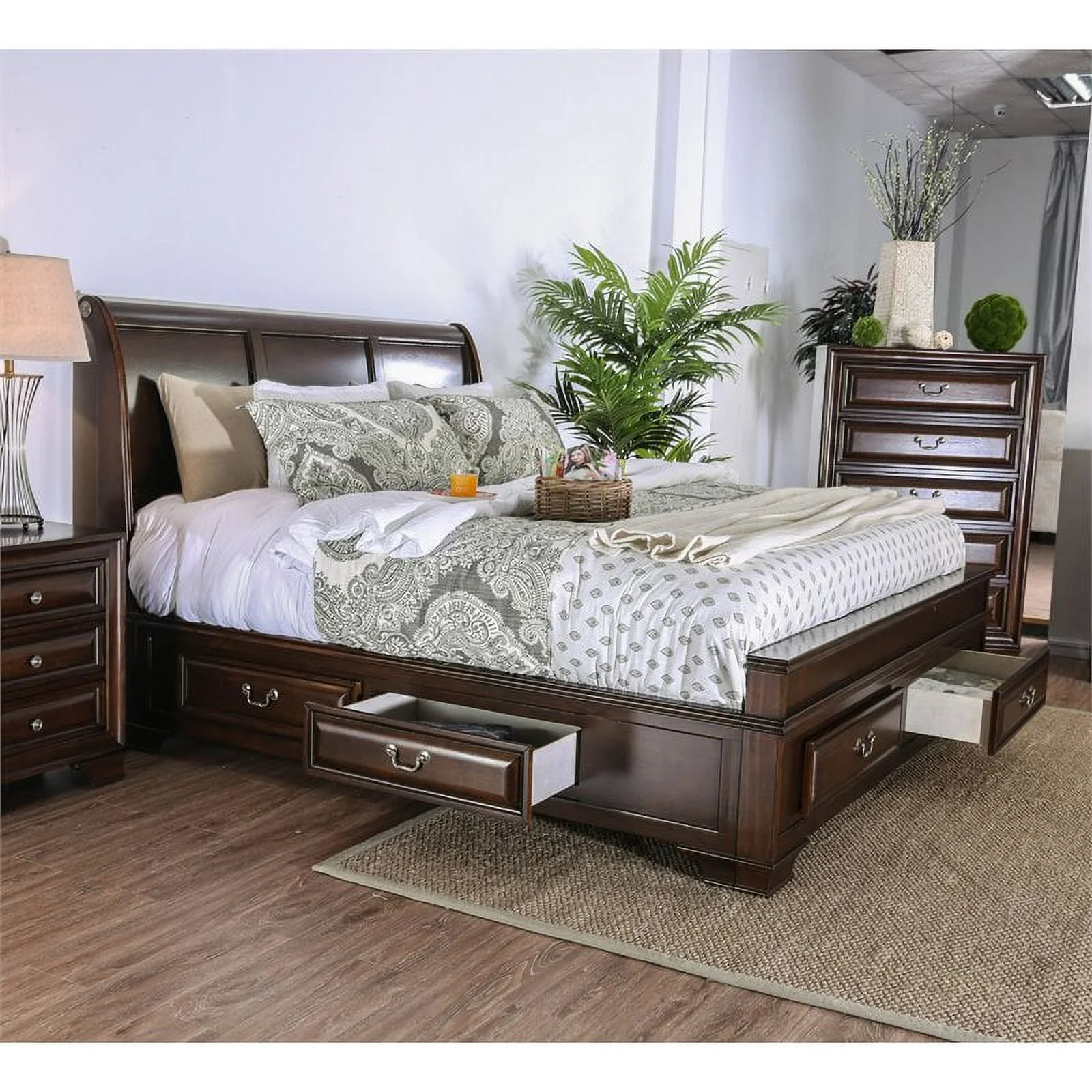 Furniture of America Sorella Traditional Solid Wood Cal King Panel Bed in Cherry