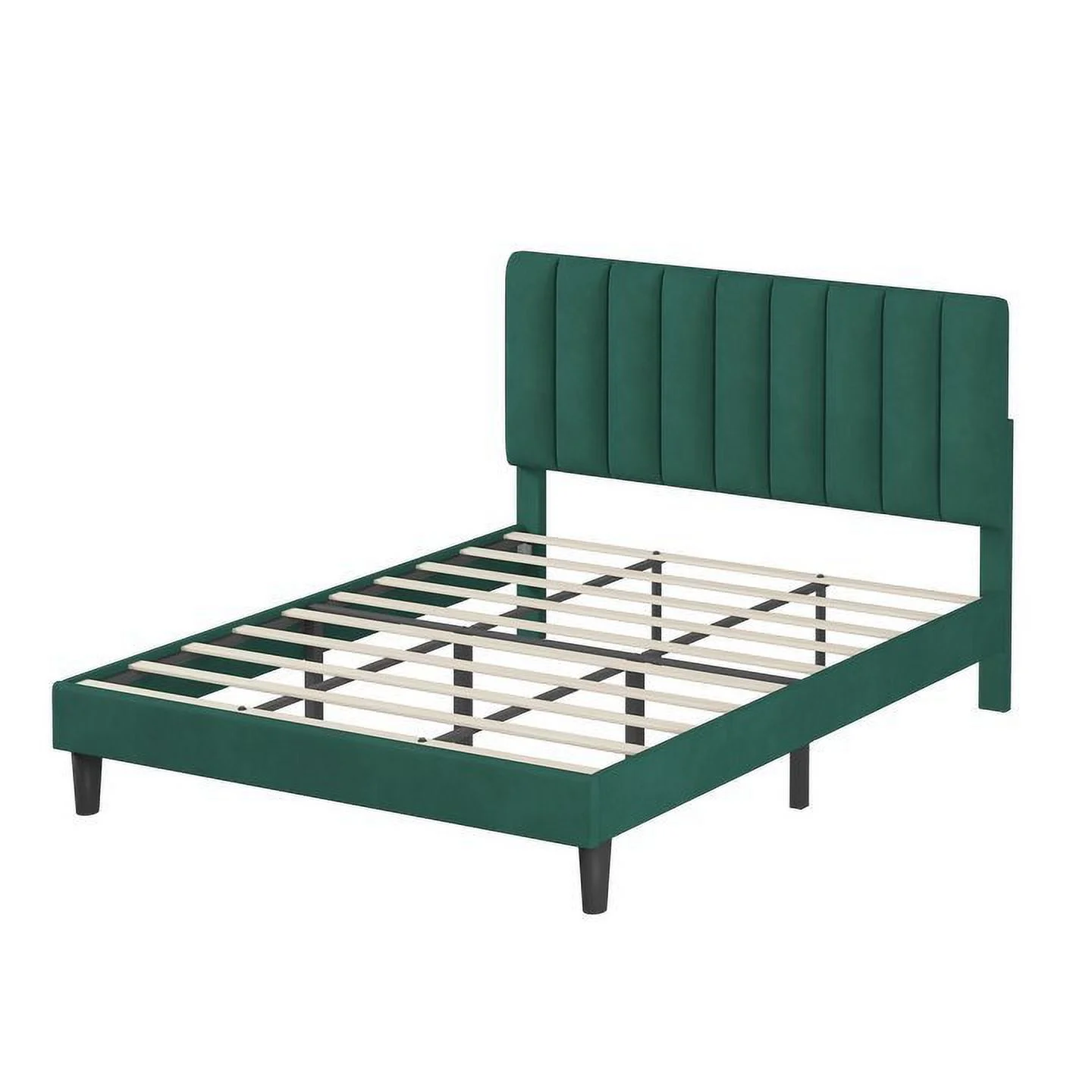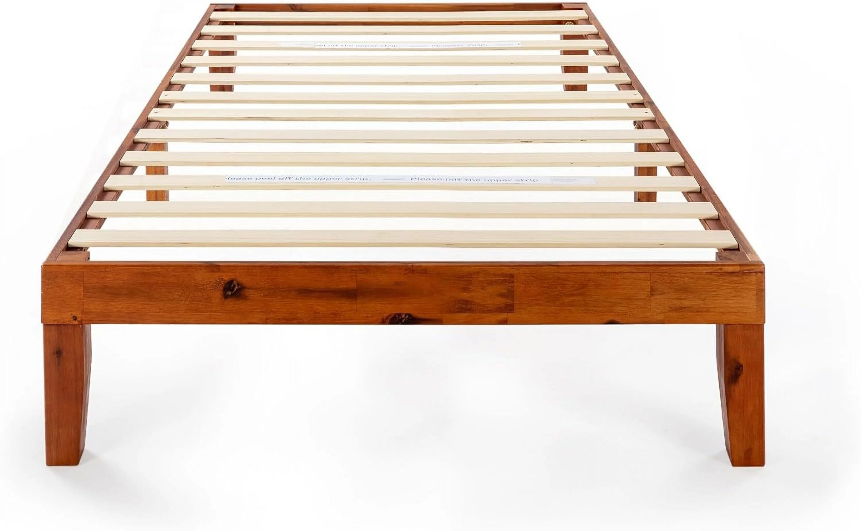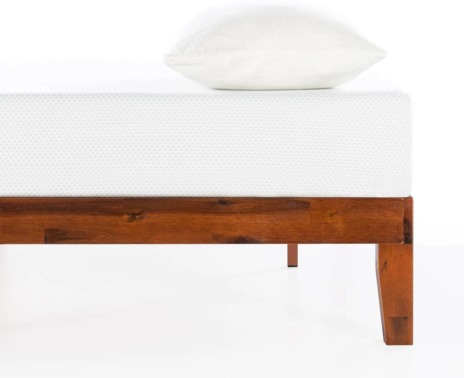 Queen size Solid Pine Wood Platform Bed Frame with Headboard in Cherry