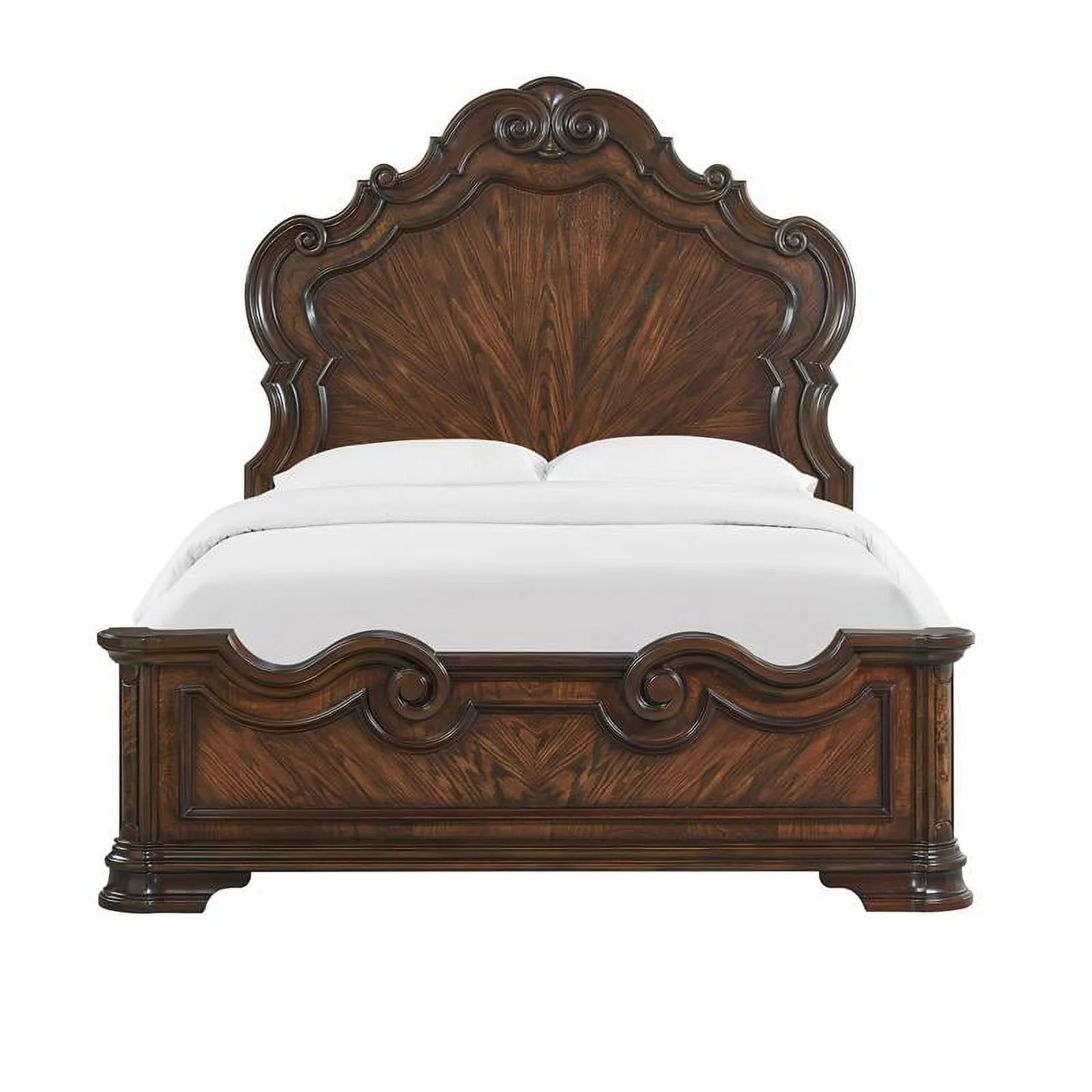 Kingfisher Lane Traditional Wood Queen Panel Bed in Antique Tobacco Oak